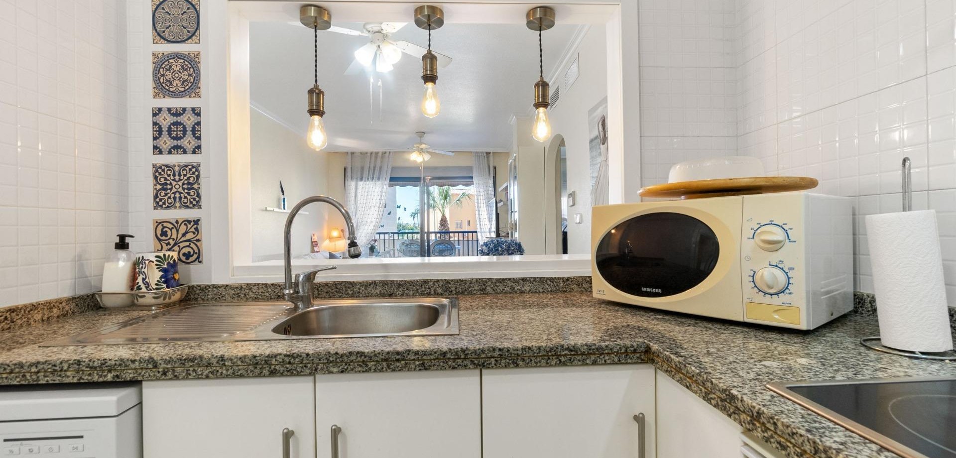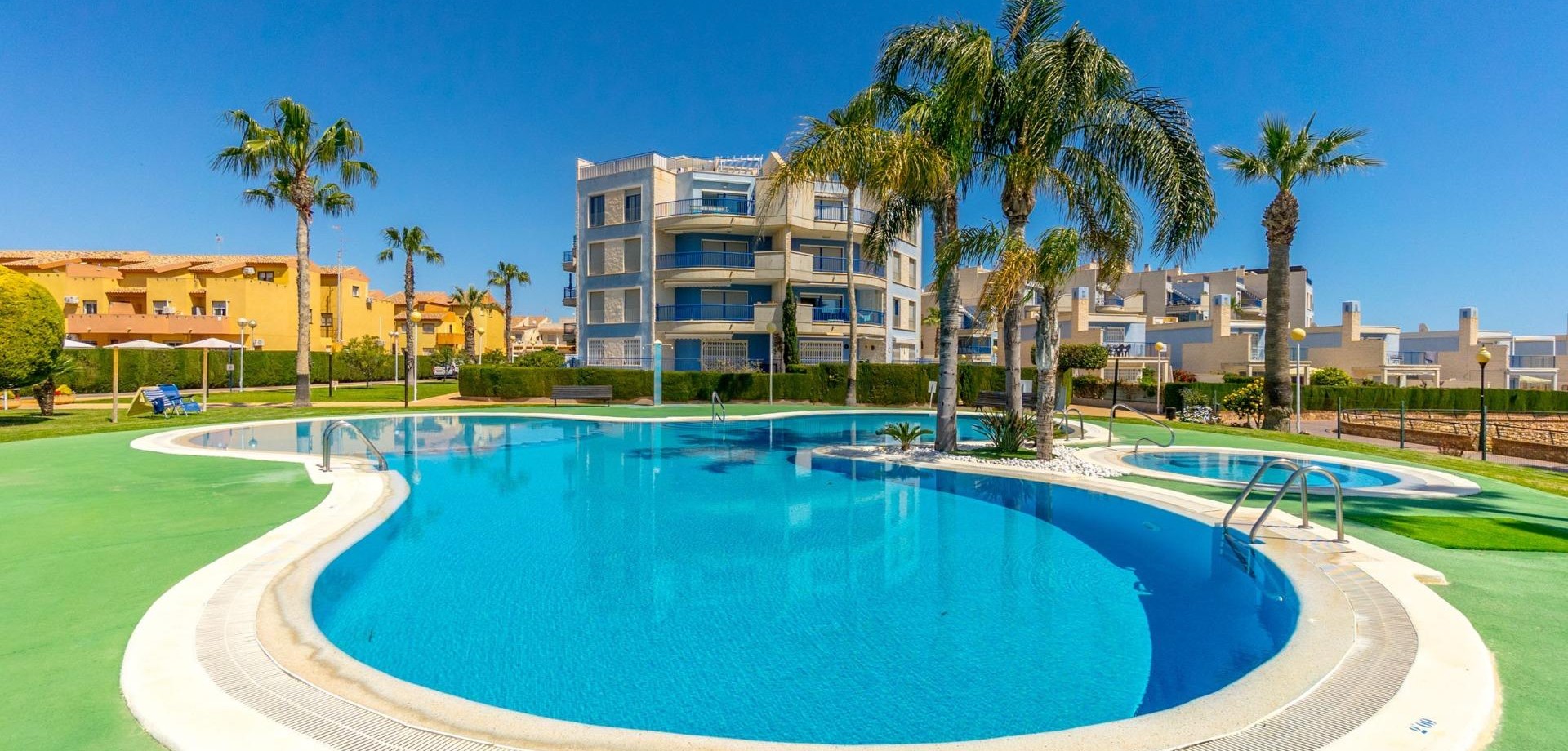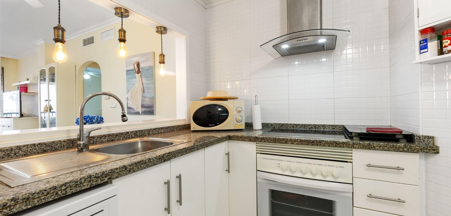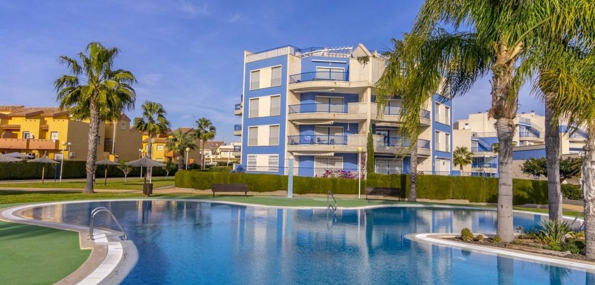 This spacious and bright apartment is located in the exclusive Aguamarina residential complex, Punta Glea, on the beachfront, with direct access to the seafront promenade. Located on the first floor, it faces southeast to enjoy the sun almost all day long. With a surface area of 78 m2, it has a very convenient layout, offering comfort and functionality.~The apartment has two large bedrooms, each with built-in wardrobes, providing plenty of storage space, and two full bathrooms.~The separate kitchen is fully equipped and includes a laundry room. A bright living-dining room and a large terrace, accessible from the living room and the master bedroom, are the perfect place to enjoy views of the complex's gardens and the sea. The apartment is sold partially furnished and has ducted air conditioning. The apartment also comes with a parking space in the underground garage.~The residential complex has a spectacular swimming pool, surrounded by gardens, ideal for enjoying sunny days and relaxing just steps from the sea. An unbeatable location, with the convenience of being right on the beach and with all amenities within walking distance.~