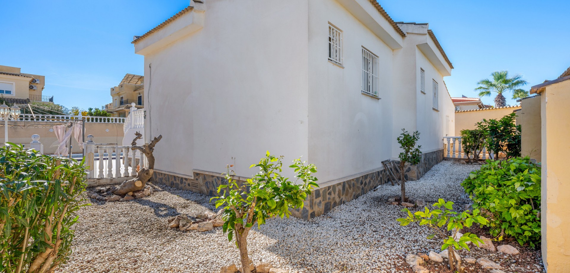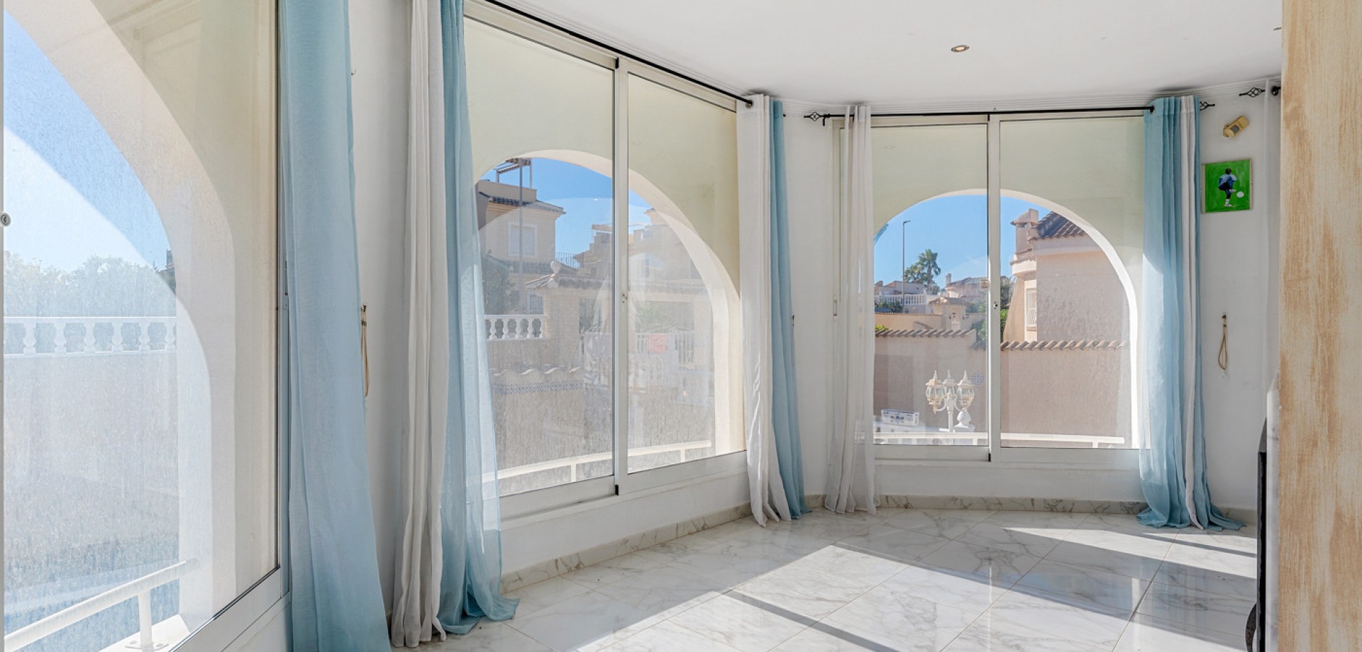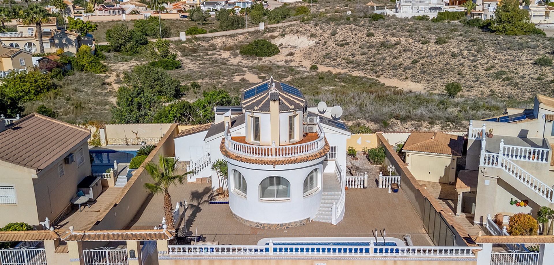 Please note: Photos with furniture are home-staged visualizations meant to show how the home could look when furnished, including a new kitchen and new bathrooms. The property is currently empty. ___________________________________________________________________________________________________________________________________ Dreaming of a villa with character, space, and one of the best locations in Rojales? This lovely resale villa offers a generous 160 m² distributed over 4 bright bedrooms and 2 well-designed bathrooms – perfect for family life, holidays, and relaxation. The house was built in 2002 and is sold unfurnished, giving you complete freedom to create the home you’ve always imagined. To help you get inspired, we have created renovation and interior design suggestions that show how the villa can be transformed into a modern and inviting home. If you would like assistance with the process, our service team is ready to offer professional guidance. The villa faces south, meaning plenty of sunlight and warmth throughout the day – both indoors and outdoors. Outside, a private swimming pool awaits, allowing you to enjoy the fantastic climate all year round. From both the house and the plot, you can enjoy impressive views of the mountains, landscape, lake, and sea, creating a peaceful and scenic setting for everyday living. The villa is equipped with solar panels for electricity, helping to keep your energy costs low. Rojales is known for its charming atmosphere with cosy cafés, local specialty shops, and beautiful natural surroundings. It offers an active and pleasant community where both families and lifestyle-seekers feel at home. La Marquesa Golf is located close by – a major plus for golf enthusiasts and those who appreciate green surroundings. Contact us today for more information or to arrange a viewing. This villa gives you the opportunity to live with views of it all – in bright, spacious, and comfortable surroundings, where the potential is just as impressive as the scenery.