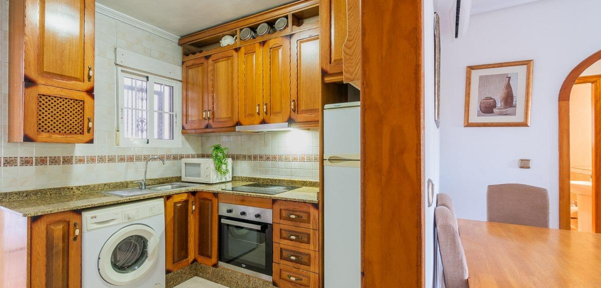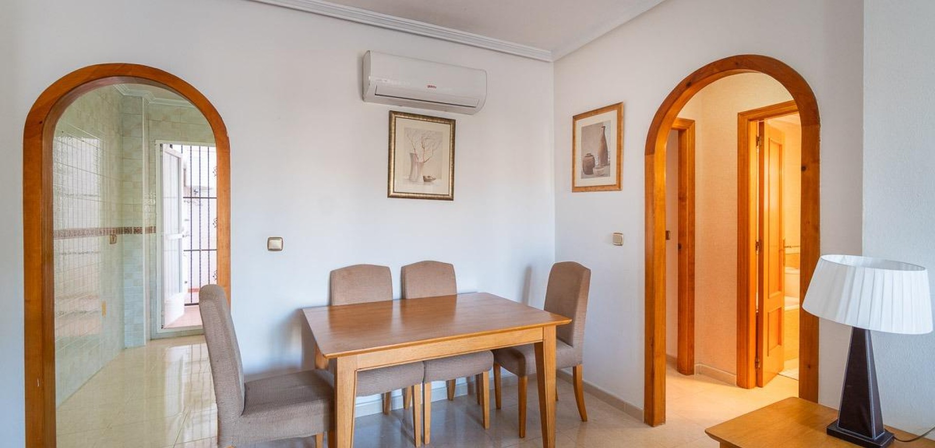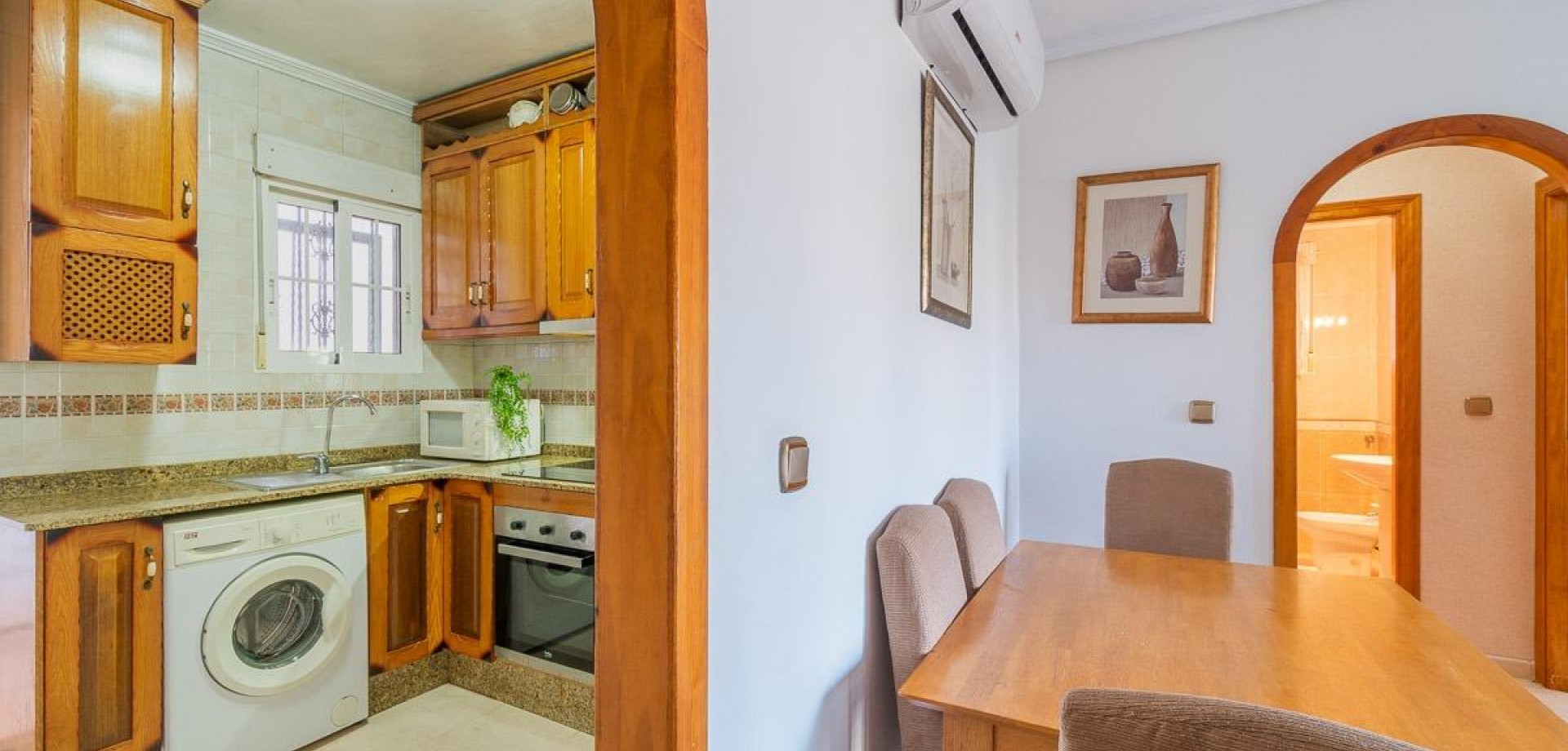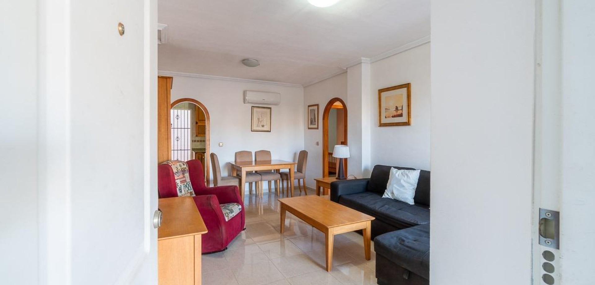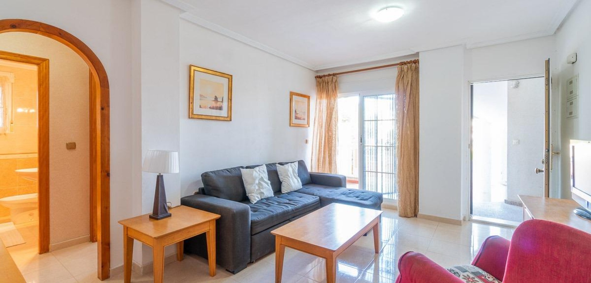 This apartment, located in the Altos de Cabo Roig Urbanization, very close to VillaMartin, in Pinada Golf Phase II, right at the confluence of the municipalities of Orihuela Costa and San Miguel de Salinas, and with good transport links to both, is the ideal opportunity.~~The apartment's location guarantees easy access to the area's highlights: the beaches of Cabo Roig and Campoamor, the area's most popular restaurants, and bus stops very close to the building entrance, making a car unnecessary. It's also within walking distance of shopping and leisure centers, with supermarkets, ATMs, bars, and restaurants where you can enjoy international cuisine: Chinese, Italian, Indian, tapas, and more. And if you have school-aged children, the property is near the El Limonar International Bilingual School, ensuring they can receive a quality education just a short distance from home.~~The property is located near the Villamartin Golf Course, but is also famous in the area for its three other golf courses: Las Ramblas, Campoamor, and Las Colinas. The well-known Playa Flamenca market, held every Saturday, is also worth a visit, offering the chance to mingle with the diverse nationalities (Swedes, English, Germans, Spaniards, Belgians, among others) that enrich our coast.~~In addition, it has very easy access to Torrevieja, Alicante, Murcia, and Cartagena via the AP-7 and N-332 highways, with direct connections to the airports of Alicante (approx. 40 km) and Murcia (approx. 40 km). There is ample street parking for residents, with open and well-maintained spaces, and there are also communal parking spaces within the building complex, with direct access to the property's private garden from the communal parking area. The neighborhood and area are quiet and friendly, with a communal pool and gardens open year-round, where you can enjoy the sun and family activities every day of the year.~~The apartment is located on the ground floor, making it perfect for people with mobility difficulties or who cannot climb many stairs. It has a large garden of over 70 m2, ideal for a barbecue area and garden, overlooking the park and the green area of the promenade, offering open views of the trees. The property also features a large back patio within the house, which can be used as a laundry and drying area or for children to play in their own private yard.~~It has a beautiful living-dining room, a separate kitchen so you can cook without unpleasant odors affecting the rest of the house, a laundry room (as mentioned) next to the back patio, a good-sized front balcony for enjoying the outdoors while remaining inside, with direct access to the large private garden, two spacious bedrooms with built-in wardrobes, and a full bathroom.~~Key features include the large plot of land, which offers ample space for play areas, a private garden, and many other options for enjoying the outdoors with your family. Both the bedrooms and living room are bright and airy, and all the rooms have exterior views.~~The house is in excellent condition and comes furnished, so by customizing it to your personal taste, it can become the perfect home for year-round living with your family or for generating rental income. It's well worth a visit to explore all its possibilities.