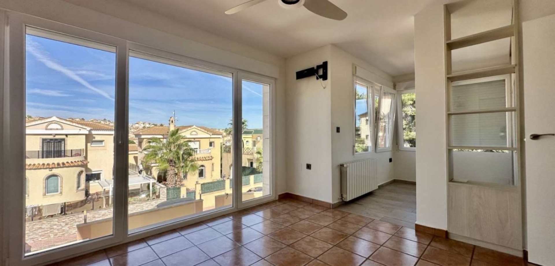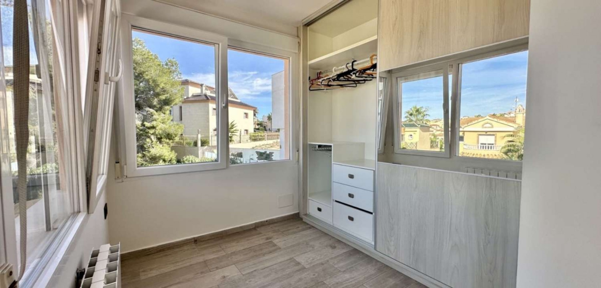 Detached villa in Orihuela Costa – 4 bedrooms, 2 bathrooms, 1 WC, basement and solarium Partially renovated villa located in a prime location in Orihuela Costa, just minutes from the beach and close to prestigious golf courses such as Villamartín, Las Ramblas, Campoamor, and Las Colinas. The property includes: 120 m² of living space 75 m² basement 280 m² terrace Private parking for 2 cars Ample space to build your own swimming pool Layout: Basement: Large living room 2 bedrooms 1 bathroom Laundry room Ground floor: Bright living/dining room Modern open-plan kitchen Guest WC Storage room First floor: 2 bedrooms (including a master bedroom with a walk-in closet) 1 bathroom Private solarium with unobstructed views This property combines comfort, functionality, and spacious interiors and exteriors, making it an ideal home for year-round living, holidays, or investment.