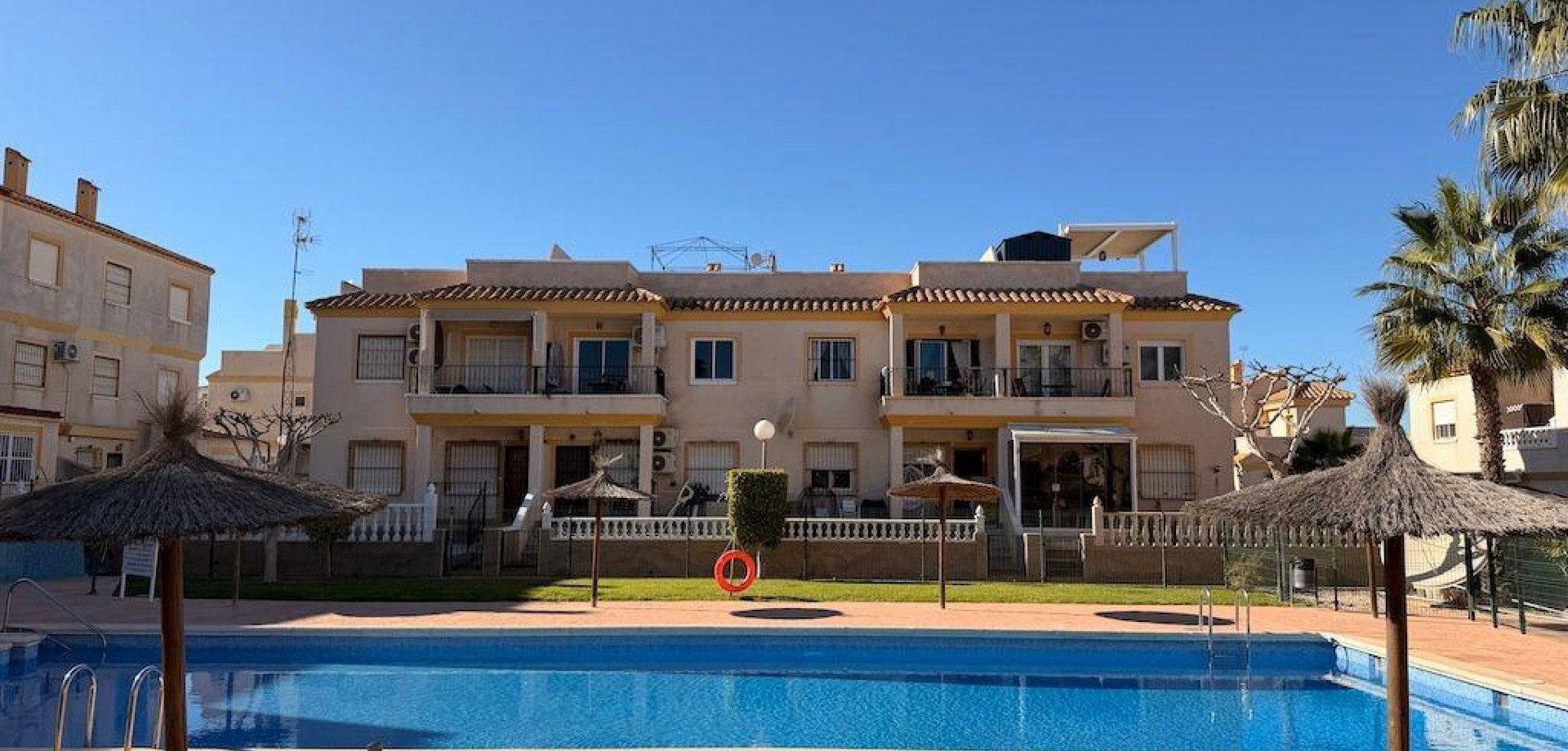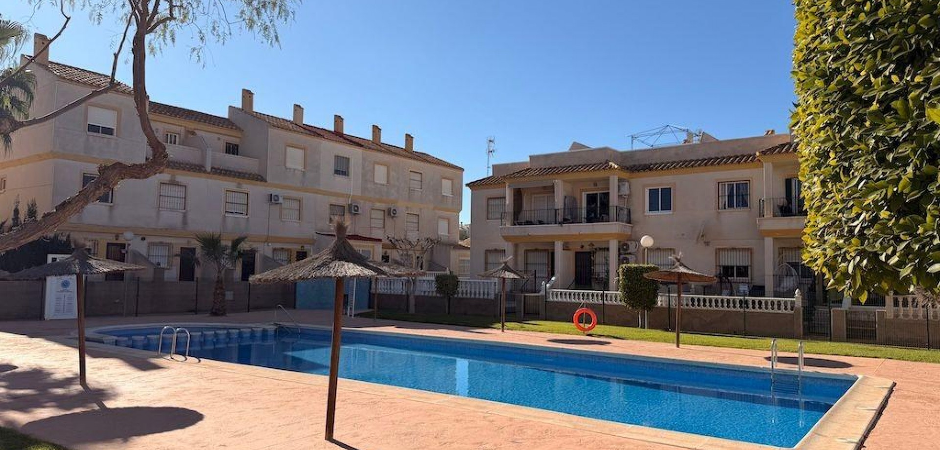 Villamartin, St. James Hills Residential – Ground-floor bungalow overlooking a 50 m2 communal garden.. It features a private plot of approximately 20 m2 and a home distributed in 2 bedrooms, 1 bathroom, a kitchen, and a living-dining room. The property is sold furnished and equipped with air conditioning, includes its own parking space, and offers access to a large communal swimming pool.