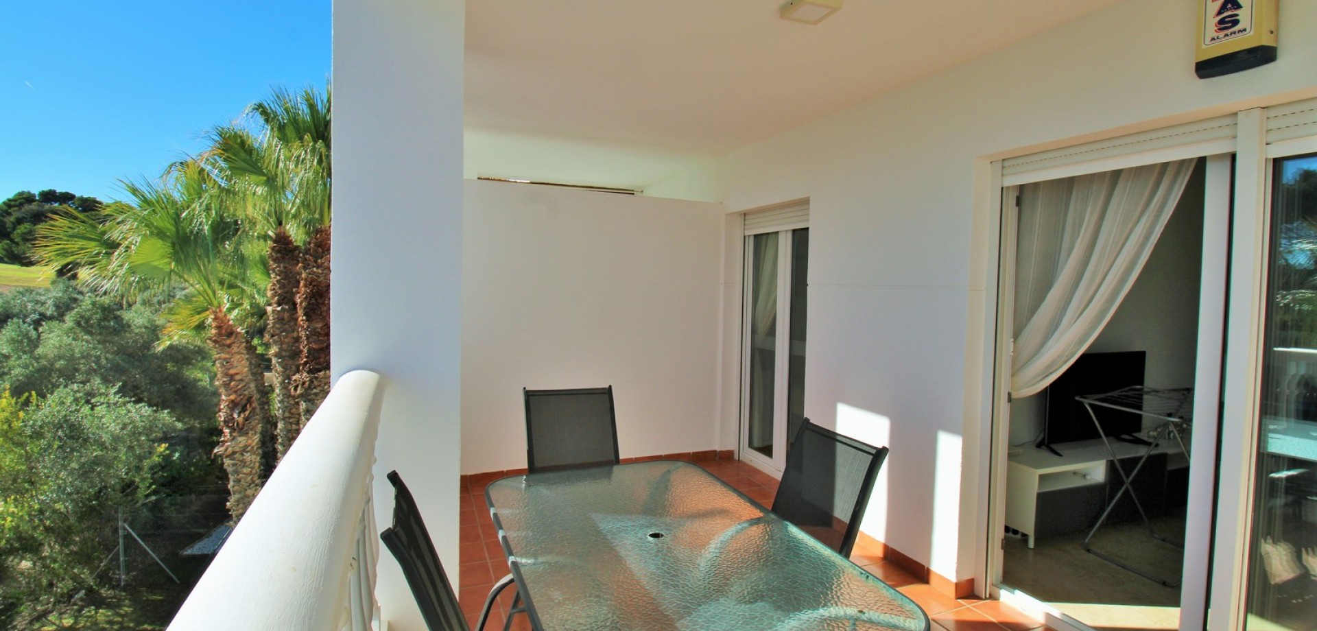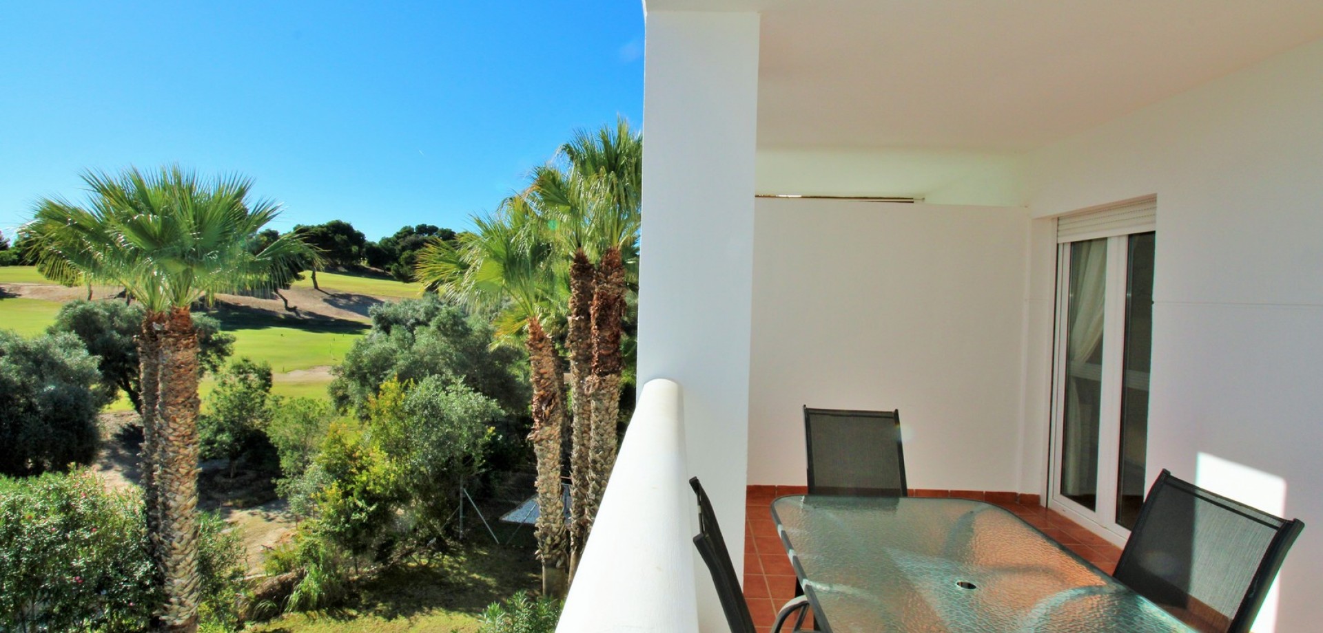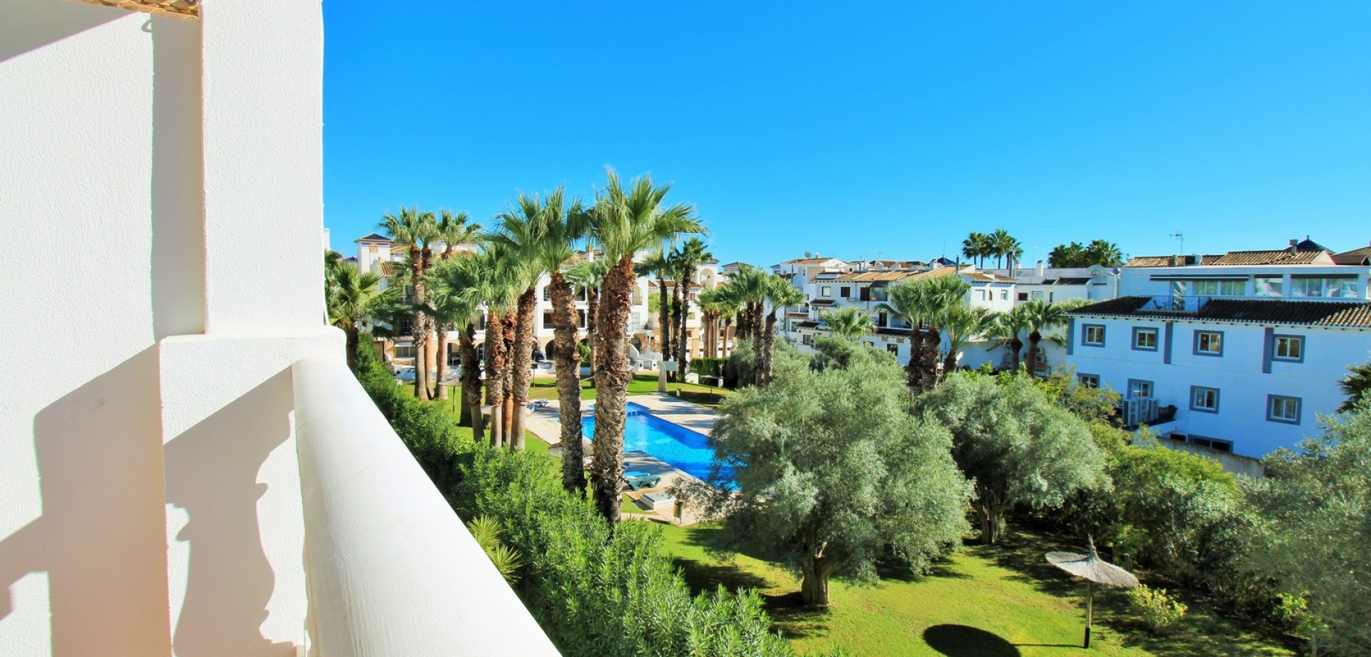 This impressive South-facing penthouse apartment enjoys wonderful views over the communal swimming pool and the fairways of Villamartin Golf Course. Ideally located just a short stroll from the vibrant Villamartin Plaza, you’ll have an excellent choice of restaurants, cafés, bars, and a supermarket right on your doorstep. Sold furnished with white goods and presented in excellent condition, this property is ready to move straight into. Inside, the apartment features a bright and airy lounge-dining area with a fitted kitchen to the rear, leading out to a sunny covered balcony overlooking the pool and golf course. There are 2 double bedrooms with fitted wardrobes, including a main bedroom with direct access to the front balcony, plus a well-appointed family bathroom. Set within a secure gated community, residents enjoy access to a lovely communal pool and beautifully maintained garden areas, as well as a large communal roof solarium offering additional outdoor space and panoramic views. Properties in this block are rarely available—early viewing is highly recommended to secure this fantastic penthouse in one of Villamartin’s most sought-after locations.