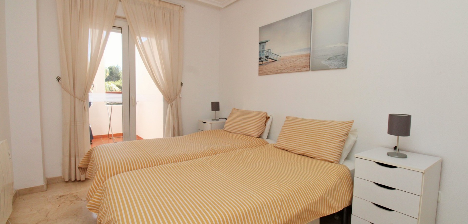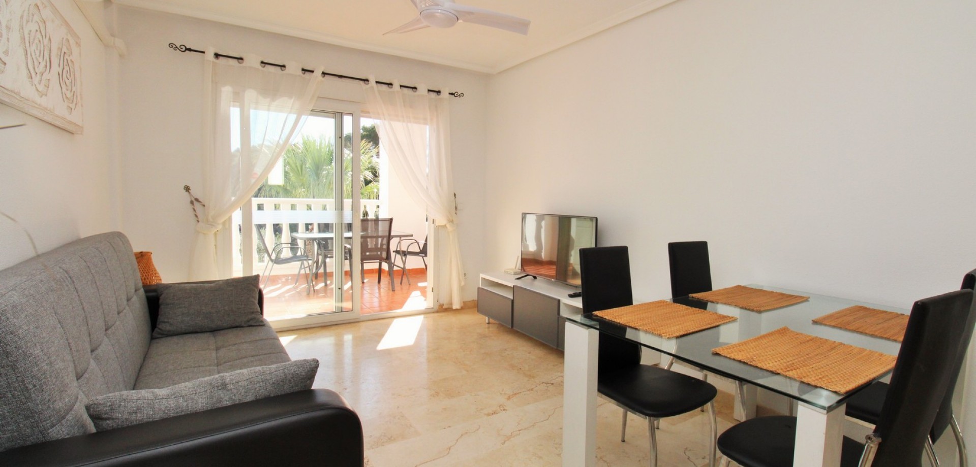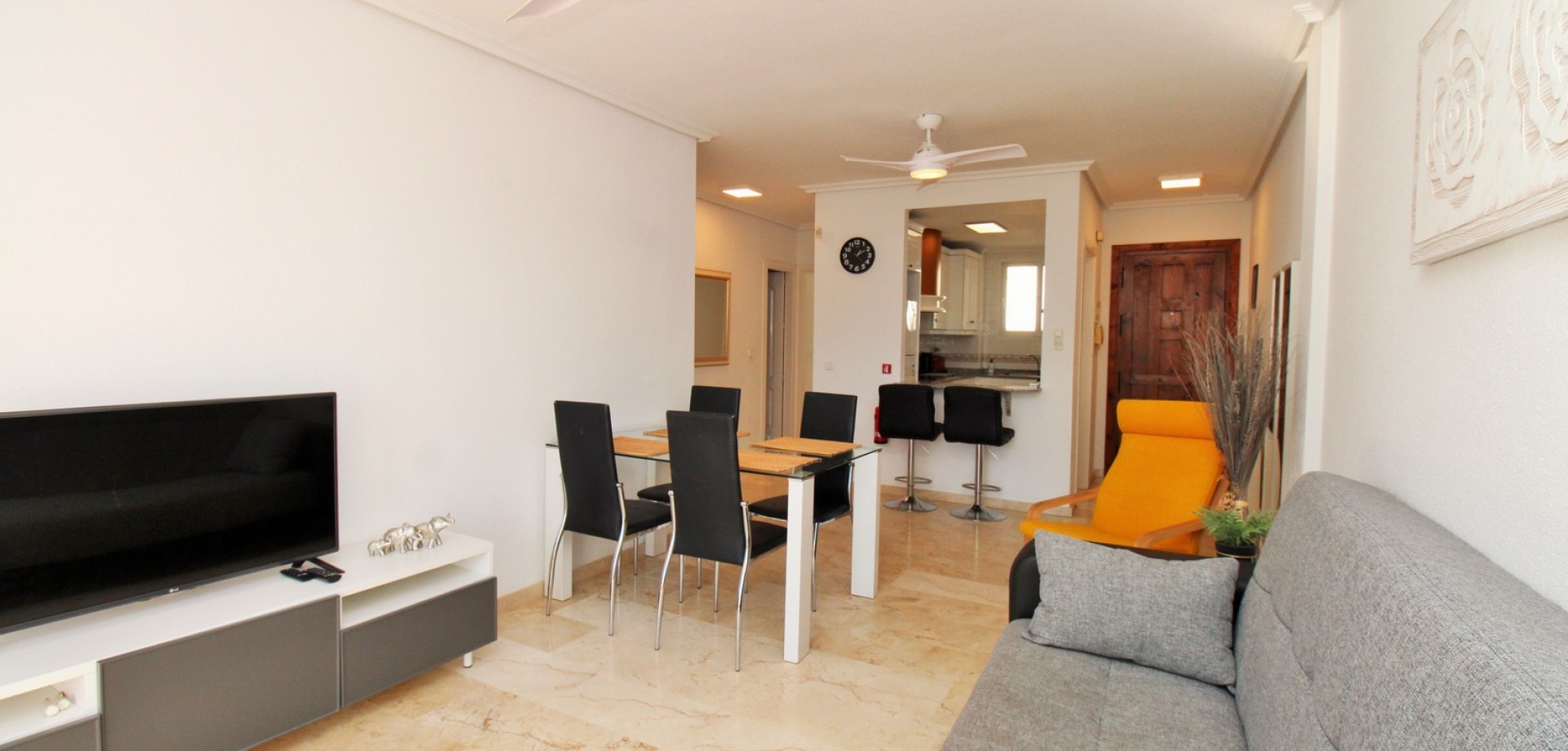 This impressive South-facing penthouse apartment enjoys wonderful views over the communal swimming pool and the fairways of Villamartin Golf Course. Ideally located just a short stroll from the vibrant Villamartin Plaza, you’ll have an excellent choice of restaurants, cafés, bars, and a supermarket right on your doorstep. Sold furnished with white goods and presented in excellent condition, this property is ready to move straight into. Inside, the apartment features a bright and airy lounge-dining area with a fitted kitchen to the rear, leading out to a sunny covered balcony overlooking the pool and golf course. There are 2 double bedrooms with fitted wardrobes, including a main bedroom with direct access to the front balcony, plus a well-appointed family bathroom. Set within a secure gated community, residents enjoy access to a lovely communal pool and beautifully maintained garden areas, as well as a large communal roof solarium offering additional outdoor space and panoramic views. Properties in this block are rarely available—early viewing is highly recommended to secure this fantastic penthouse in one of Villamartin’s most sought-after locations.