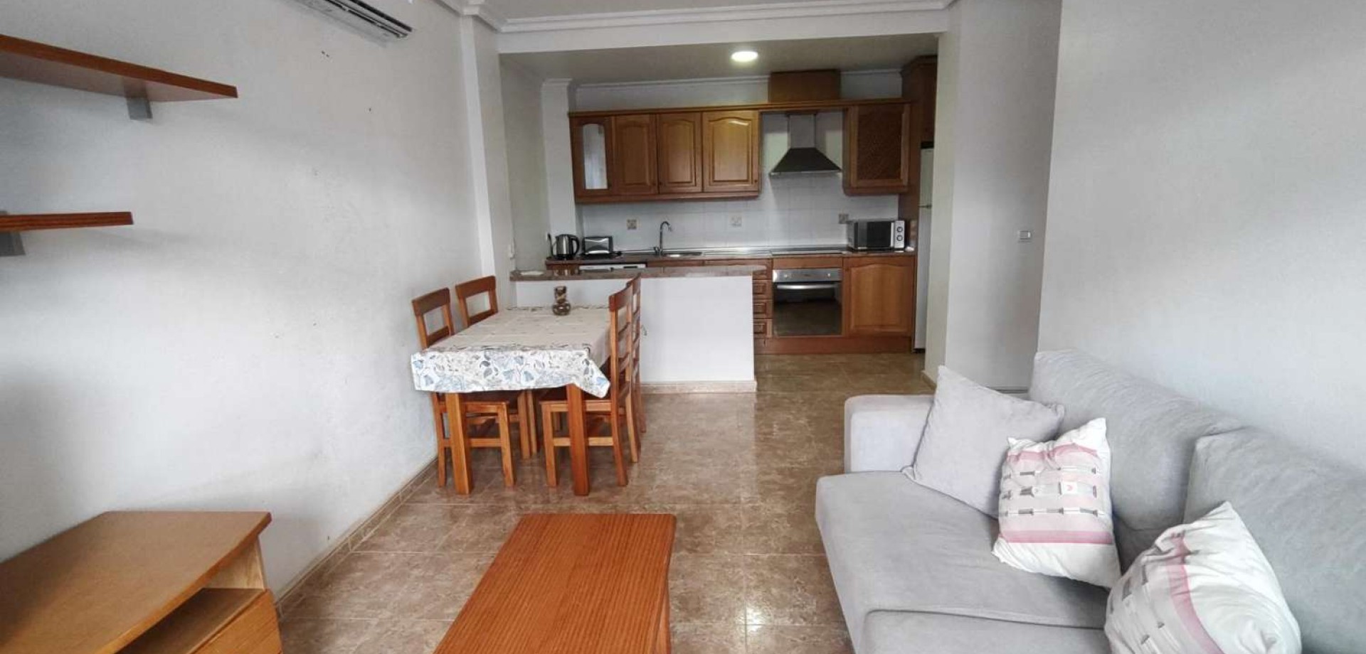 This bright apartment features two bedrooms, a large living room, and a spacious terrace bathed in natural light. The apartment boasts convenient access: less than 10 meters from the underground parking space (included in the price), there is an elevator leading directly to the apartment's hallway. It is equipped with two recently installed, quiet air conditioners with internet connectivity. The apartment is sold fully furnished and equipped with all necessary appliances: washing machine, television, boiler, refrigerator, oven, stovetop, etc. The residence offers excellent communal facilities, including: Two swimming pools (one for children and one for adults) A jacuzzi area A concierge service Internet access and connection fees are included in the condominium fees. The apartment is registered in the land registry as a "tourist apartment," allowing for flexible use: tourist rental, primary residence, or secondary residence. For more information, please contact the agency.