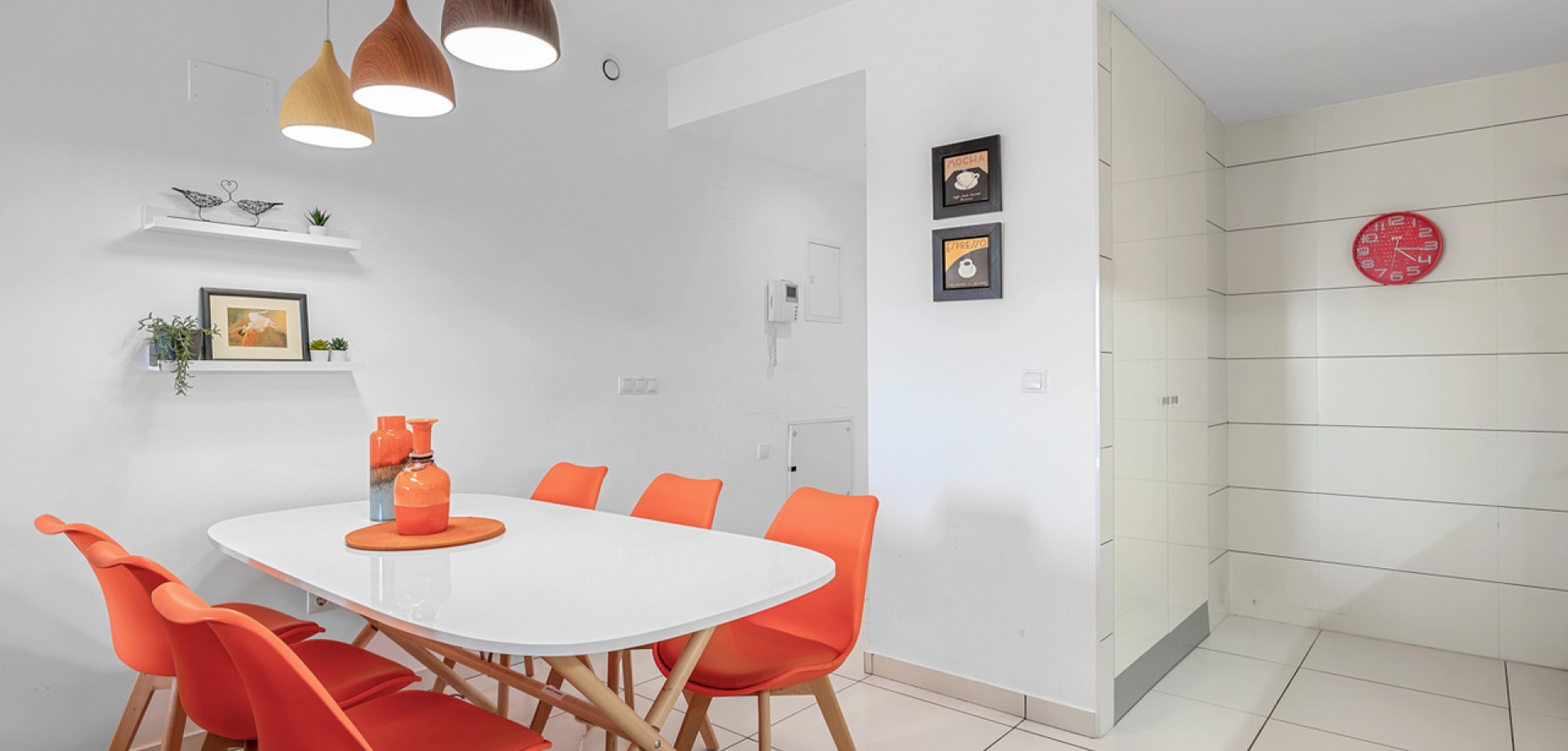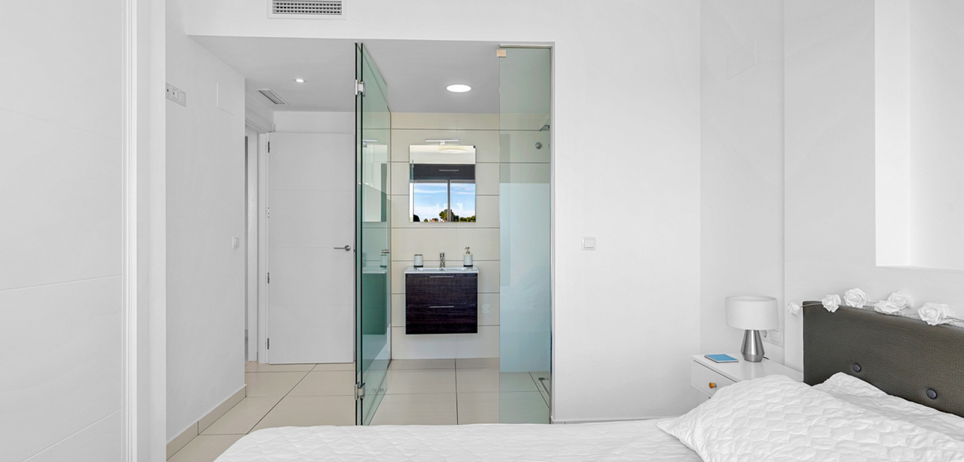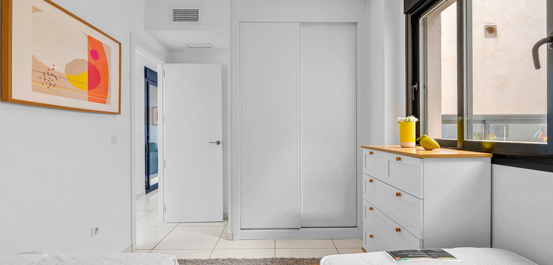 This stunning modern second floor apartment with 2 bedrooms, 2 bathrooms and private rooftop terrace/solarium is situated in Villamartin, Alicante only a few minutes walk to all local amenities (restaurants, bars and shops).