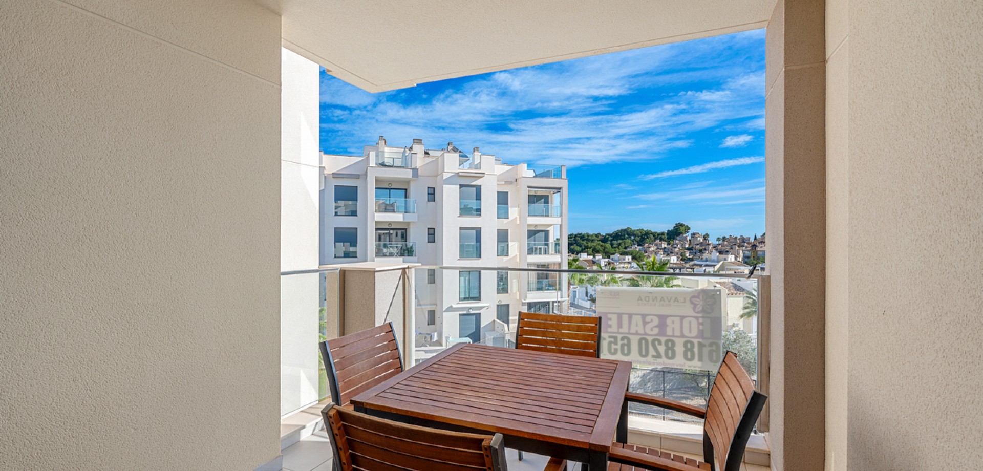 The property will be sold fully furnished and comprises a spacious living/dining area, a modern open plan fully equipped kitchen, air conditioning (hot/cold) throughout the property, intercom system, a main bedroom with fitted wardrobes and en-suite bathroom, a further guests bedroom with fitted wardrobes, a second bathroom with walk-in shower. Patio doors lead out onto a private terrace with stunning views! Private allocated parking space in the garage is also included.