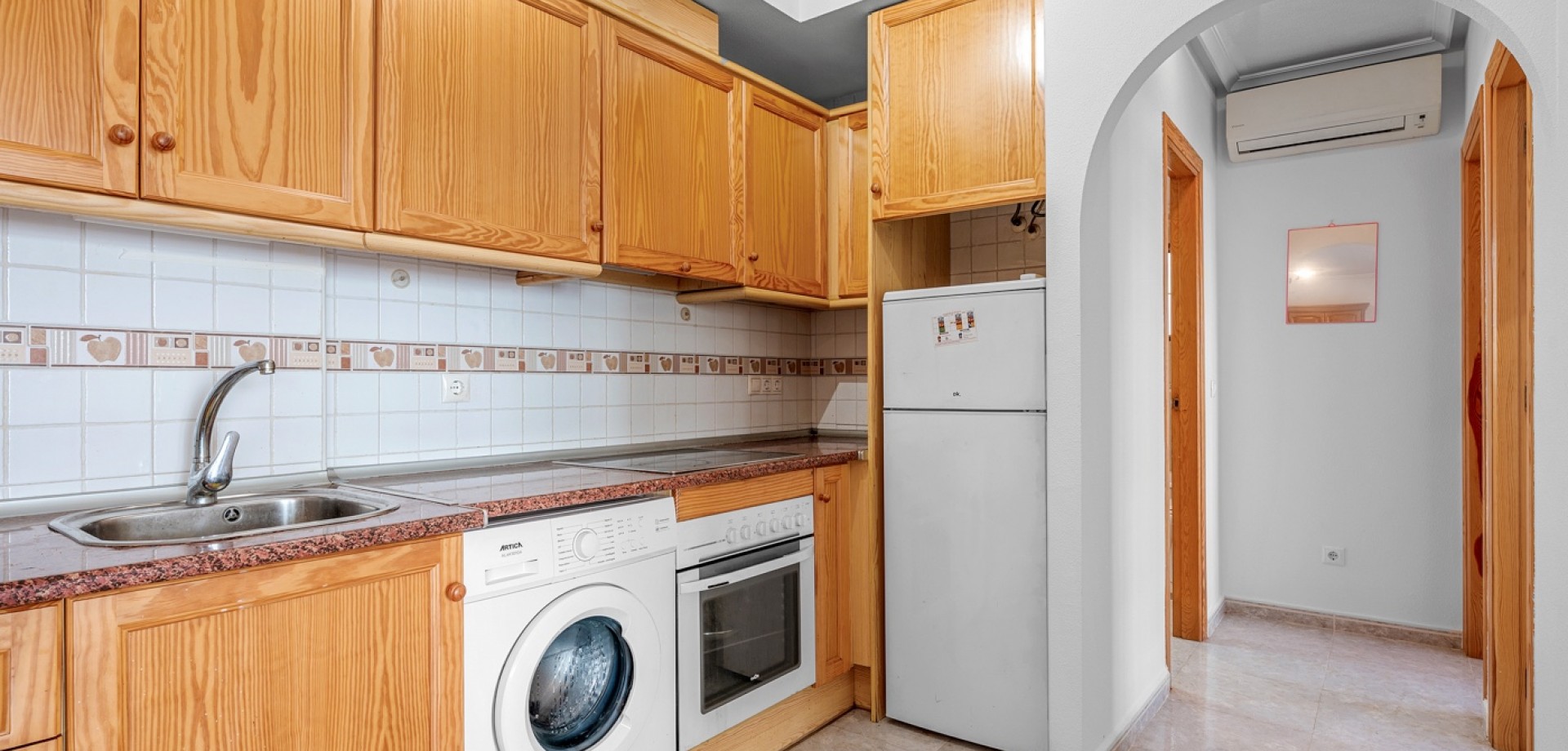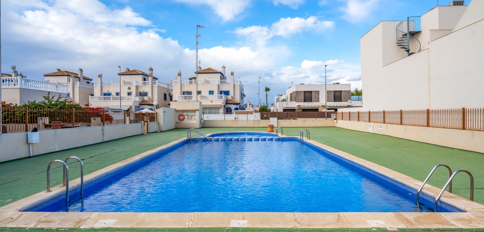 This charming bungalow is located in a quiet and well-connected residential area in Daya Vieja. The property sits on a 109 m² plot and has a constructed area of 66.50 m² and a usable area of 56 m², offering a very comfortable space to enjoy year-round or as a second home. The interior comprises 2 bedrooms, 1 full bathroom with bathtub, and a welcoming living room with an open-plan kitchen. The property requires some minor renovations and updates, making it an excellent opportunity to personalize it to your taste and increase its value. Outside, a large terrace runs along the front and one side of the house, in addition to an extra terrace at the entrance, perfect for creating chill-out areas, an outdoor dining area, or a small private garden. The residential complex has a communal swimming pool, ideal for cooling off on the hottest days. Furthermore, the location is unbeatable: just steps from leisure areas and essential services, and only 15 minutes by car from the beaches of the Costa Blanca. An ideal investment for renovation and subsequent use or rental, with great potential for profitability.