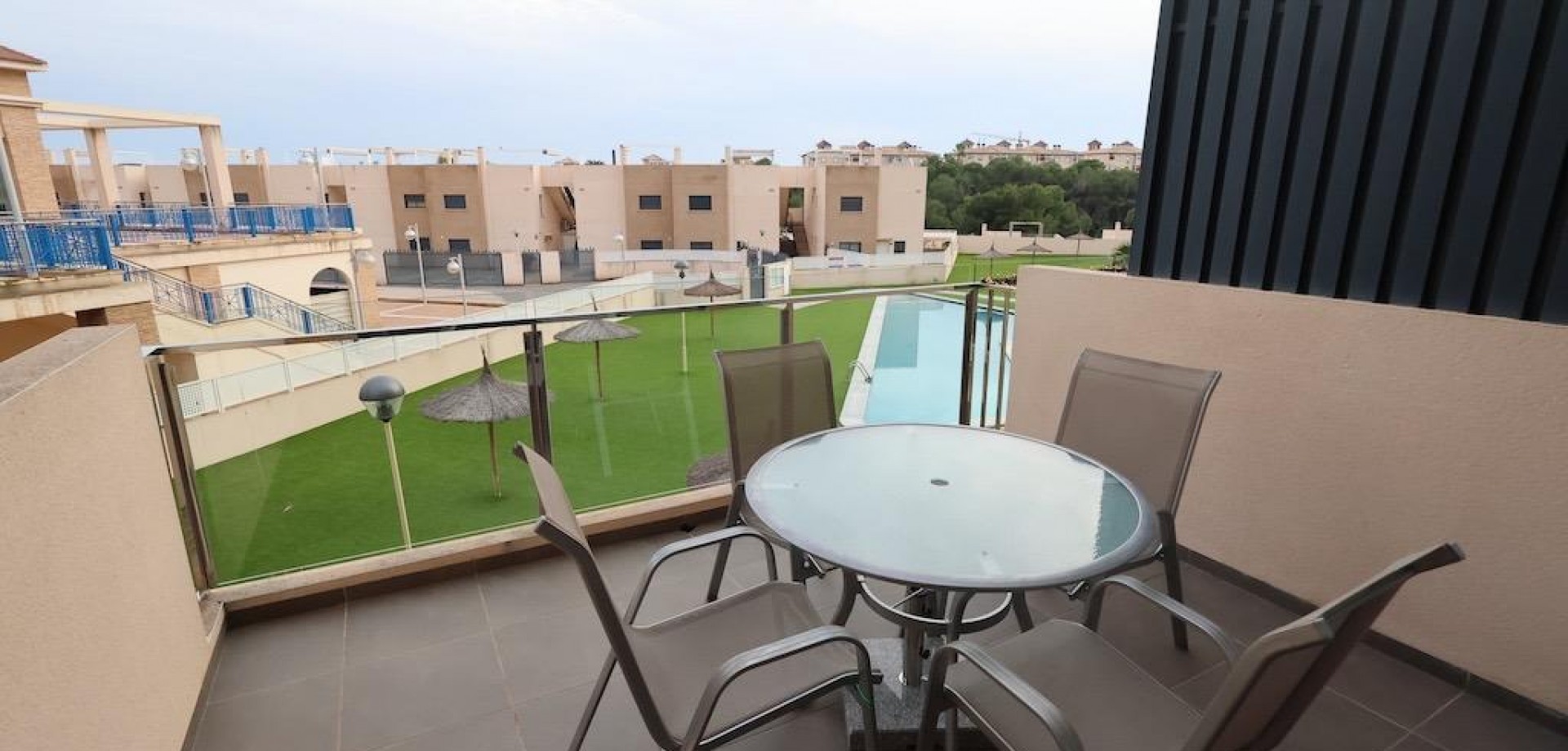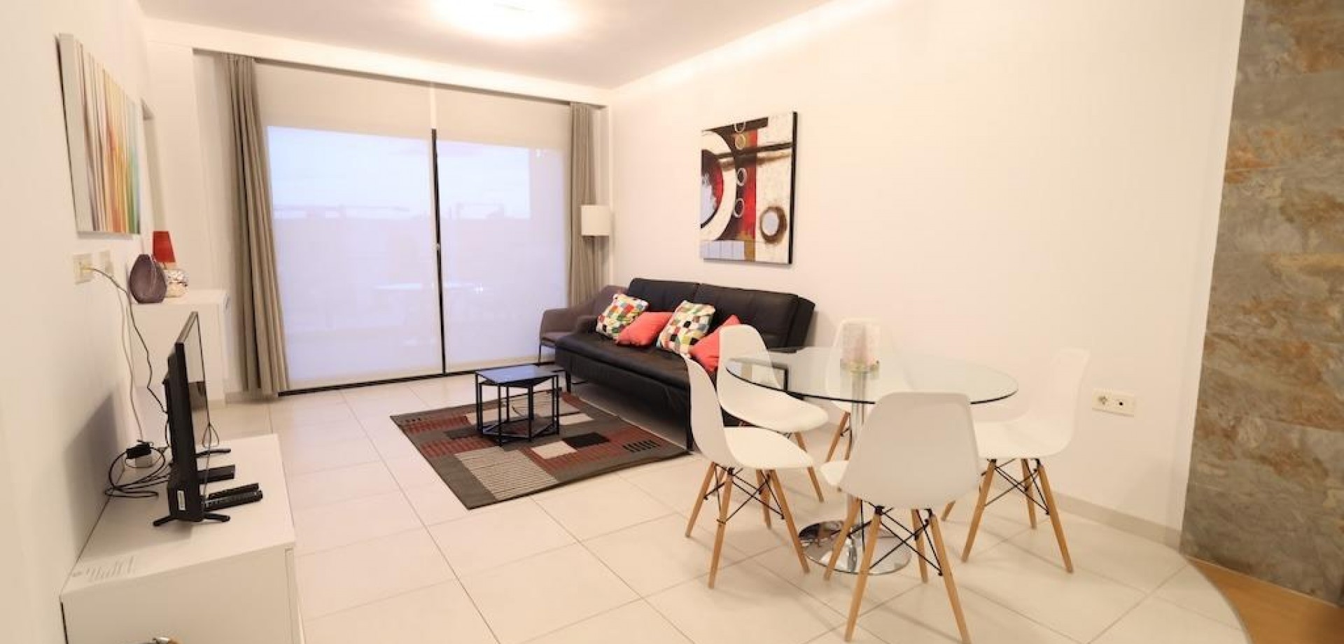 La Zenia, Residencial Sabrina.. 77 m2 south-facing apartment featuring 2 bedrooms (1 en suite), 2 bathrooms, a spacious living-dining room, an open-plan kitchen, and a terrace. The property is sold furnished and with air conditioning. It offers extensive communal areas with a community pool, as well as a storage room and parking. The apartment has a tourist licence and currently generates excellent returns.