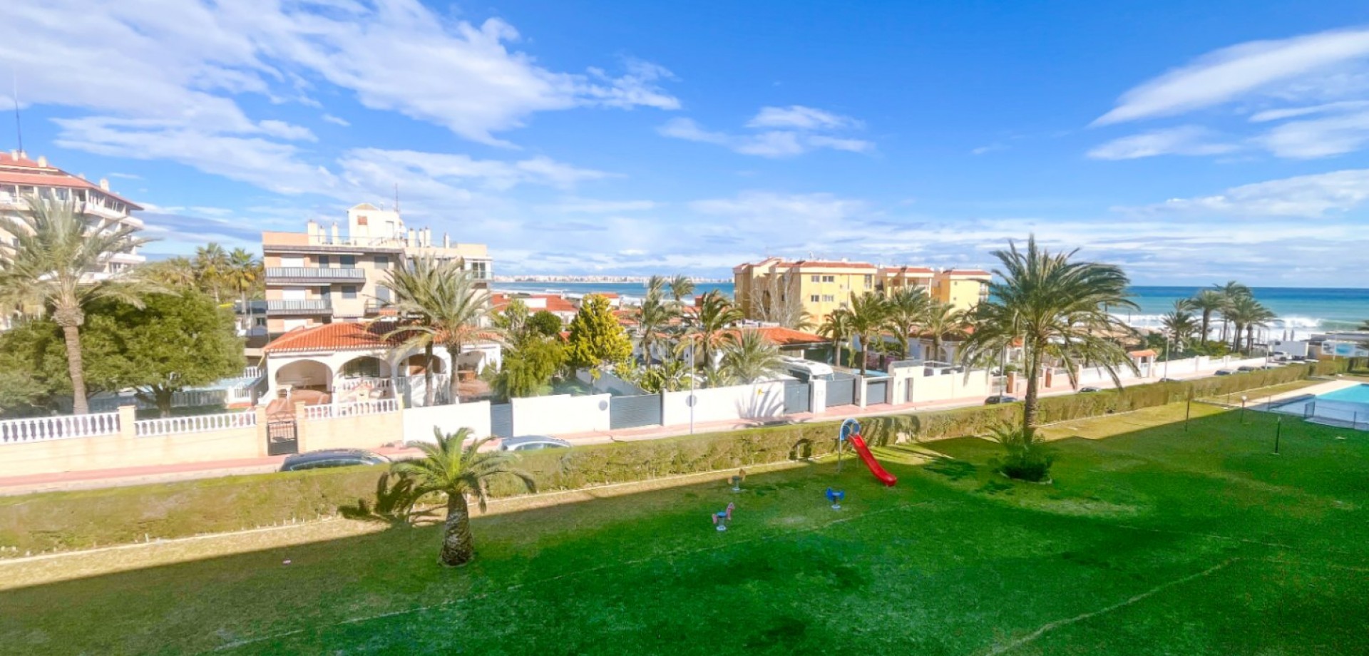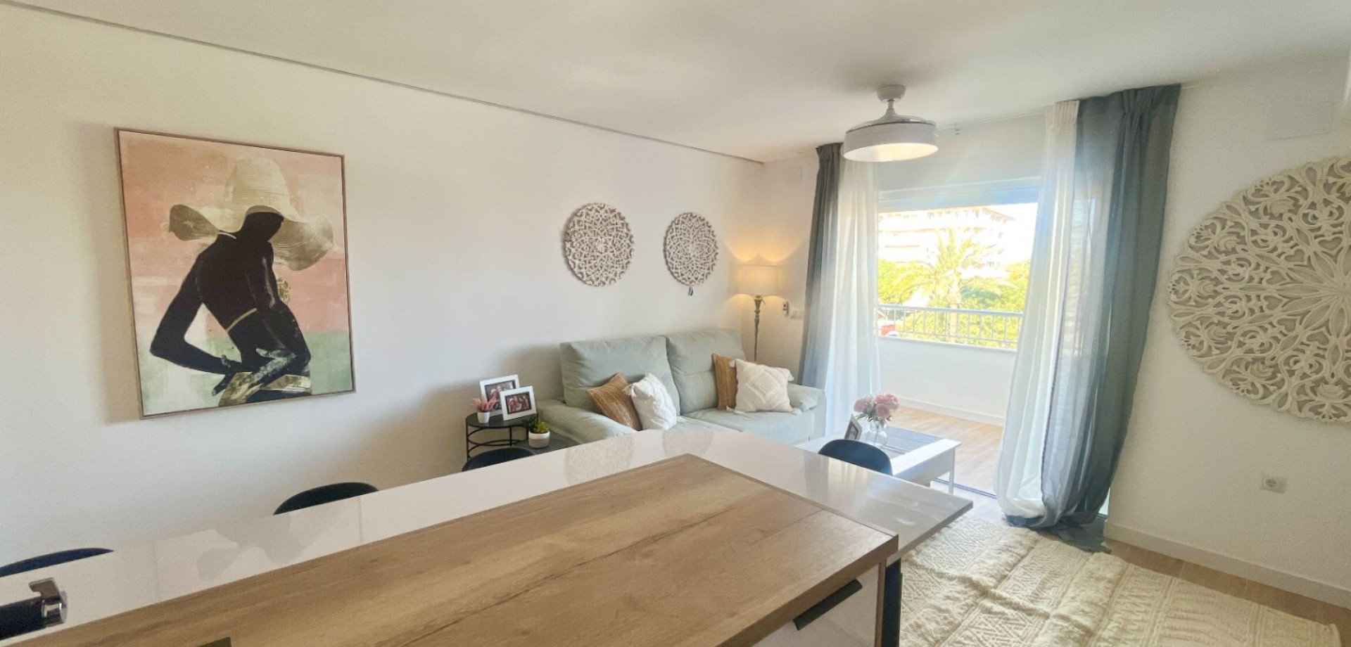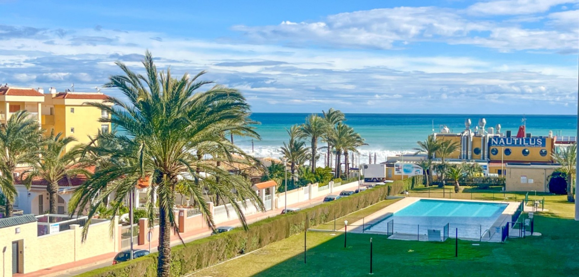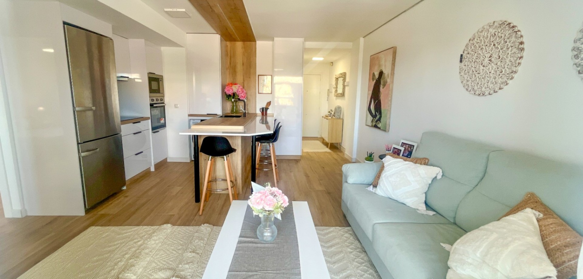 This upgraded three-bedroom apartment is situated in Edificio Nautilus II, one of Punta Prima’s most recognised coastal developments, just a few minutes’ walk from Cala Piteras beach and the Nautilus Restaurant. The location combines easy access to the seafront with practical day-to-day convenience — a well-established setting within the Orihuela Costa. The apartment is fully furnished and move-in ready. Inside, the layout feels open and well-balanced: a comfortable living and dining area connects with a modern kitchen that has been completely renovated, featuring an island design, quality integrated appliances, and organised storage. There are three bedrooms in total. The main bedroom has an en-suite bathroom, while the other two share a second full bathroom. The home also benefits from centralised air conditioning, ensuring year-round comfort. Added highlights include an underground closed garage, a private solarium storage room, and sea views from the terrace, offering both convenience and a pleasant coastal outlook. Located within Edificio Nautilus II, residents enjoy access to a communal swimming pool surrounded by tidy landscaped areas. The community is secure, well-maintained, and managed to a high standard. From the building, Cala Piteras beach is just a short walk away — known locally for its calm waters and coastal paths leading toward Torrevieja’s front promenade. Everyday amenities such as supermarkets, cafés, and public transport are nearby, making it easy to get around without needing to drive for essentials. The wider Orihuela Costa area is well connected. La Zenia Boulevard, several well-known golf courses like Villamartín and Las Ramblas, and multiple beaches are within a short drive. Both Alicante Airport (45 minutes) and Murcia Airport (35 minutes) provide reliable year-round access for international travel.
