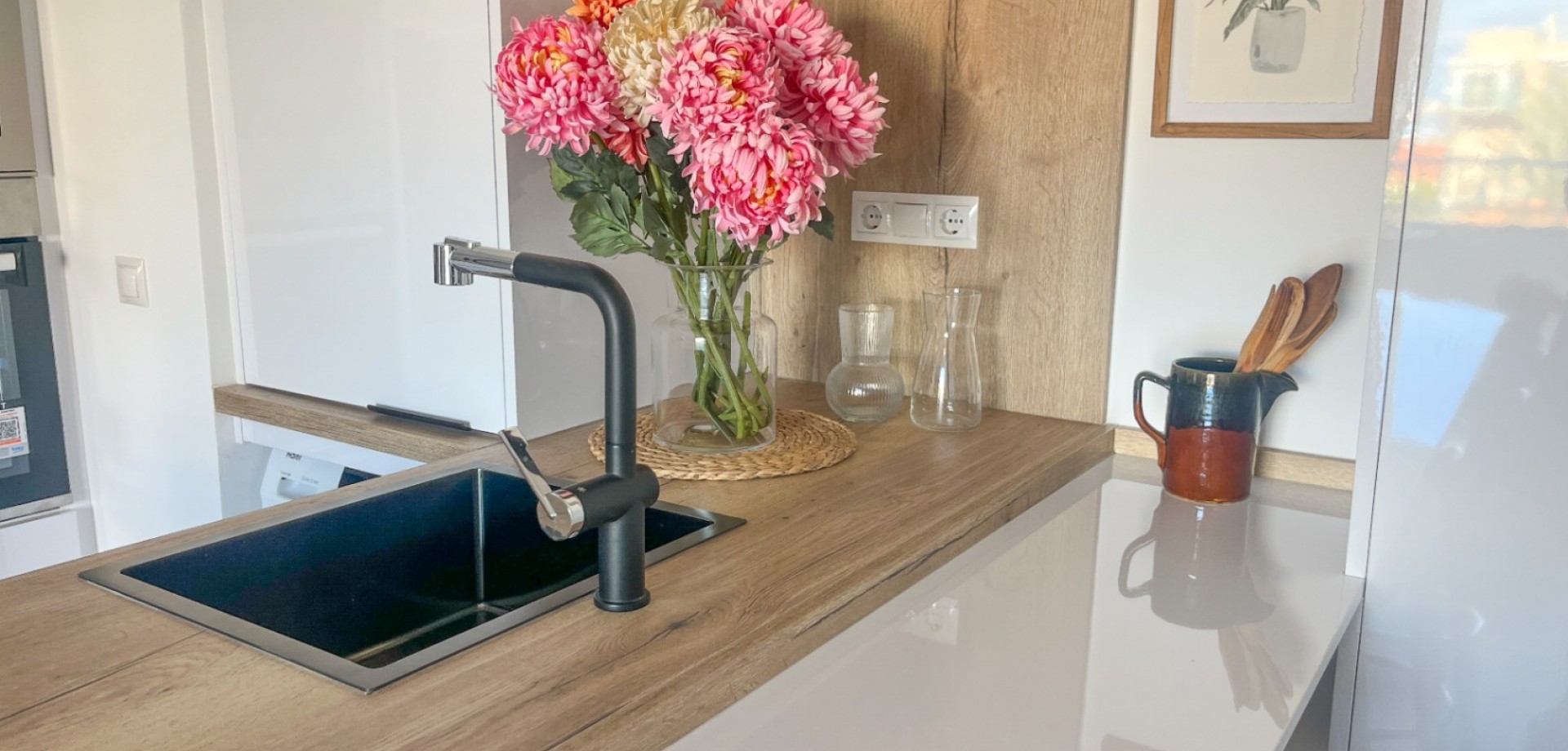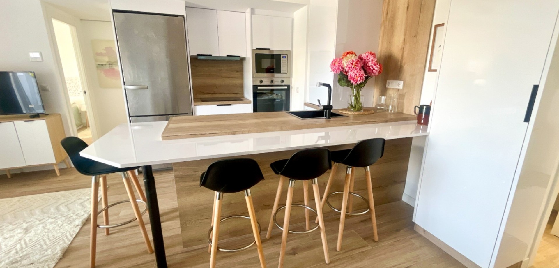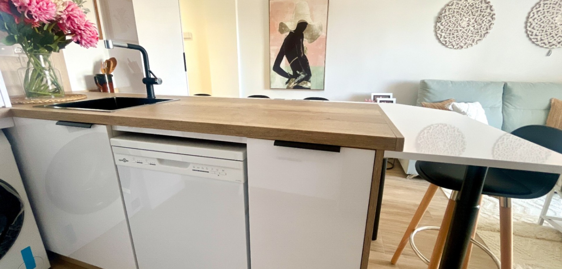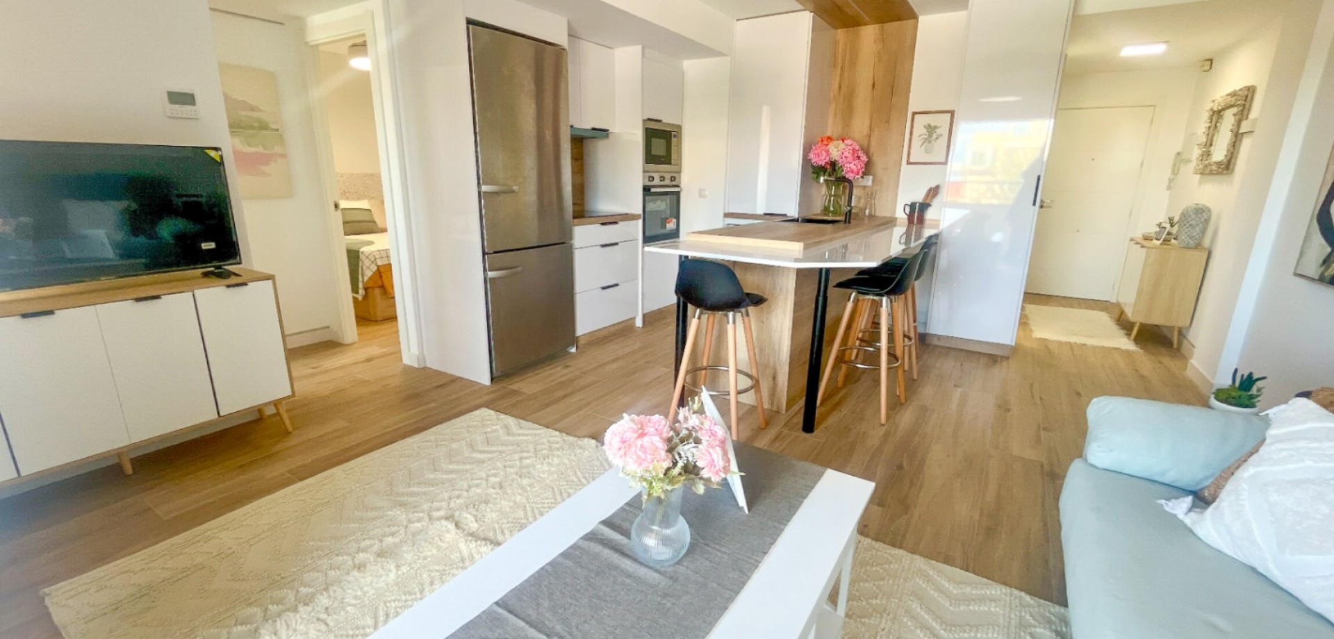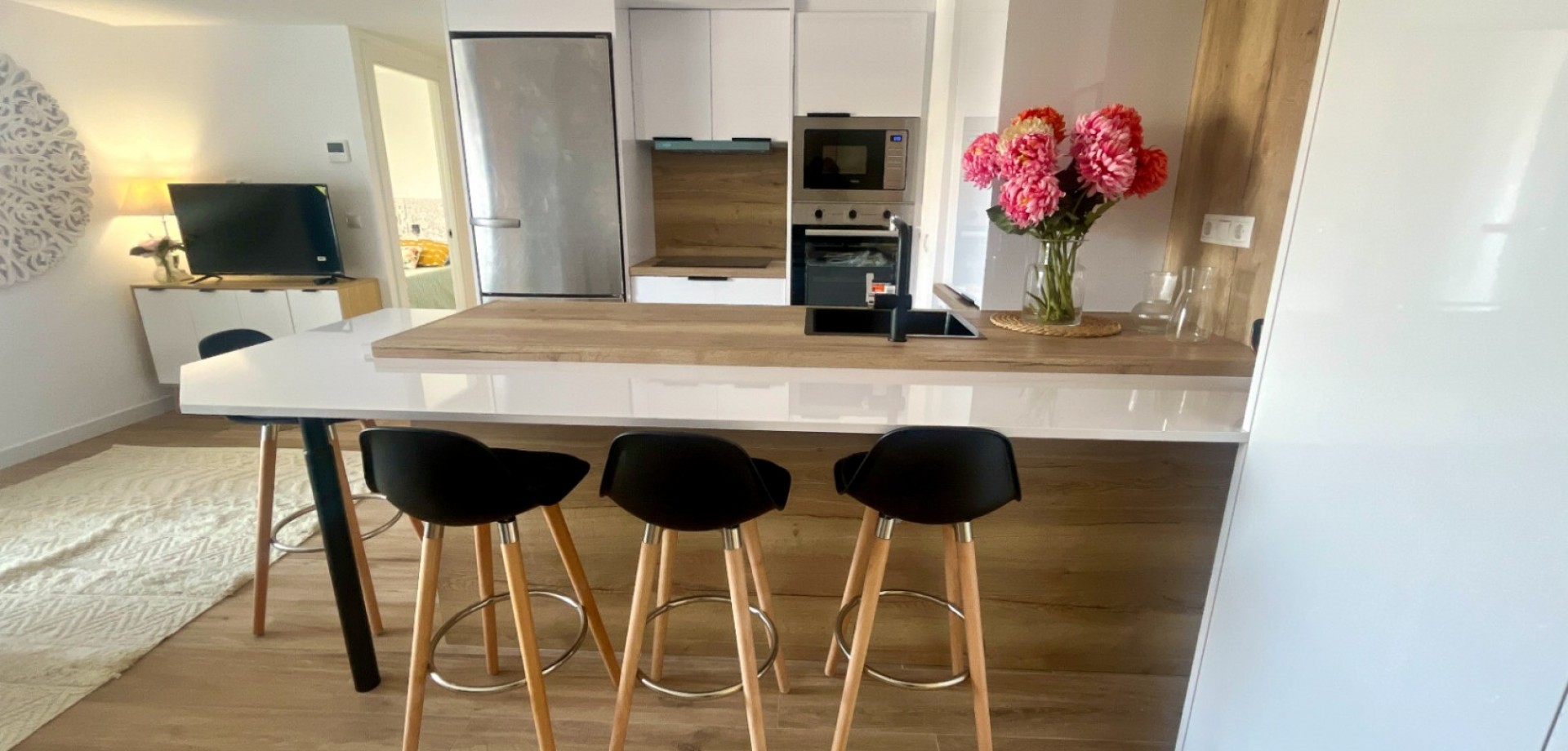 This upgraded three-bedroom apartment is situated in Edificio Nautilus II, one of Punta Prima’s most recognised coastal developments, just a few minutes’ walk from Cala Piteras beach and the Nautilus Restaurant. The location combines easy access to the seafront with practical day-to-day convenience — a well-established setting within the Orihuela Costa. The apartment is fully furnished and move-in ready. Inside, the layout feels open and well-balanced: a comfortable living and dining area connects with a modern kitchen that has been completely renovated, featuring an island design, quality integrated appliances, and organised storage. There are three bedrooms in total. The main bedroom has an en-suite bathroom, while the other two share a second full bathroom. The home also benefits from centralised air conditioning, ensuring year-round comfort. Added highlights include an underground closed garage, a private solarium storage room, and sea views from the terrace, offering both convenience and a pleasant coastal outlook. Located within Edificio Nautilus II, residents enjoy access to a communal swimming pool surrounded by tidy landscaped areas. The community is secure, well-maintained, and managed to a high standard. From the building, Cala Piteras beach is just a short walk away — known locally for its calm waters and coastal paths leading toward Torrevieja’s front promenade. Everyday amenities such as supermarkets, cafés, and public transport are nearby, making it easy to get around without needing to drive for essentials. The wider Orihuela Costa area is well connected. La Zenia Boulevard, several well-known golf courses like Villamartín and Las Ramblas, and multiple beaches are within a short drive. Both Alicante Airport (45 minutes) and Murcia Airport (35 minutes) provide reliable year-round access for international travel.