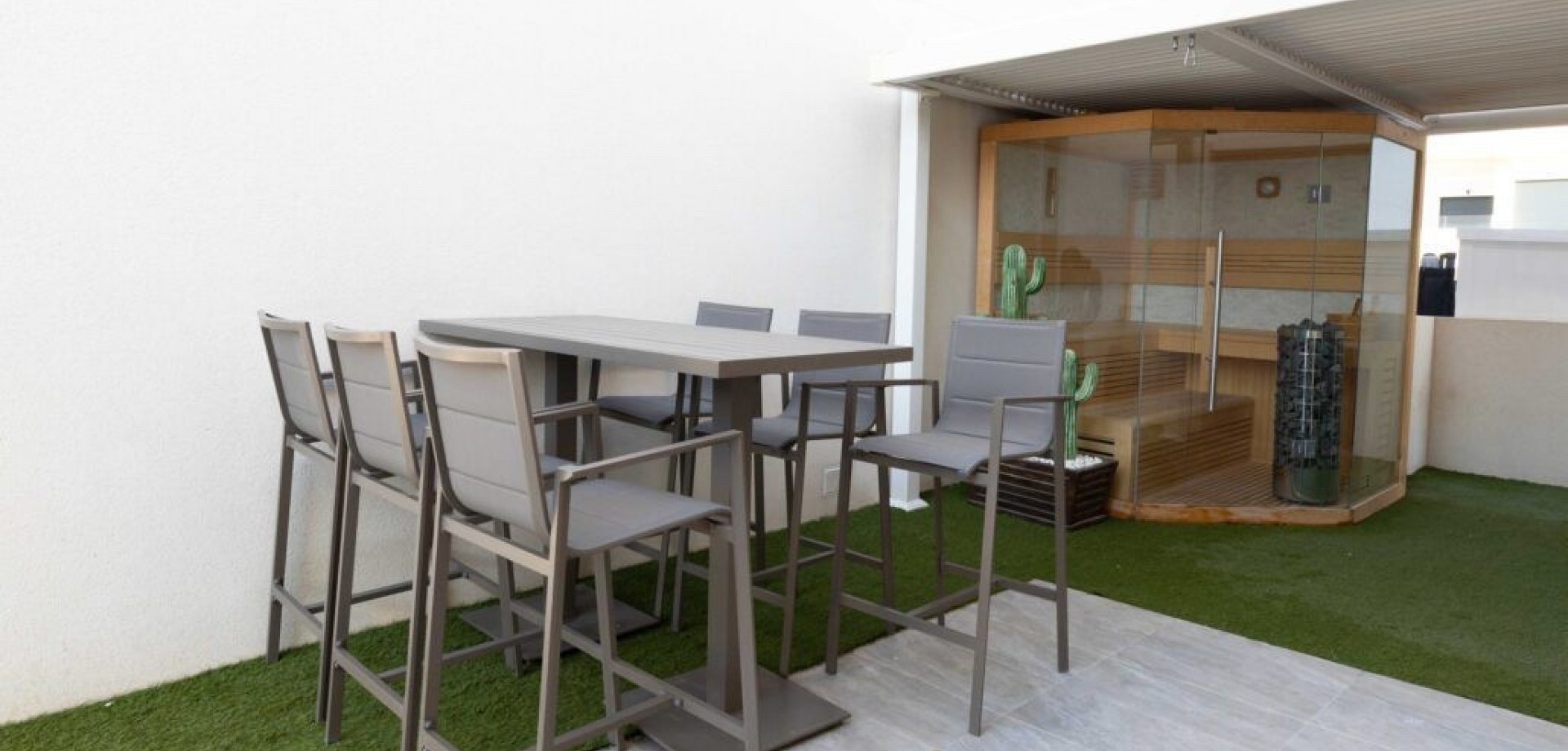 Discover the epitome of modern luxury in this exquisite villa from 2023, ready for you to move in and enjoy. Designed with impeccable attention to detail, this fully furnished home offers an unparalleled living experience. This villa features a heated private pool with mood lighting and a stunning waterfall, perfect for relaxing or entertaining. The luxurious sauna comes with integrated lighting options for a spa-like experience at home. Inside, you'll find elegant interiors with motorised blinds and underfloor heating in the bathrooms, ensuring maximum comfort and convenience. The property also includes a laundry room and a parking space with a motorised gate and EV charge station for modern living. Location: La Herrada, Los Montesinos Perfect for a convenient lifestyle. Experience the perfect blend of elegance and practicality in your dream home. Schedule your viewing today!
