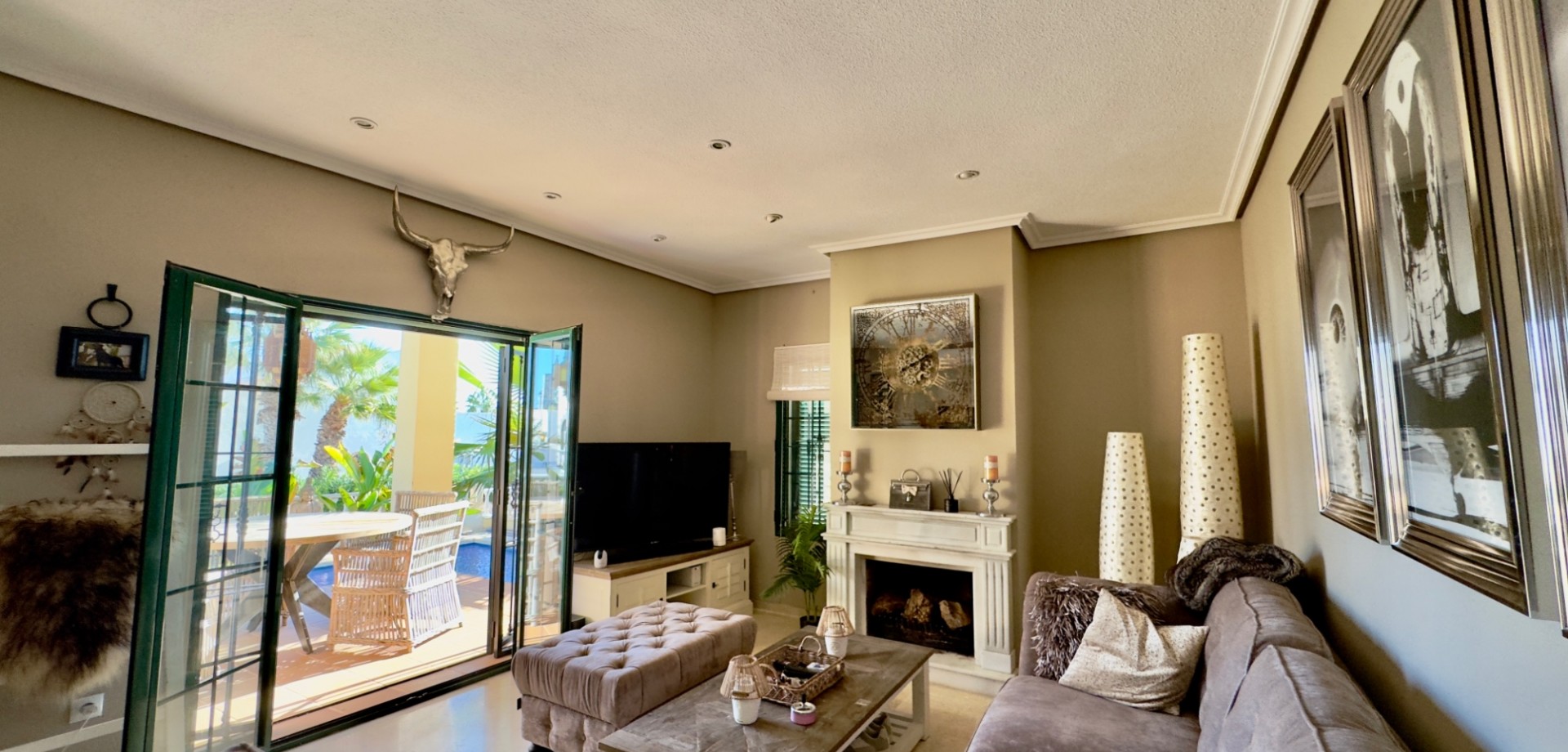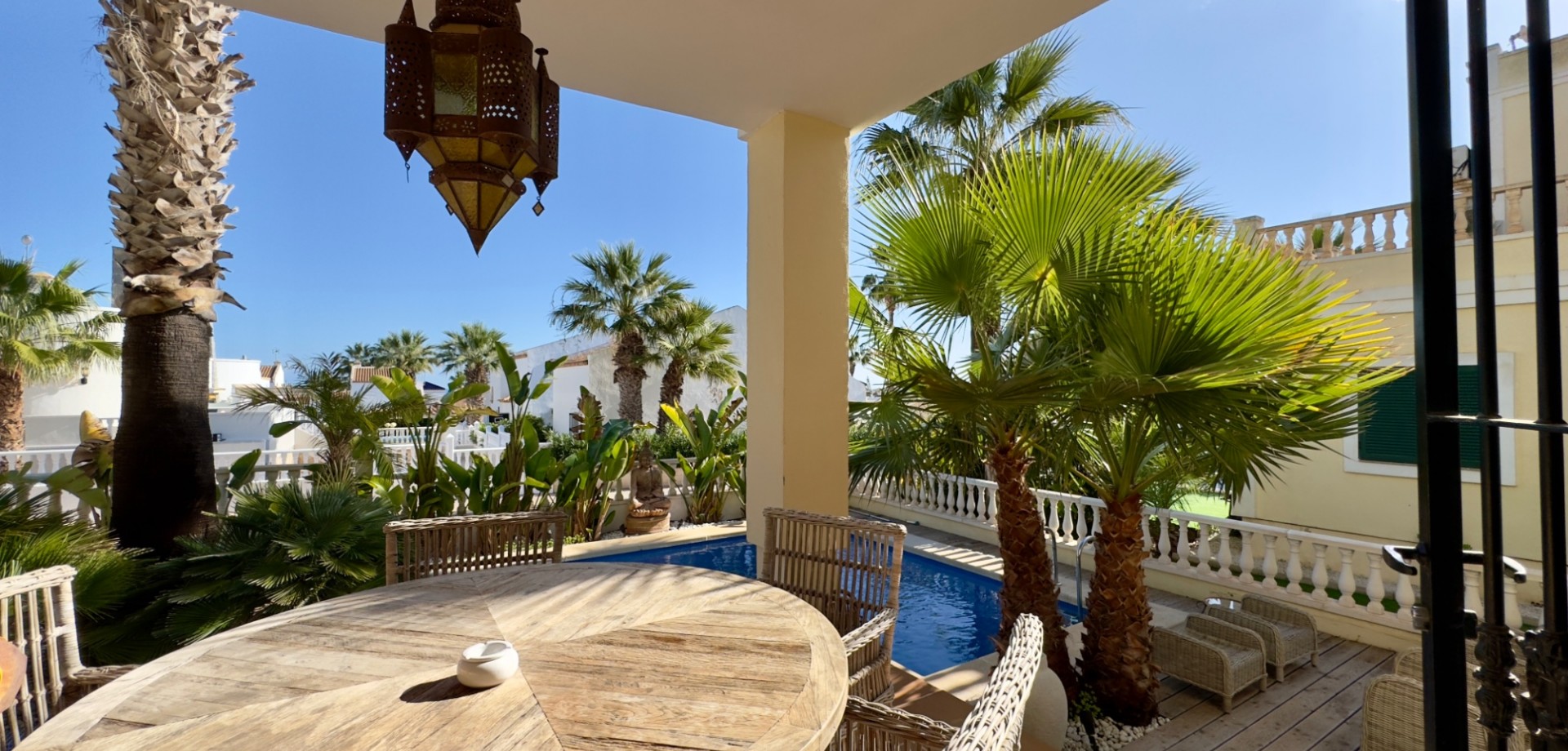 Situated in the charming and well-maintained Los Dolses residential area, this detached villa offers the perfect blend of comfort, functionality, and a Mediterranean lifestyle . The property is situated on a quiet street , ensuring extra privacy and a pleasant, peaceful living environment. Inside, you'll find three spacious bedrooms and two fully equipped bathrooms , making this villa ideal as both a permanent residence and a holiday retreat . The separate kitchen is practically designed and forms the heart of the home: perfect for those who enjoy cooking in a quiet, well-ventilated space. The villa is equipped with all necessary comfort. Outside, you'll enjoy a spacious 249 m² plot , offering plenty of privacy and several lovely spots to relax. Thanks to its east-west orientation, you'll enjoy abundant natural light and sunshine throughout the day—wonderful on the terrace, in the garden, or by the pool. The terrace off the living room also offers a beautiful view of the pool. If you'd like to meet the neighbors, you can always enjoy a dip in the communal pool . Are you also charmed by the beautiful, high-quality furniture? This can be taken over for an additional €15,000. A move-in ready villa in a popular area on the Costa Blanca , within easy reach of shops, restaurants, golf courses and the beaches of Orihuela Costa . Want more information or a (video) on-site visit? Contact us today! Community of VVE: €748/year Property tax: €515.81/year