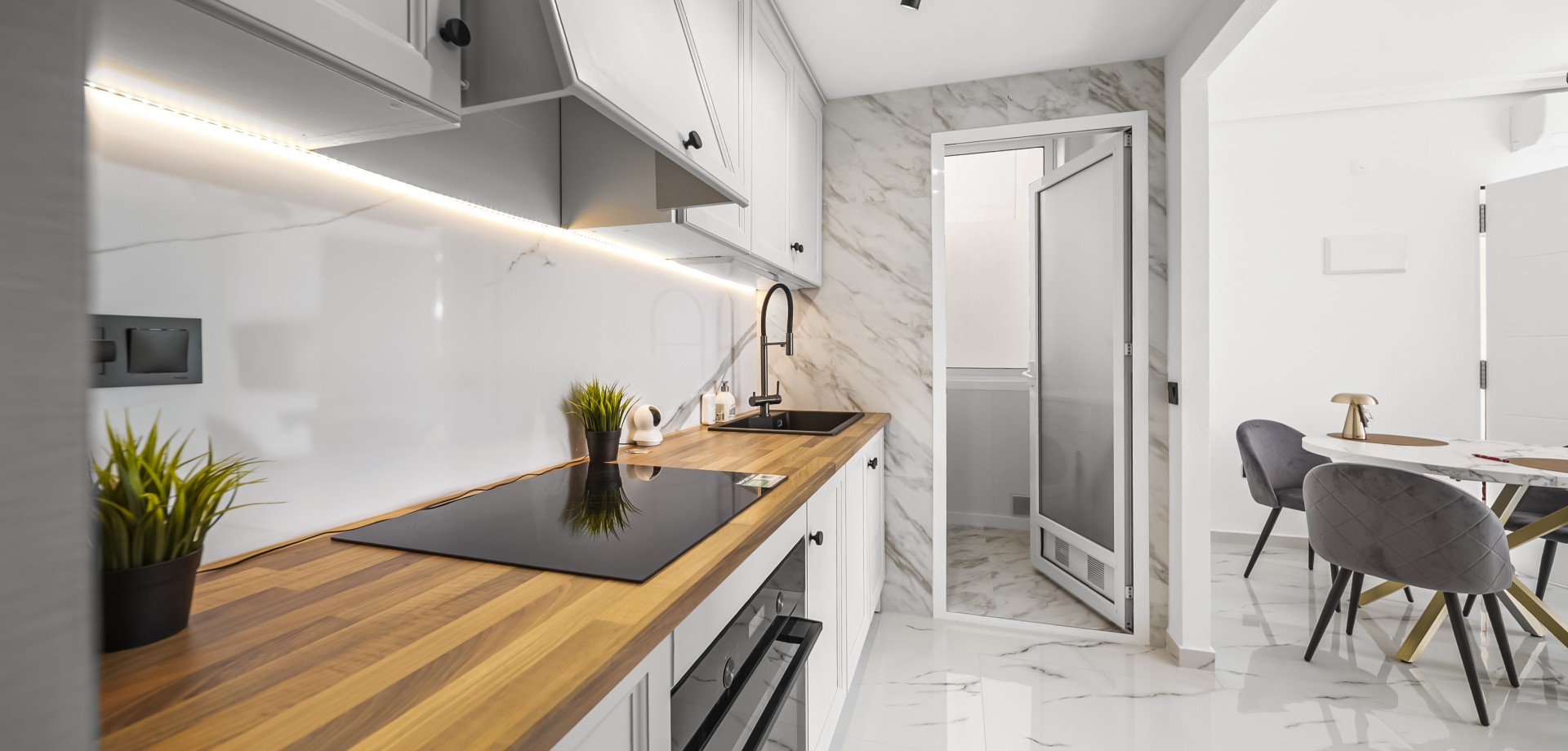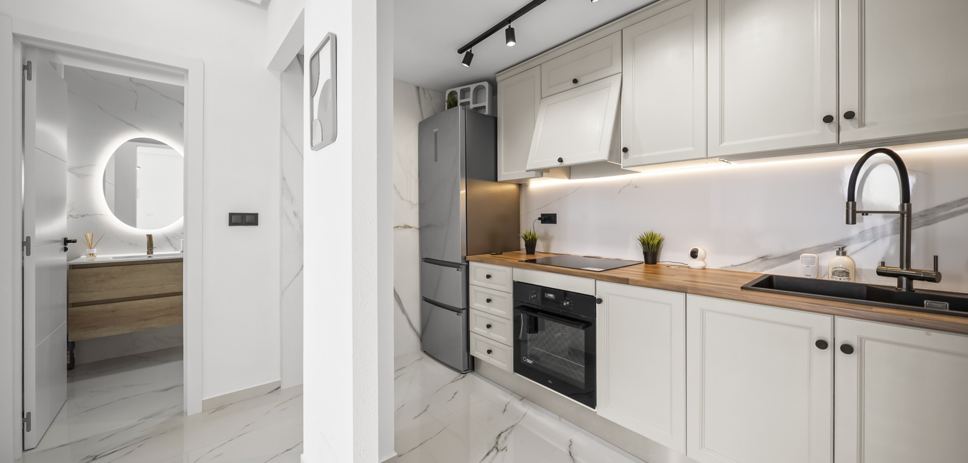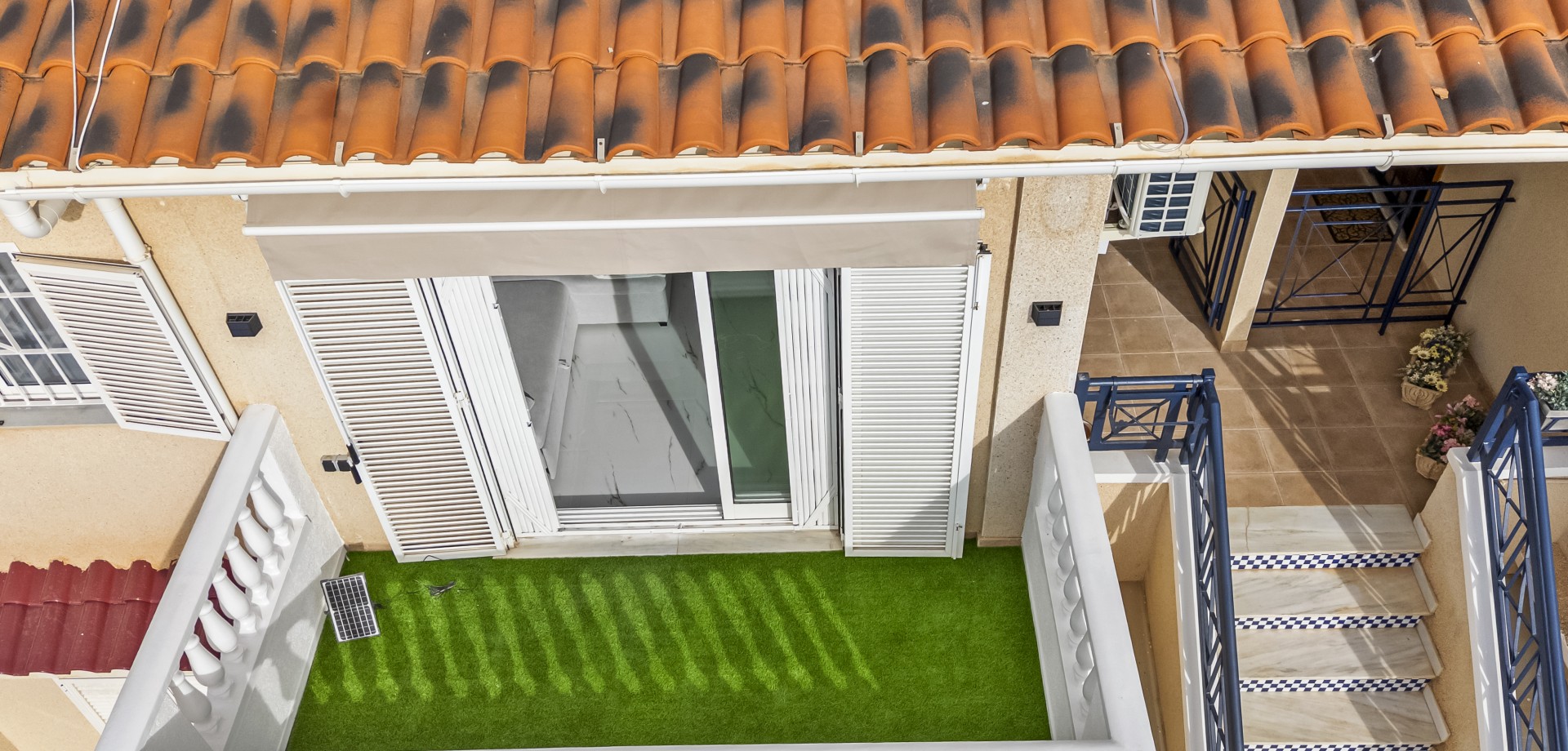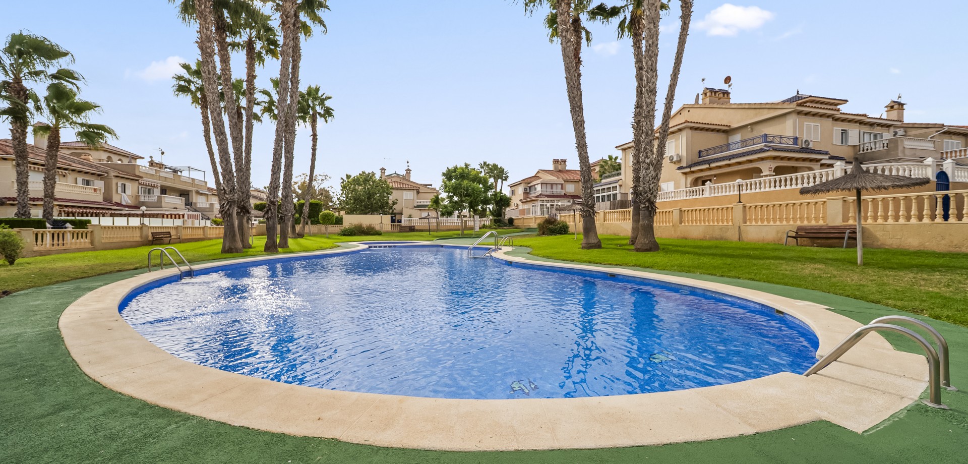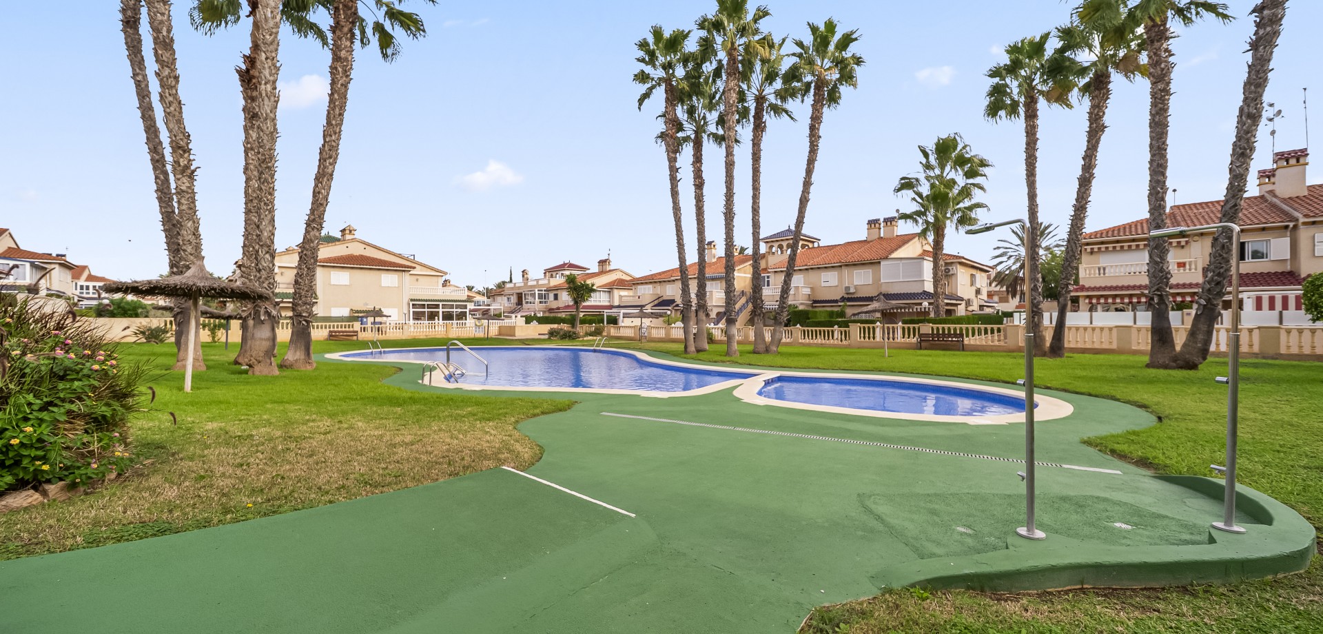 Renovated apartment with sunny terrace and sea views in Zeniamar. Fully renovated in 2025, this apartment is located on the first floor (no lift) in the Zeniamar residential complex, Playa Flamenca. It features 1 bedroom, 1 bathroom, an open-plan kitchen, and a southeast-facing terrace with sea views. Sold furnished, with storage room and access to a communal pool. Key features 1 bedroom 1 bathroom 52 m² built Open-plan kitchen Terrace with sea views First floor (no lift) Storage room Furnished Communal pool Southeast orientation Year of construction: 2001 Renovated in 2025 Annual costs IBI: €125 Community fees: €364 Location Close to all services Just minutes from supermarkets, padel courts, La Zenia Boulevard, and restaurants
