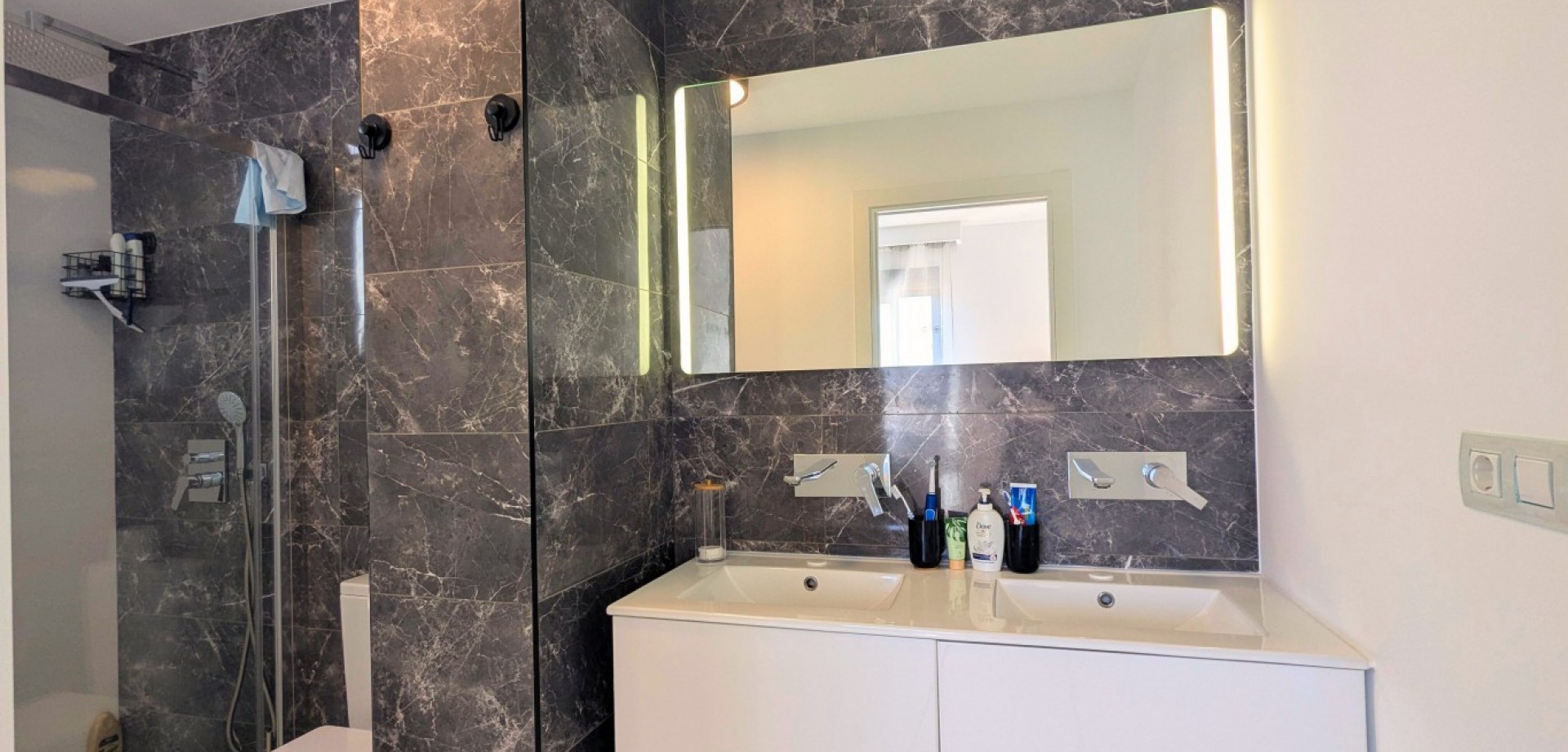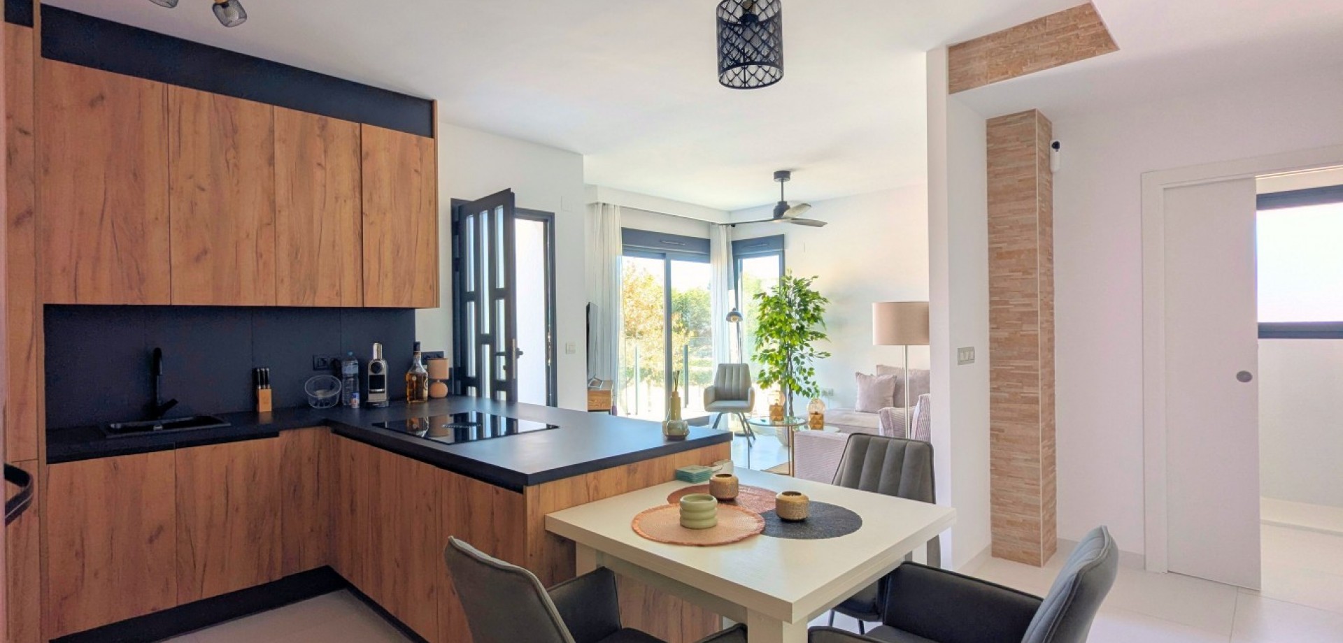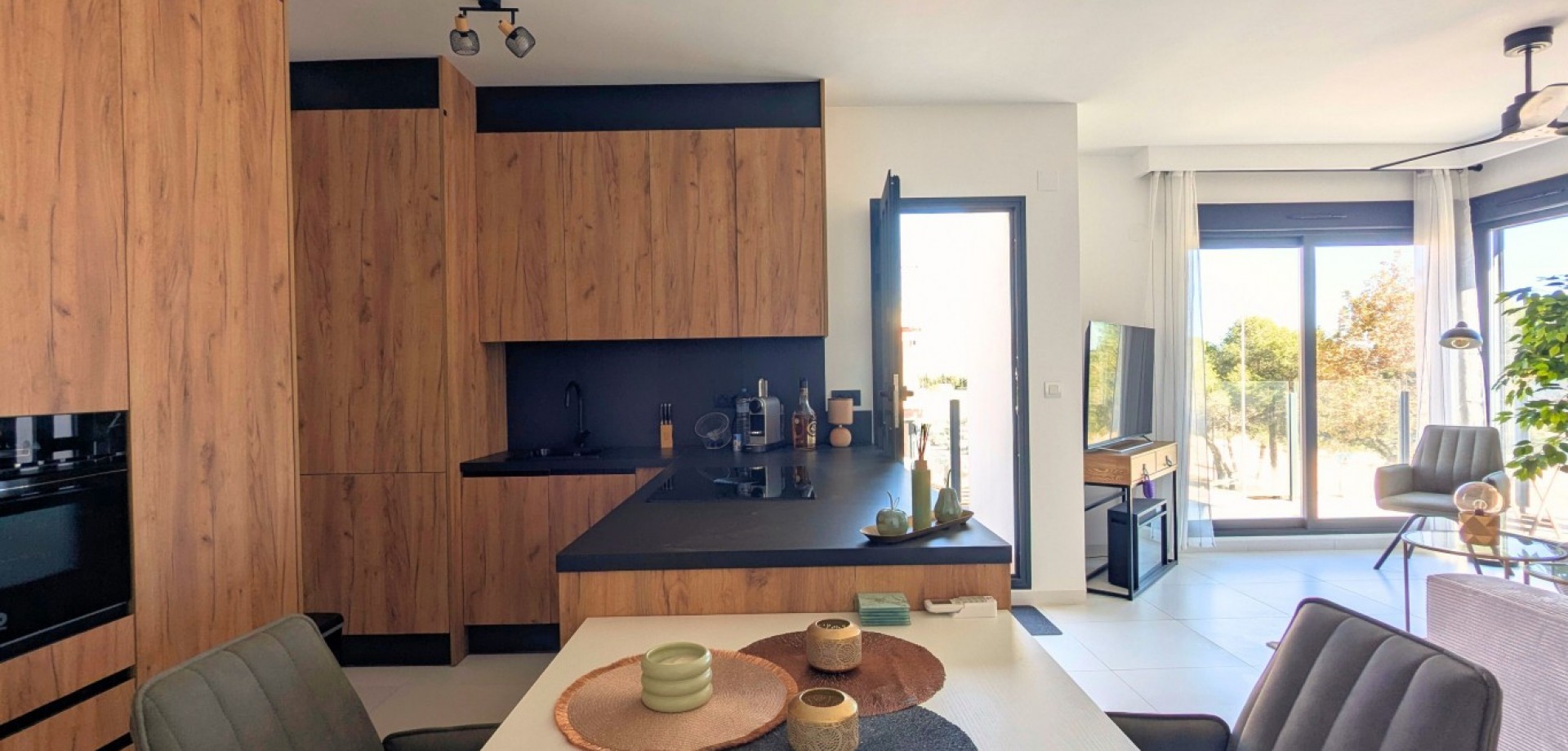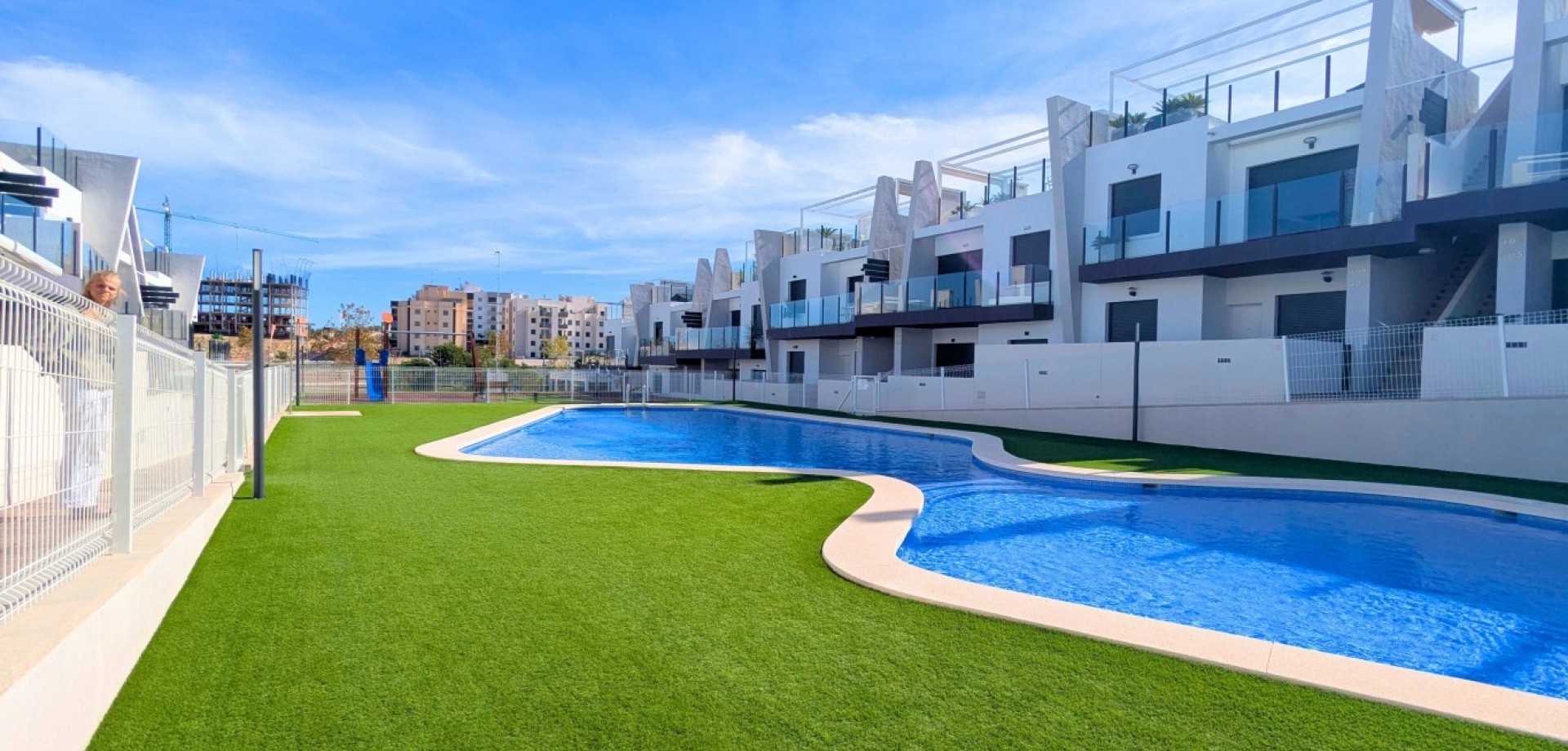 We present this exceptional corner penthouse in San Miguel de Salinas – a modern, uniquely designed home built in 2024, offering stunning views and outstanding outdoor living. Ideally located close to all amenities, this penthouse stands out immediately thanks to its unique layout, different from all other penthouses in the development. The interior is bright and welcoming, flooded with natural light throughout the day thanks to its corner position and large windows. Inside, the property features a custom-designed kitchen and sliding doors instead of standard doors, giving the home an elegant, open and modern feel. The living area connects beautifully to the outdoor spaces, making it ideal for both everyday living and entertaining. One of the key highlights is the impressive private rooftop solarium, fully equipped for outdoor enjoyment. It includes an outdoor kitchen, pergola, and even a shower, making it the perfect place to relax, dine, or enjoy the sunshine while taking in the panoramic views over the Torrevieja salt lake and the park in front. The community offers excellent shared facilities, including a large swimming pool and a children’s playground, ideal for families or those who enjoy resort-style living. The penthouse also comes with air conditioning, ensuring comfort all year round. This is a rare opportunity to own a high-quality, uniquely designed penthouse with exceptional outdoor features and one of the best views in the area.