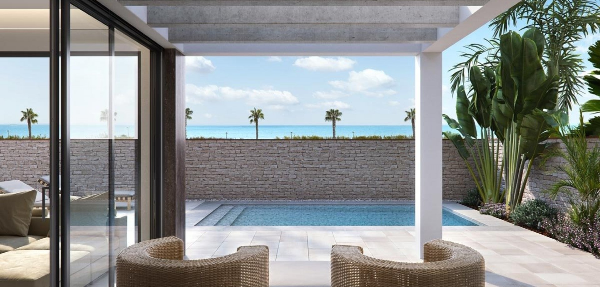 NEW BUILD VILLAS IN TORRE DE LA HORADADA Exclusive Residential of 2 luxury villas with sea views in “Las Higuericas” beach, Torre de la Horadada. Each villa has independent access from the surrounding streets, as there is no adjacent building. Low traffic streets with large green areas around the residential, these aspects are ideal for young family members. The villas feature a plot of 336m² or 338m², and a built area of 211m². The villas are built with three bedrooms; however it is also possible to build them with 4 bedrooms. One of the bedrooms is done with a completed bathroom. The kitchen is fully finished, with high quality materials chosen by the owner, including the appliances. Following an open concept, the dining room is surrounded with large windows, providing a source of pleasant day light, with direct access to the swimming pool and finished gardens with illumination, irrigation and local vegetation. Thanks to its design and interior distribution, a microclimate that extends to each living space is achieved in all villas. Furthermore, with the thermal and acoustic insulation, a harmonic and comfortable ambient is obtained. All this translates to the villa being sustainable and respectful with the environment. Selected finishes, using premium quality materials, customized luxury design and maximum comfort paired with hot and cold conduct air conditioning included in all areas, means the enjoyment of the villa is achieved in warm summers and also in soft winters, being possible to live here the whole year. Without forgetting a covered garage and parking with independent entrance for 2 cars. Torre de la Horadada is located south of Alicante in a beautiful location on the coast. The beautiful beaches of Torre de la Horadada and Mil Palmeras have fine sand beautiful promenade. There are lots of restaurants, bars and shops, also water sports, diving and snorkelling. It is well connected just 40 minutes from Alicante and Murcias Corvera airports, with large commercial shopping centres and multiple golf courses all within easy reach.