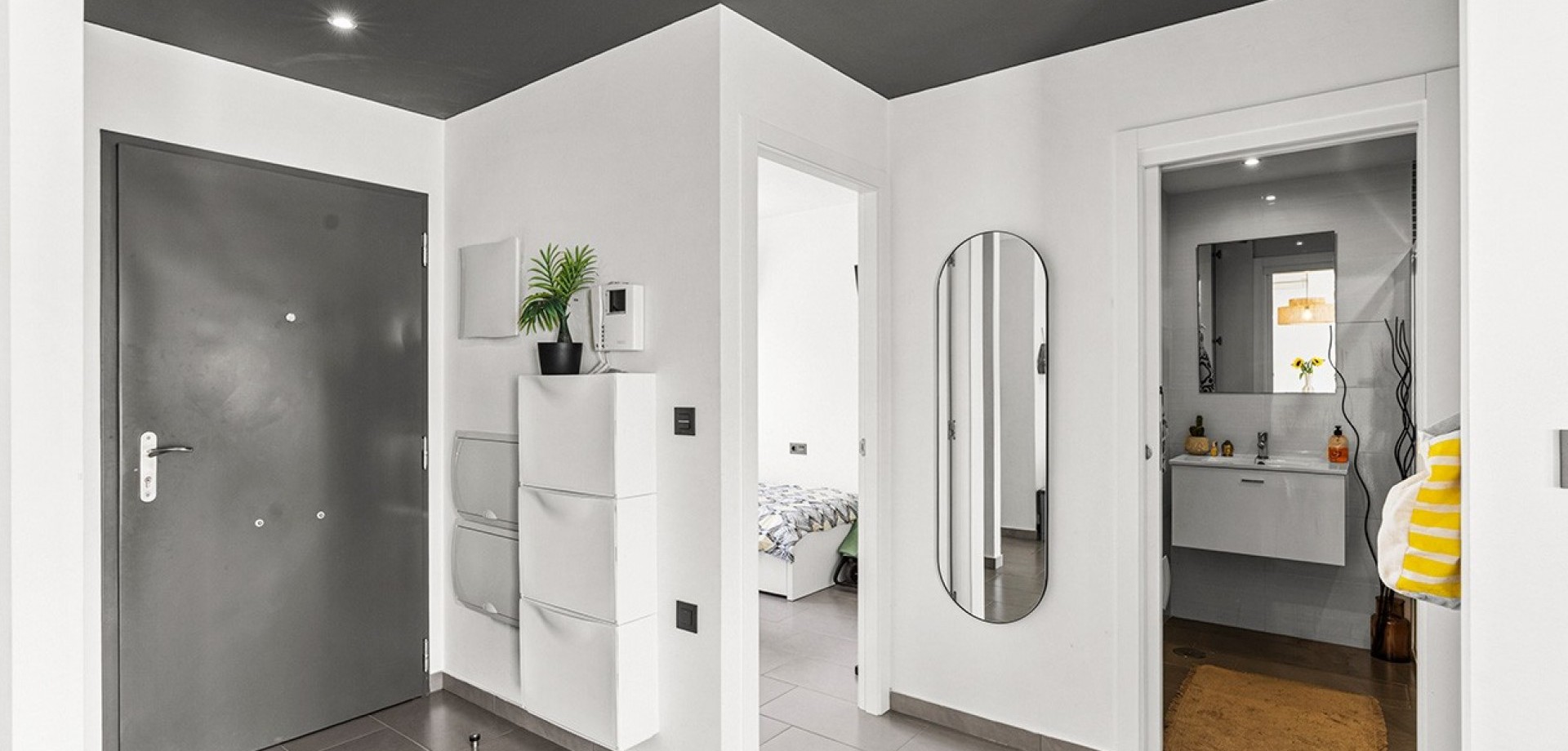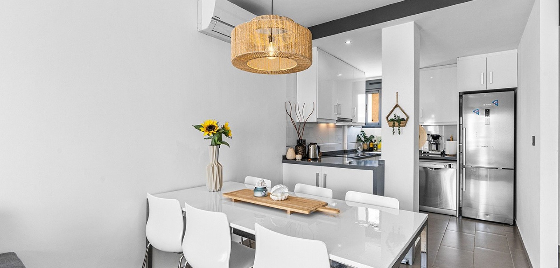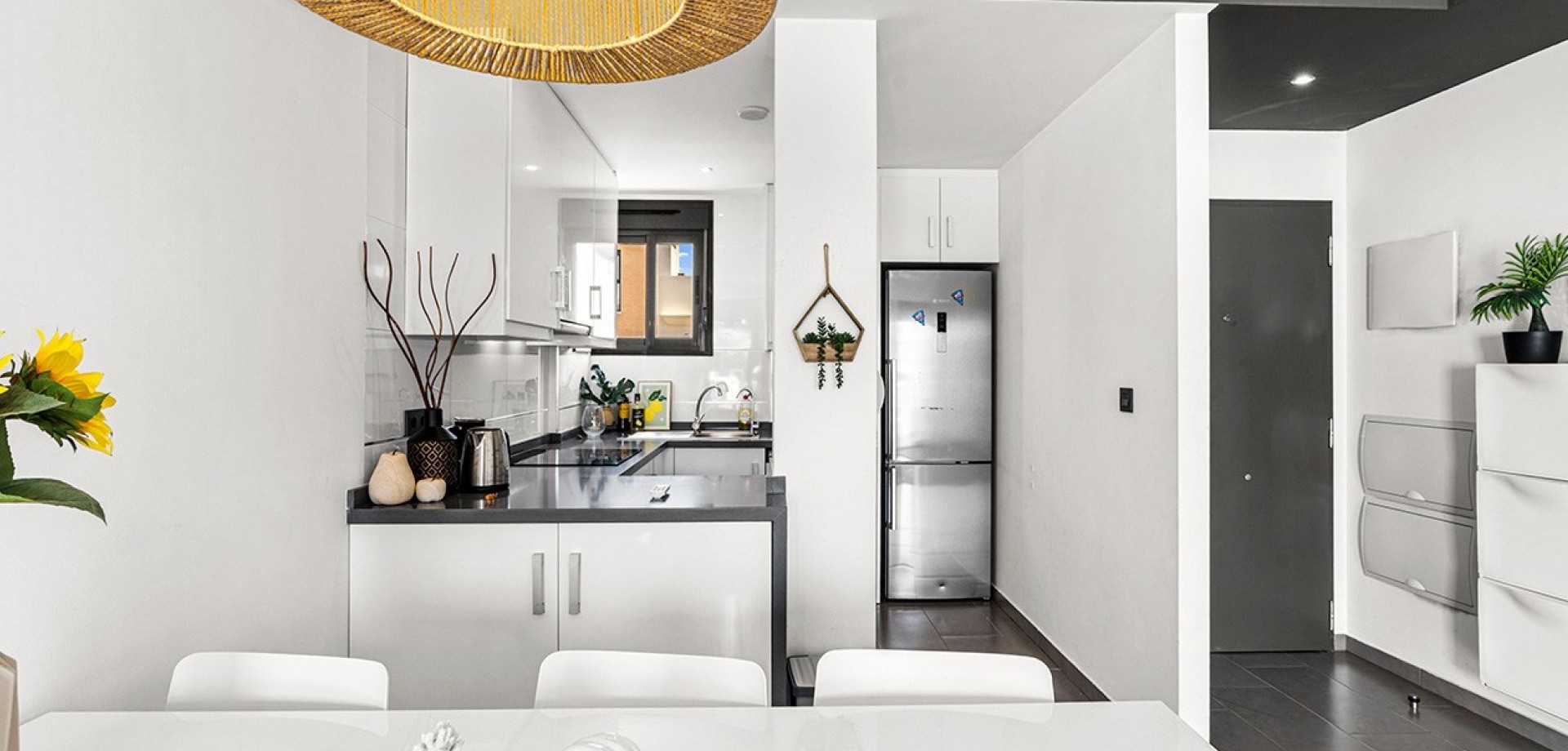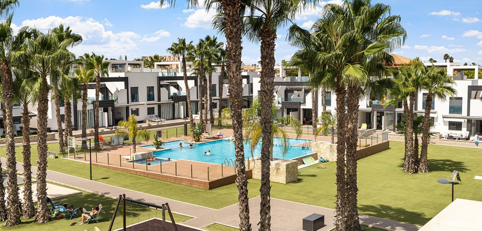 Costa Blanca Eiendom presents this elegant penthouse located in the prestigious Oasis Beach residential complex, in the heart of La Zenia, just steps away from the renowned Zenia Boulevard shopping centre. This property perfectly combines contemporary design, comfort and an unbeatable location, offering the ideal setting both for year-round living and as a second home by the sea. The home features two spacious bedrooms, one of them en-suite with views over the beautifully landscaped communal gardens, and two modern bathrooms fitted with high-quality materials and underfloor heating. The open-plan kitchen flows seamlessly into the bright living-dining area, which extends to a charming private terrace with awning, perfect for moments of relaxation. The property stands out for its large private rooftop solarium, designed for leisure and outdoor enjoyment, equipped with water, electricity, ambient lighting, a covered dining area and space to install a jacuzzi, creating an exclusive and inviting atmosphere. Additional features include hot and cold air conditioning throughout and a secure underground parking space. The property is sold furnished, except for personal belongings, and is ready to move into. The residential complex offers two large communal swimming pools with sunbathing and relaxation areas, a separate children’s pool, playgrounds and impeccably maintained gardens, all within a safe and peaceful environment next to a green park area. The location is simply perfect: just one minute’s walk from Zenia Boulevard with over 150 shops, restaurants and leisure options; only 20 minutes on foot to the beaches of La Zenia and Playa Flamenca, both known for their golden sand and crystal-clear waters; and just a short drive to three prestigious golf courses – Villamartín, Las Ramblas and Campoamor. In addition, it is well connected to local supermarkets, weekly markets and the airports of Alicante and Murcia, just 45 minutes away via the AP-7 motorway. This penthouse brings together all the qualities to make it an exceptional property: a privileged location, unique outdoor spaces and access to first-class services. Contact us today for more information, or join one of our no-obligation tours to visit this wonderful project.