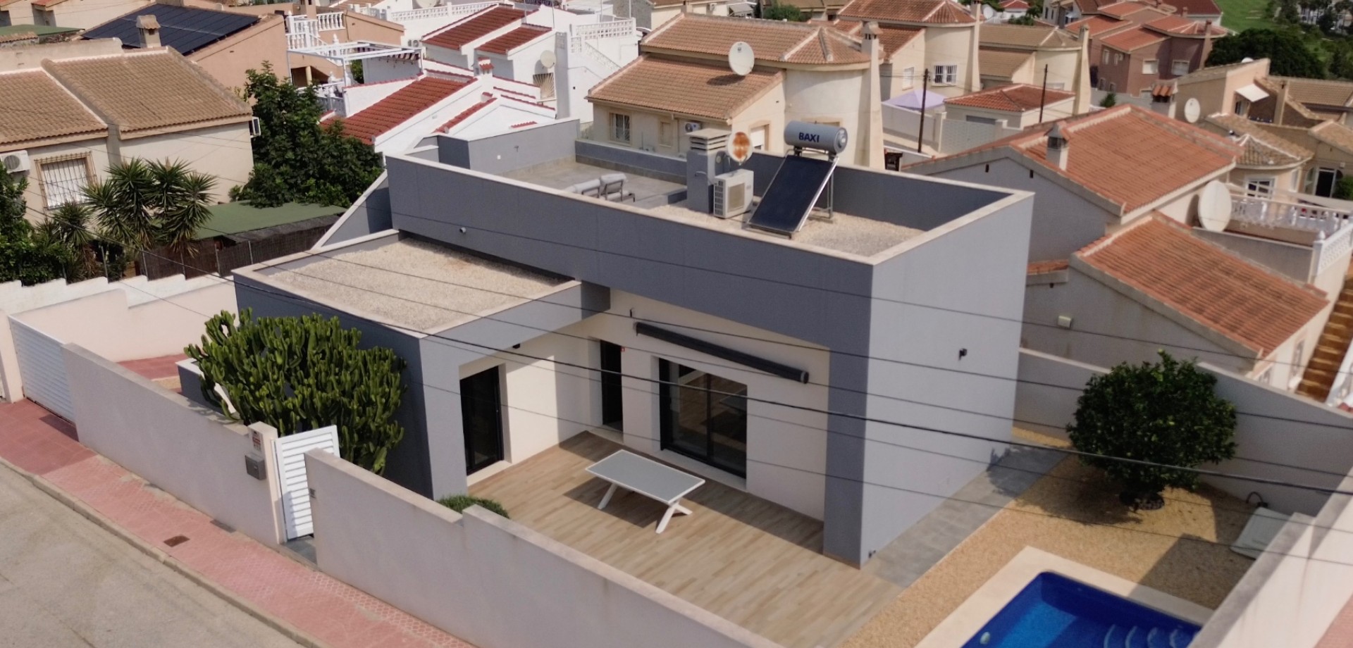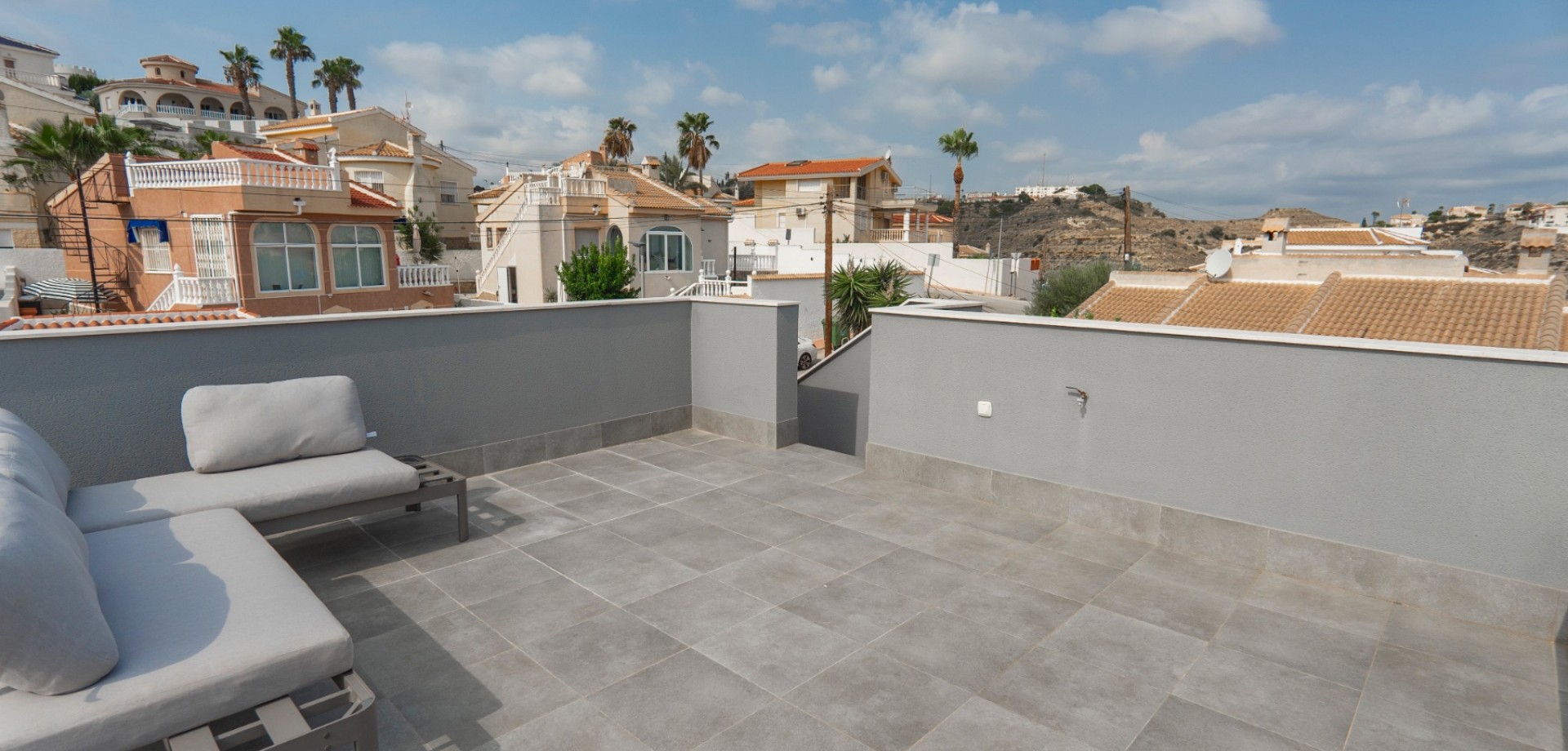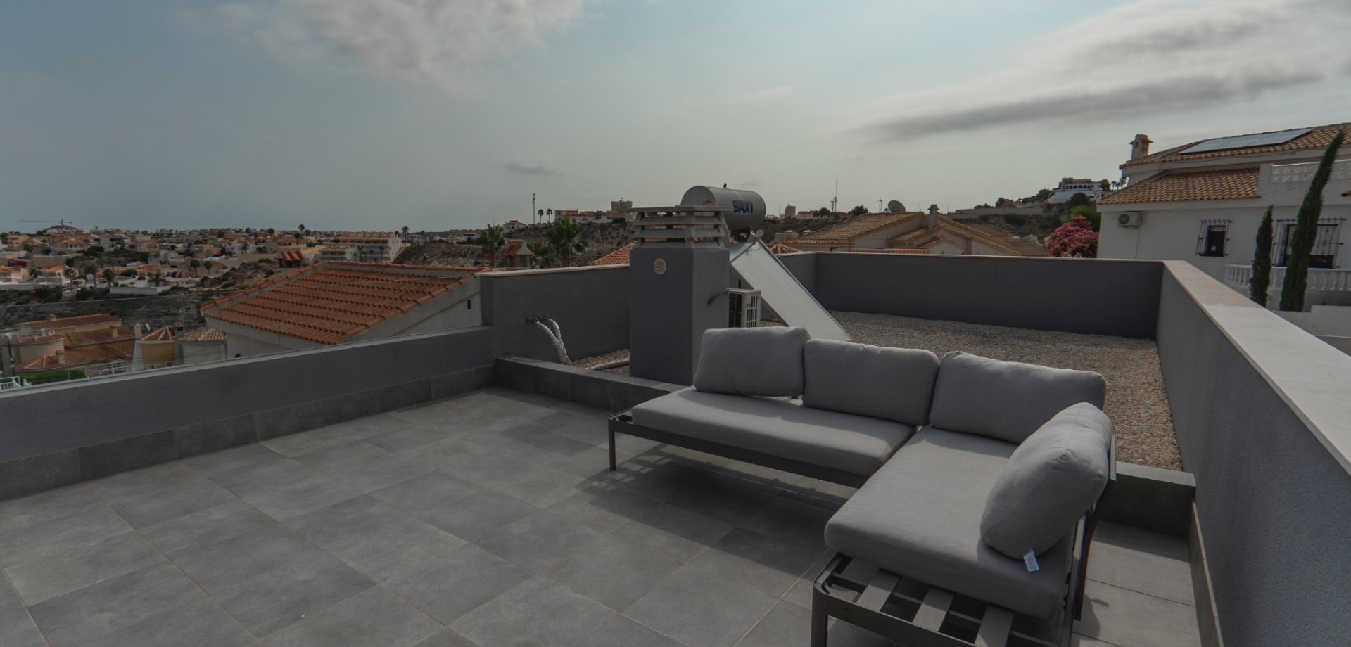 Discover comfort and style in this beautifully maintained 2-bedroom, 2-bathroom villa offering 76m² of living space on a low-maintenance private plot. Completed in 2018 and meticulously cared for, this single-level home is designed for effortless Mediterranean living. Property Overview This charming villa blends modern design with functional elegance. Bright interiors flow seamlessly into inviting outdoor spaces, including a private pool, multiple patios, and a rooftop solarium with sweeping views of the surrounding area and La Marquesa Golf Course. Whether as a full-time residence, a holiday getaway, or a smart investment, this property delivers convenience and lifestyle appeal in one of Costa Blanca’s most sought-after areas. Key Features Private pool and sun-drenched patios for relaxation and entertainingRooftop solarium with panoramic viewsOpen-plan living room and kitchen with modern finishesTwo comfortable bedrooms with built-in wardrobesTwo contemporary bathrooms with walk-in showersLow-maintenance garden and private parking on the plotMove-in ready, completed in 2018 and in excellent condition Designed for Relaxed Mediterranean Living Every detail of this villa is tailored to enjoy life under the Spanish sun. Whether cooling off in the pool, gathering with friends on the patio, or taking in the views from the rooftop solarium, this home offers a lifestyle that feels like a holiday every day. Prime Location: Ciudad Quesada, Rojales Restaurants, cafés, shops, and essential services all within easy reachActivities for all ages including golf, hiking, bowling, mini-golf, and a water parkJust 10 minutes by car to the beaches of Guardamar or TorreviejaWalking distance to La Marquesa Golf CourseLess than one hour’s drive to Alicante Airport A Superb Opportunity This villa is perfect for those seeking a modern, low-maintenance home in a lively community with year-round activity. Whether you are relocating, investing, or searching for a vacation retreat, Ciudad Quesada offers the perfect blend of convenience, lifestyle, and long-term value.