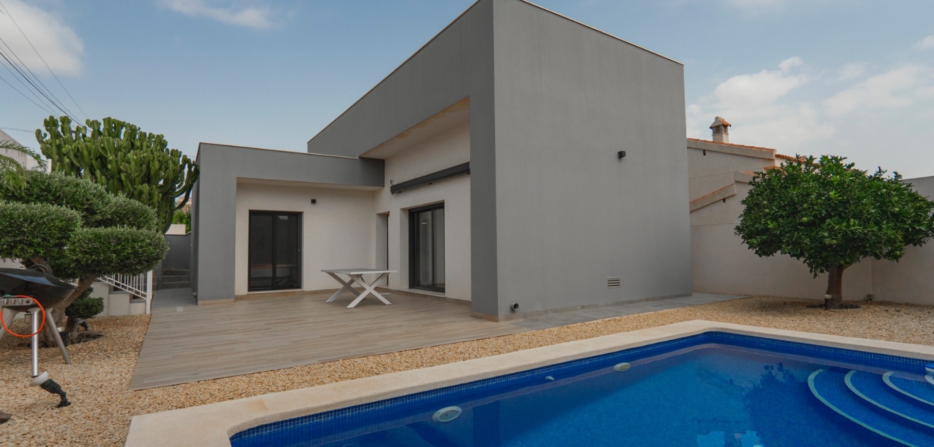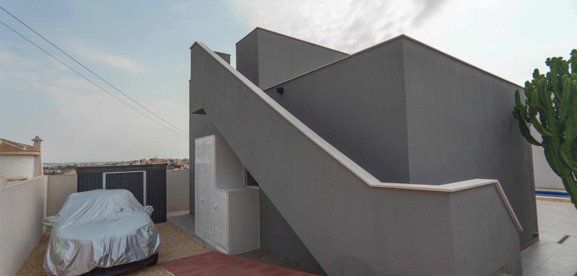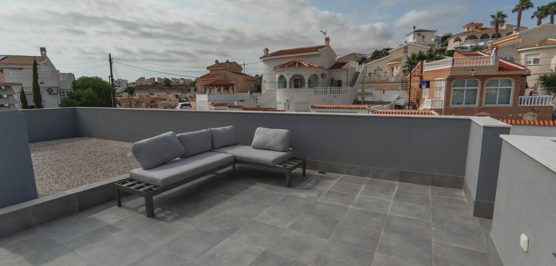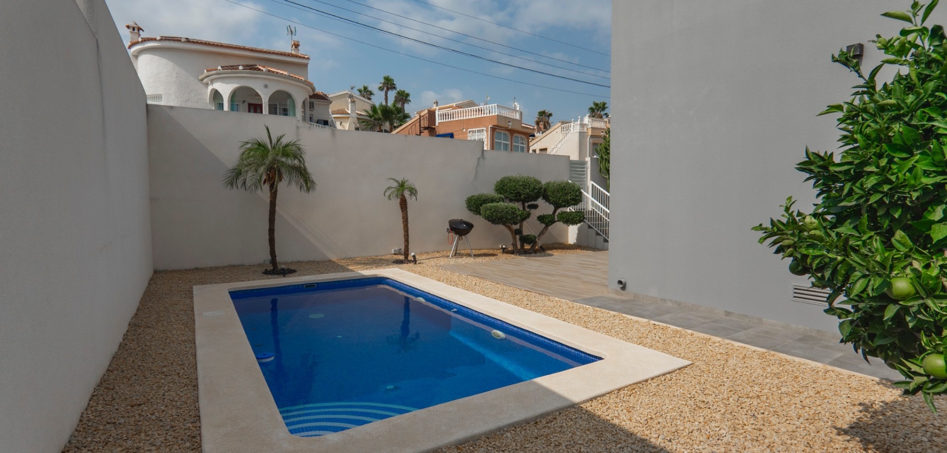 Discover comfort and style in this beautifully maintained 2-bedroom, 2-bathroom villa offering 76m² of living space on a low-maintenance private plot. Completed in 2018 and meticulously cared for, this single-level home is designed for effortless Mediterranean living. Property Overview This charming villa blends modern design with functional elegance. Bright interiors flow seamlessly into inviting outdoor spaces, including a private pool, multiple patios, and a rooftop solarium with sweeping views of the surrounding area and La Marquesa Golf Course. Whether as a full-time residence, a holiday getaway, or a smart investment, this property delivers convenience and lifestyle appeal in one of Costa Blanca’s most sought-after areas. Key Features Private pool and sun-drenched patios for relaxation and entertainingRooftop solarium with panoramic viewsOpen-plan living room and kitchen with modern finishesTwo comfortable bedrooms with built-in wardrobesTwo contemporary bathrooms with walk-in showersLow-maintenance garden and private parking on the plotMove-in ready, completed in 2018 and in excellent condition Designed for Relaxed Mediterranean Living Every detail of this villa is tailored to enjoy life under the Spanish sun. Whether cooling off in the pool, gathering with friends on the patio, or taking in the views from the rooftop solarium, this home offers a lifestyle that feels like a holiday every day. Prime Location: Ciudad Quesada, Rojales Restaurants, cafés, shops, and essential services all within easy reachActivities for all ages including golf, hiking, bowling, mini-golf, and a water parkJust 10 minutes by car to the beaches of Guardamar or TorreviejaWalking distance to La Marquesa Golf CourseLess than one hour’s drive to Alicante Airport A Superb Opportunity This villa is perfect for those seeking a modern, low-maintenance home in a lively community with year-round activity. Whether you are relocating, investing, or searching for a vacation retreat, Ciudad Quesada offers the perfect blend of convenience, lifestyle, and long-term value.
