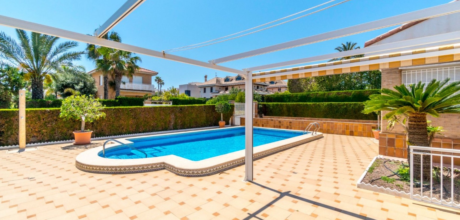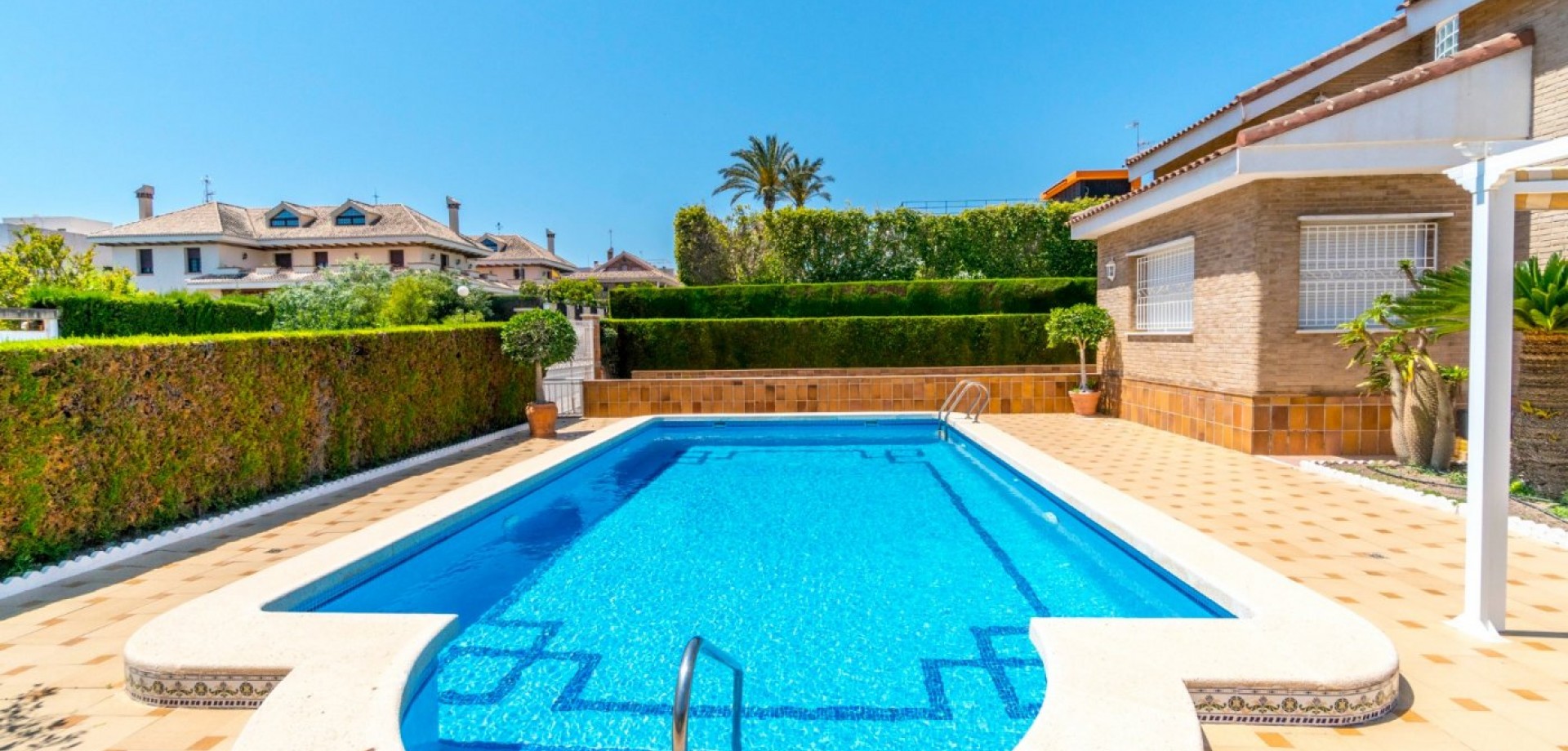 Casas & Bostad is pleased to present this exclusive villa located in Torrevieja, it is built on a 699 m2 plot, it has a wonderful private pool, large porch, barbecue area, natural gardens.~ ~ The house is Mediterranean style and is divided into two floors and has a constructed area of 462 m2, it was built in 1992. The house has 5 bedrooms and 3 bathrooms, living room, fireplace, separate kitchen, gallery, jacuzzi, cellar , terraces and ample underground parking. Built with high quality materials. The basement has 131m2.~ ~ Torrevieja is located approximately 45 minutes from Alicante airport. Direct connection with the Torrevieja bus station. The coldest months are January and February, with temperatures ranging between 12 and 16 degrees and the hottest July and August with temperatures ranging between 28 and 35º C. Autumn -from October to December- is a season very temperate with temperatures ranging between 21 and 27º C.~ ~ Torrevieja has a microclimate that differentiates it from the rest of the surrounding towns. The proximity of two saline lagoons makes the climatological factors favorable.~ Do not miss the opportunity and contact us!~ ~