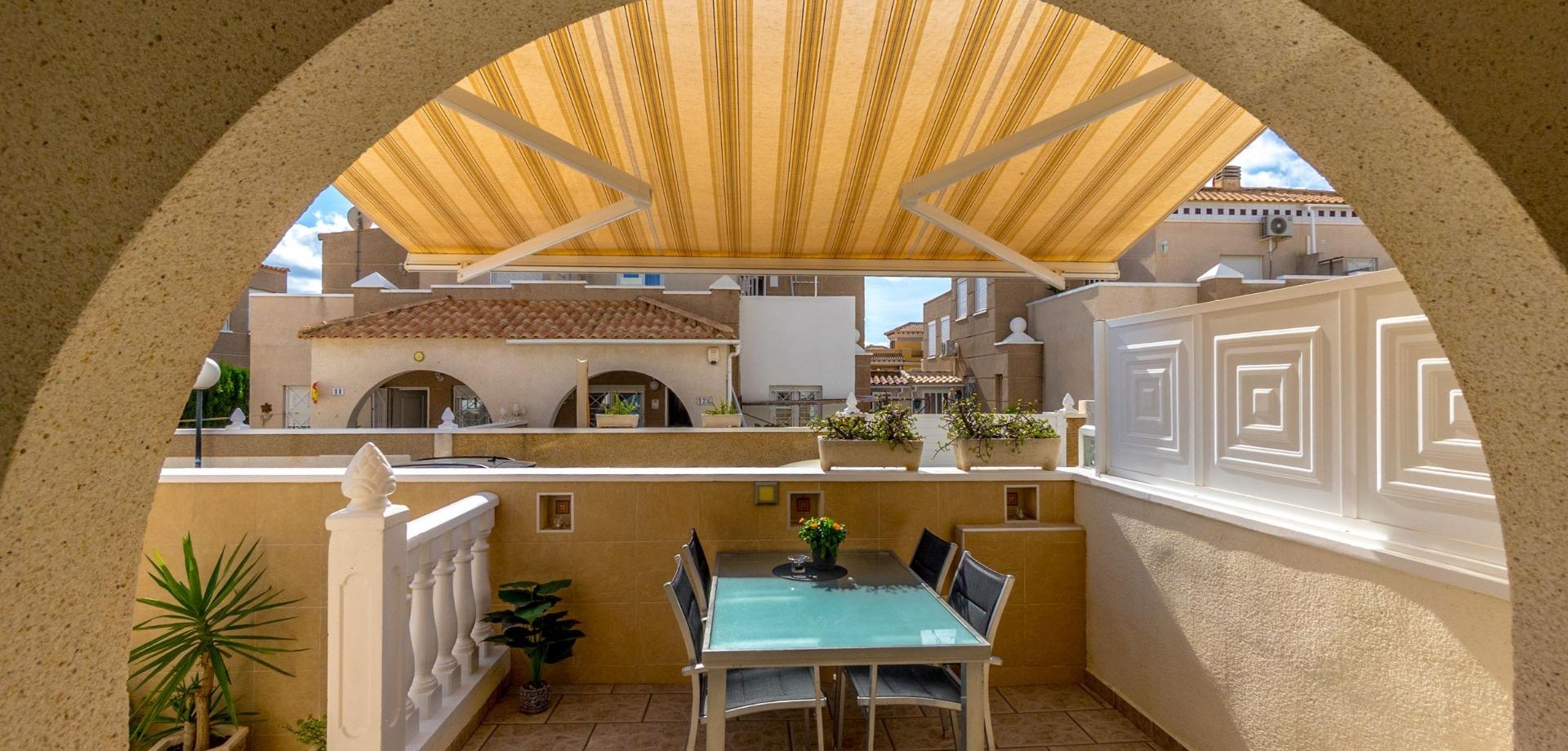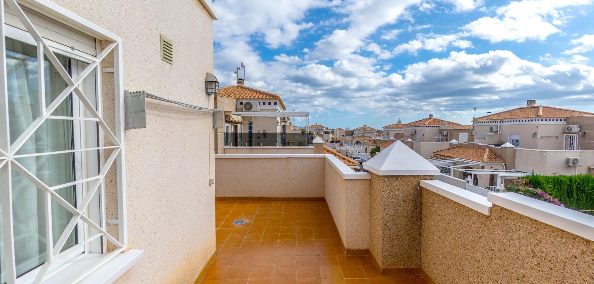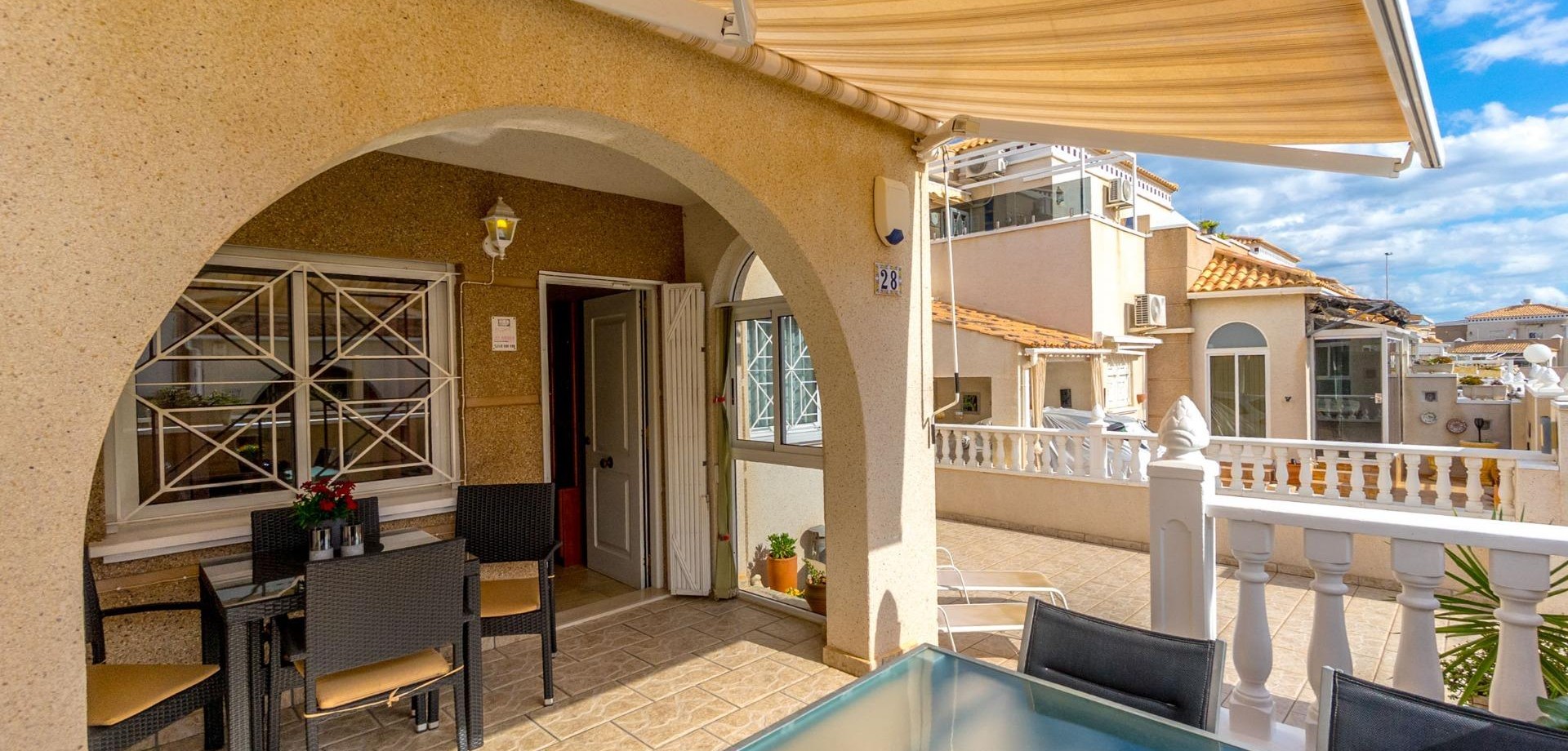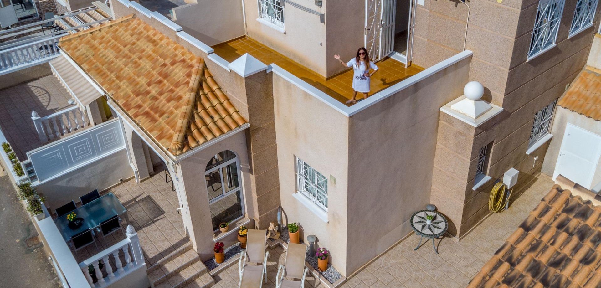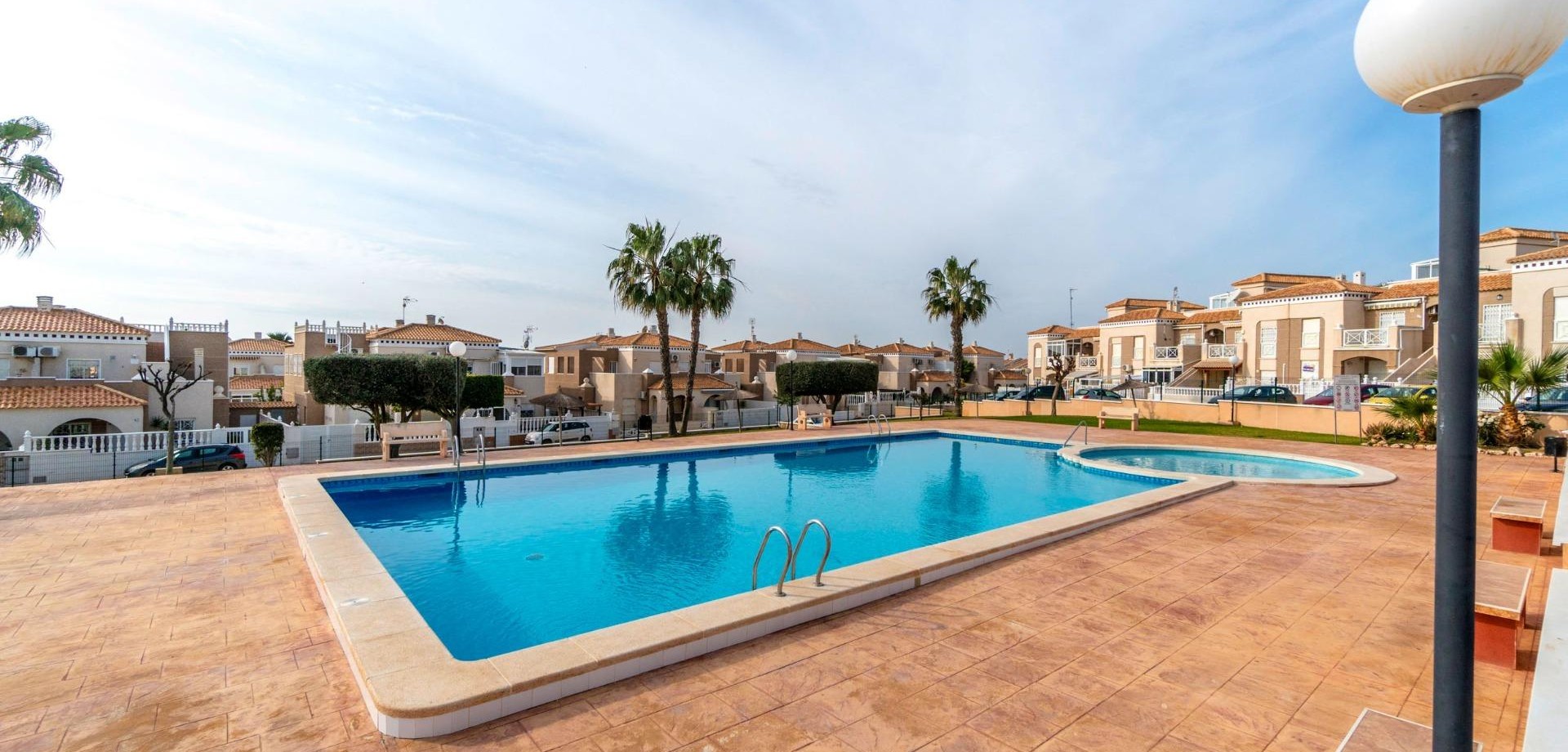 Attractive townhouse in the popular area Altos de la Bahía, Aguas Nuevas. just 1,7 km from La Mata beach. The property has four bedrooms and two bathrooms. 47 m2 terrace, and a 19 m2 solarium which faces south. The community features a beautiful swimming pool, ideal for relaxing on sunny days.~~Sold furnished!~~Walking distance to beach, shops and restaurants. A perfect holiday home or year-round residence.