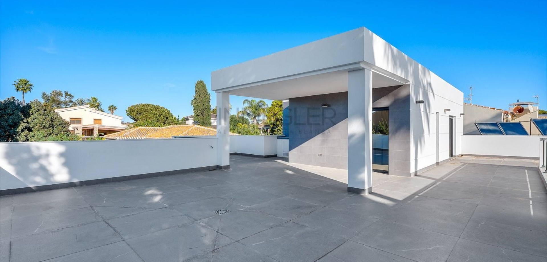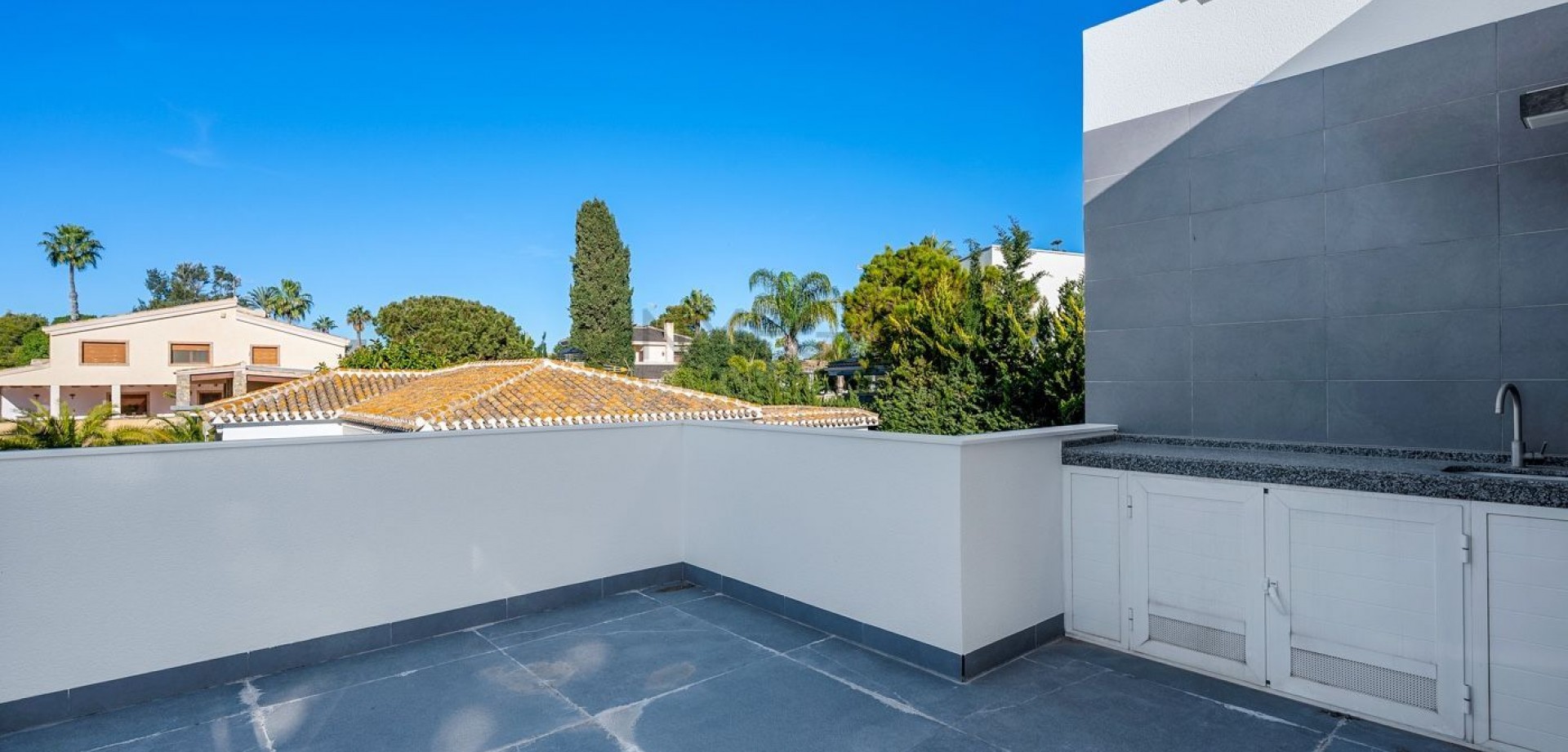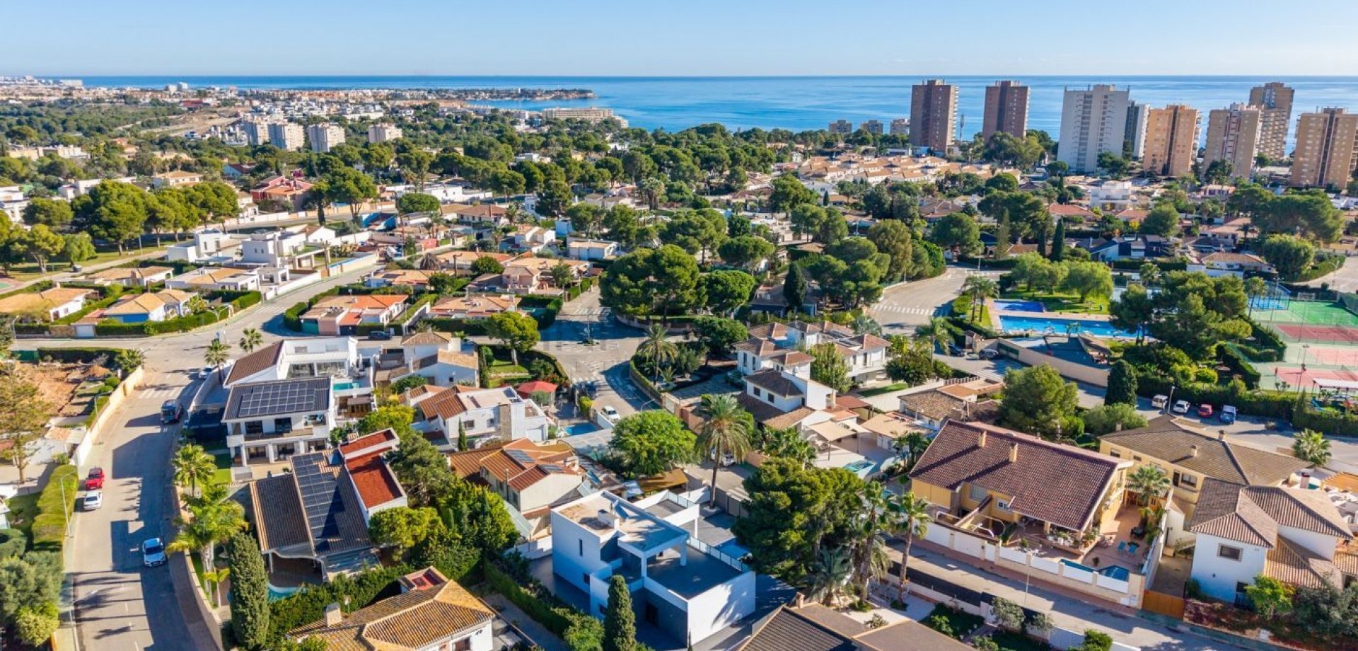 Detached Villa in Campoamor: 700 m2 Plot & Walking Distance to Beach~If you are looking for privacy, space, and one of the best locations on the coast, this villa in Dehesa de Campoamor is for you. A 235 m2 house on a 700 m2 plot, South/East facing, and just a 700-meter walk to the beach.~~What the house offers, point by point:~~Ground floor meant for living: Huge open-plan living room with an island kitchen, large windows, and lots of light. Down here, you have 3 bedrooms and 2 bathrooms (one is an en-suite with a walk-in wardrobe). Great if you prefer avoiding stairs daily.~~Private top floor: A very spacious bedroom with its own bathroom, walk-in wardrobe, and direct access to a solarium with open views. The terrace is already plumbed with a sink and ready for an outdoor kitchen or BBQ.~~Outdoors: Well-maintained garden, private pool, and plenty of space to enjoy the weather.~~Real quality: It’s not just about looks. The house has central heating (essential for year-round living), air conditioning, electric shutters, and marble floors.~~Campoamor is known for being green, quiet, and exclusive. You have supermarkets, restaurants, and the sea within walking distance.~~Dehesa de Campoamor is one of the most prestigious and green areas of Orihuela Costa, known for its pine forests, wide avenues, and exclusive residential atmosphere. The property is just a short walk from beautiful sandy beaches, crystal-clear waters, and the charming marina. The area also offers excellent services: restaurants, cafés, supermarkets, sports facilities, and several renowned golf courses within a short drive.~~This villa is an exceptional opportunity for those seeking a high-quality home in a privileged location, perfect for year-round living, holidays, or as a premium investment on the Costa Blanca.~~A solid home in a premium location. Shall we visit?