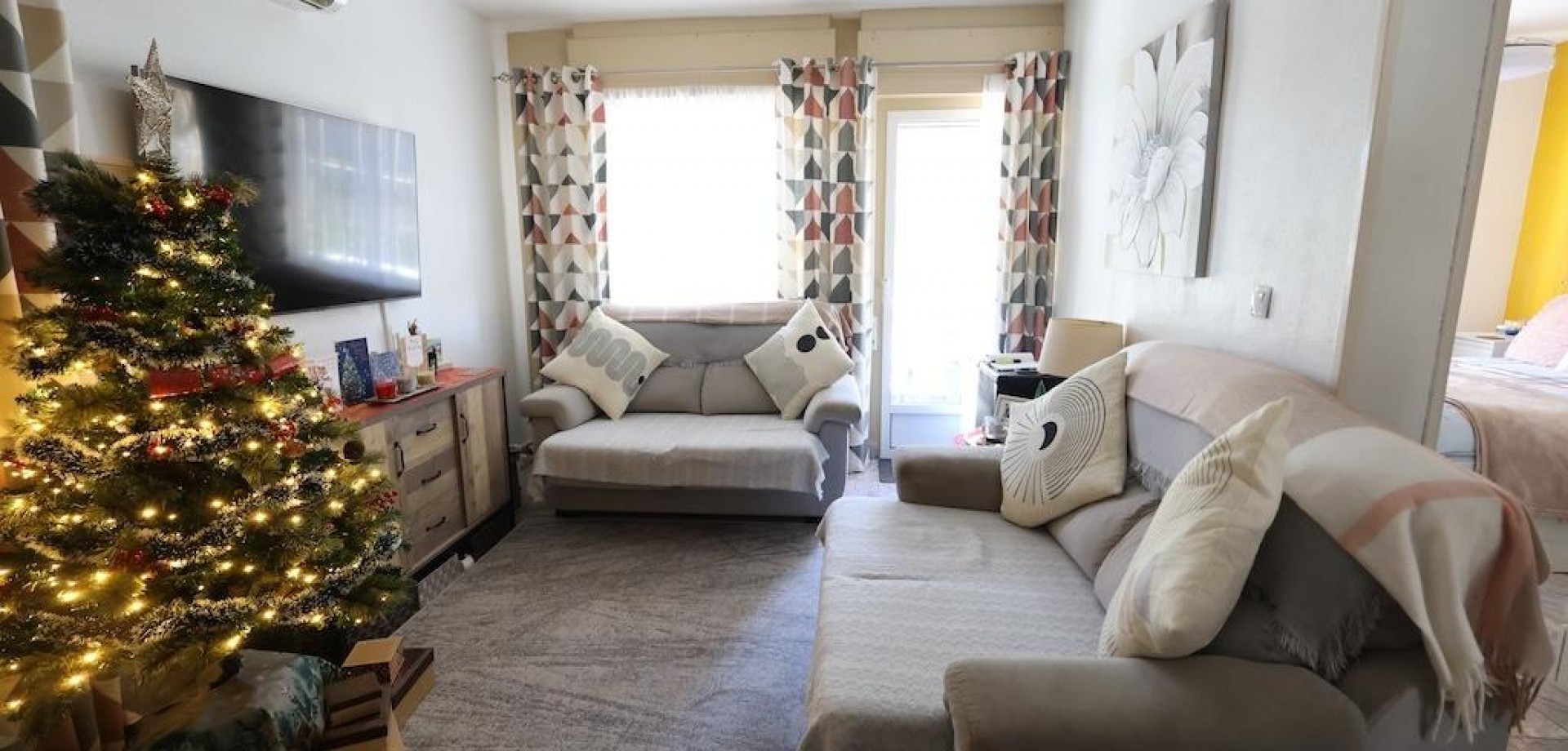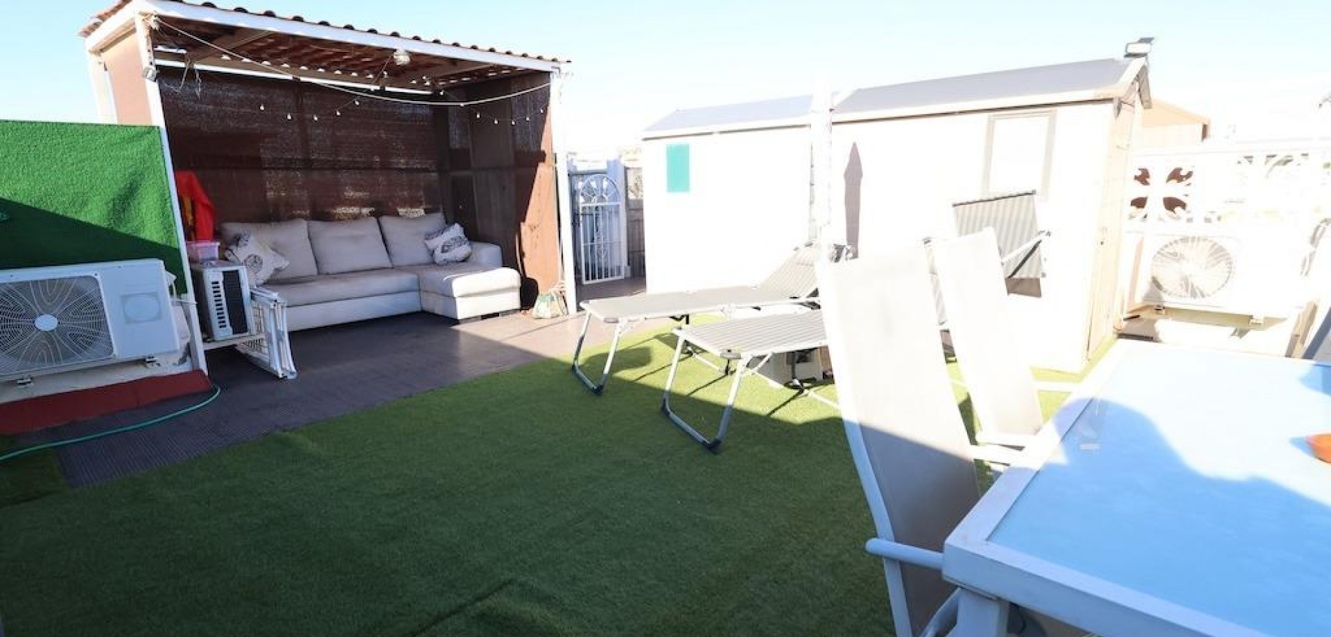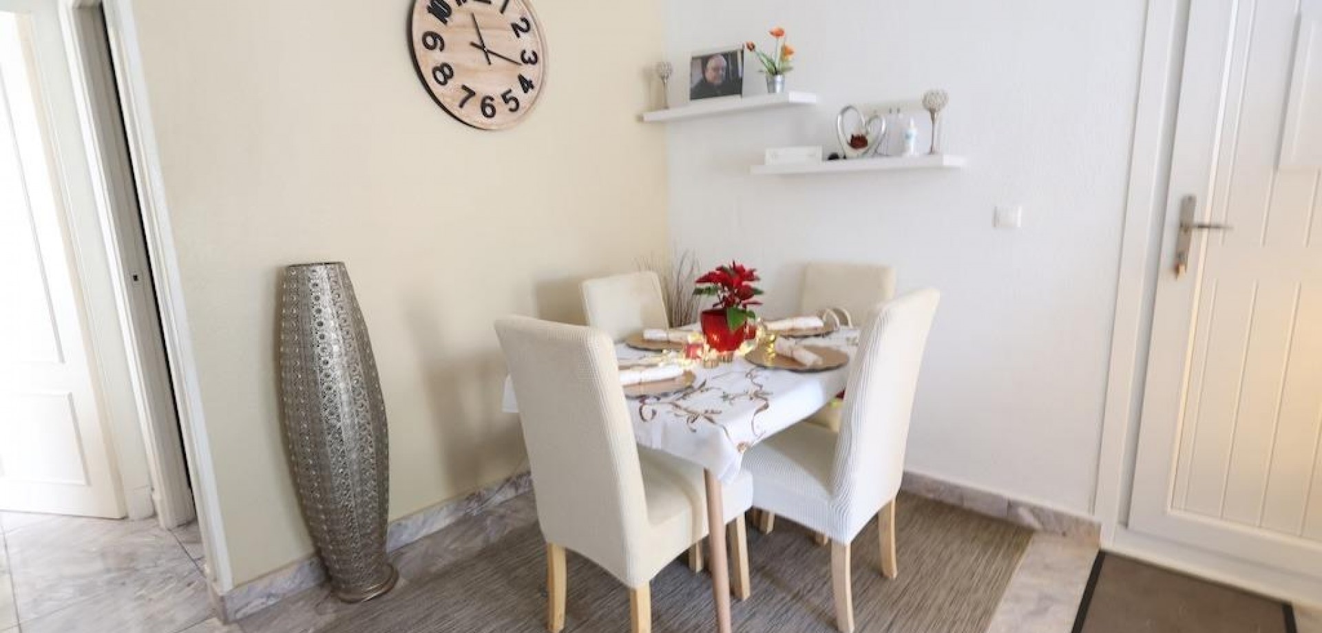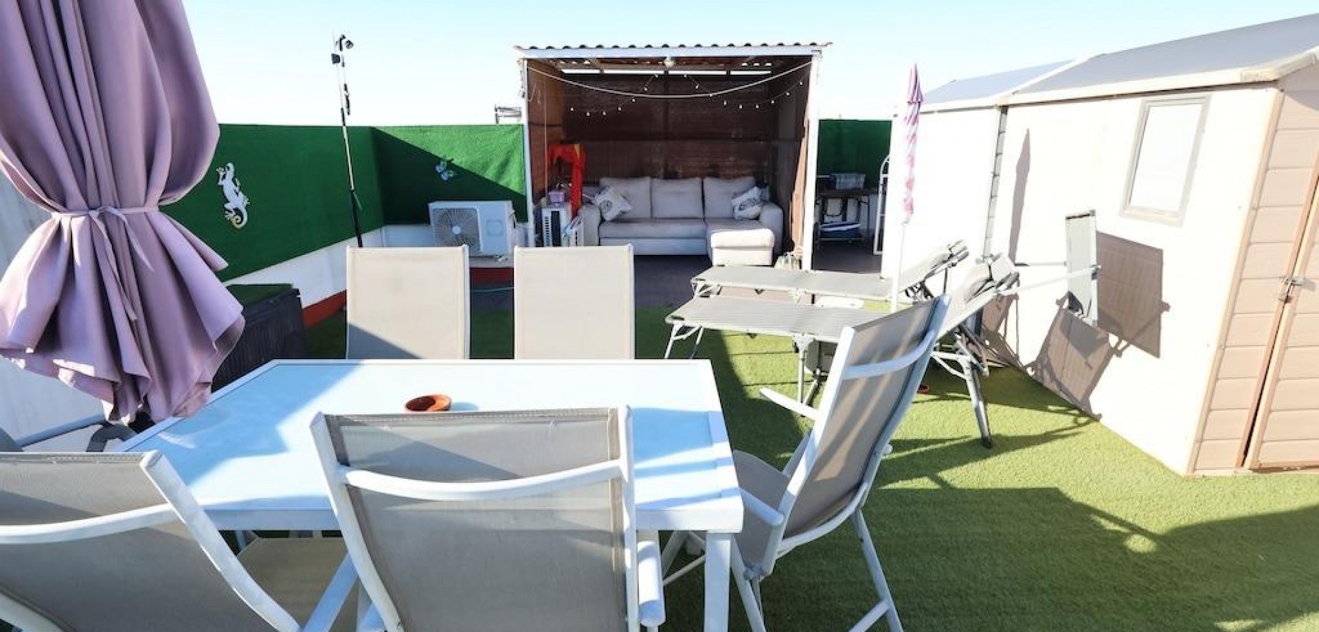 Paraje Natural I: First-floor bungalow with a private solarium overlooking the park. The property offers 62 m2 of living space featuring 3 bedrooms, a bathroom, an independent kitchen, a terrace, and a spacious 60 m2 solarium with a storage room. The home is sold semi-furnished and equipped with air conditioning. The residential complex includes a large community pool.