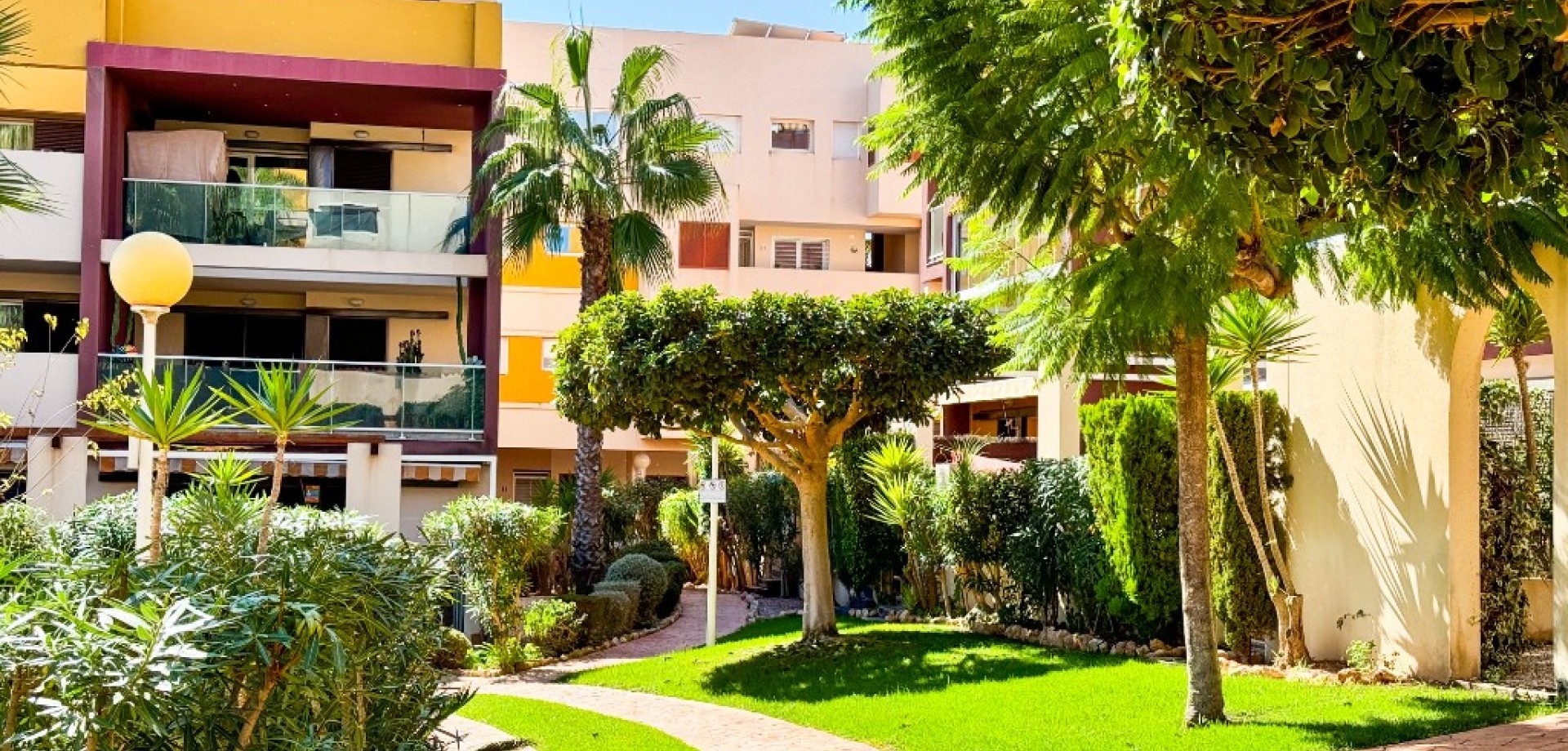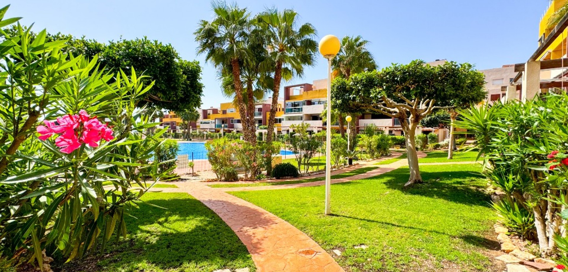 For sale amazing apartment in a gated community El Bosque, Playa Flamenca, Costa Blanca. We offer you for sale this unique property, which consists of 2 spacious bedrooms with built-in wardrobes, comfortable bathroom with walk-in shower, stylish living-dining area with cozy and fully equipped kitchen and of a big glazed terrace with beautiful views of community areas. El Bosque offers to its residents lovely communal swimming pool, surrounded by well-maintained tropical garden. The community is situated within a walking distance to the sea and all the amenities. There is a private parking place included into the price and also there is a storage room. Apartment will be sold fully furnished and with all white goods, and the conditions are more than perfect. Located in Orihuela Costa, in a privileged location, very close to everything, even on foot, such as public schools, town halls, shops, gym, doctor; The beach with its beautiful cove La Mosca is also just 10 minutes away on foot. The large Zenia Boulevard shopping center is close to the property. The house would be perfect for a permanent life or a fabulous holiday home.