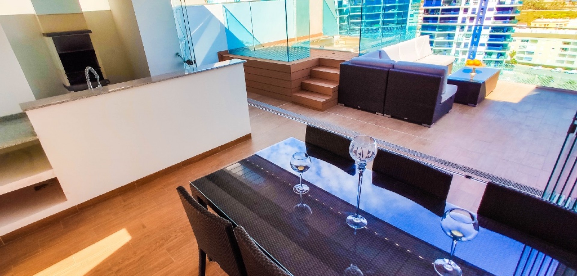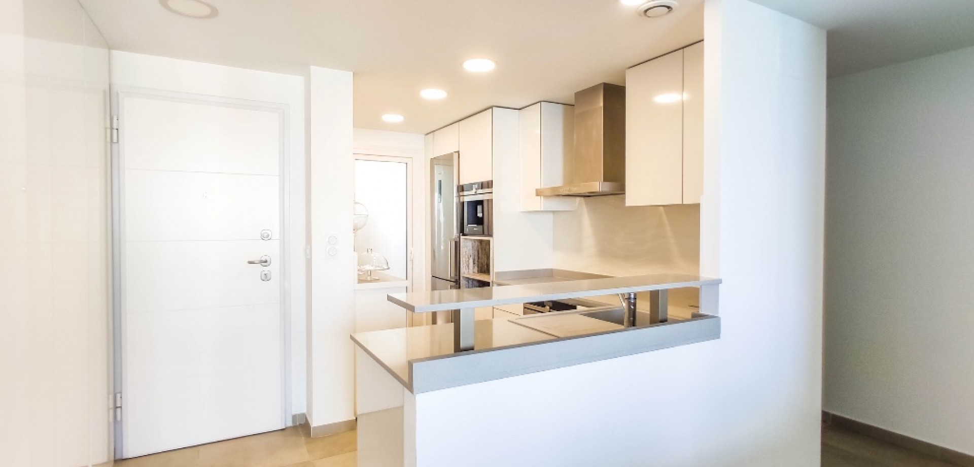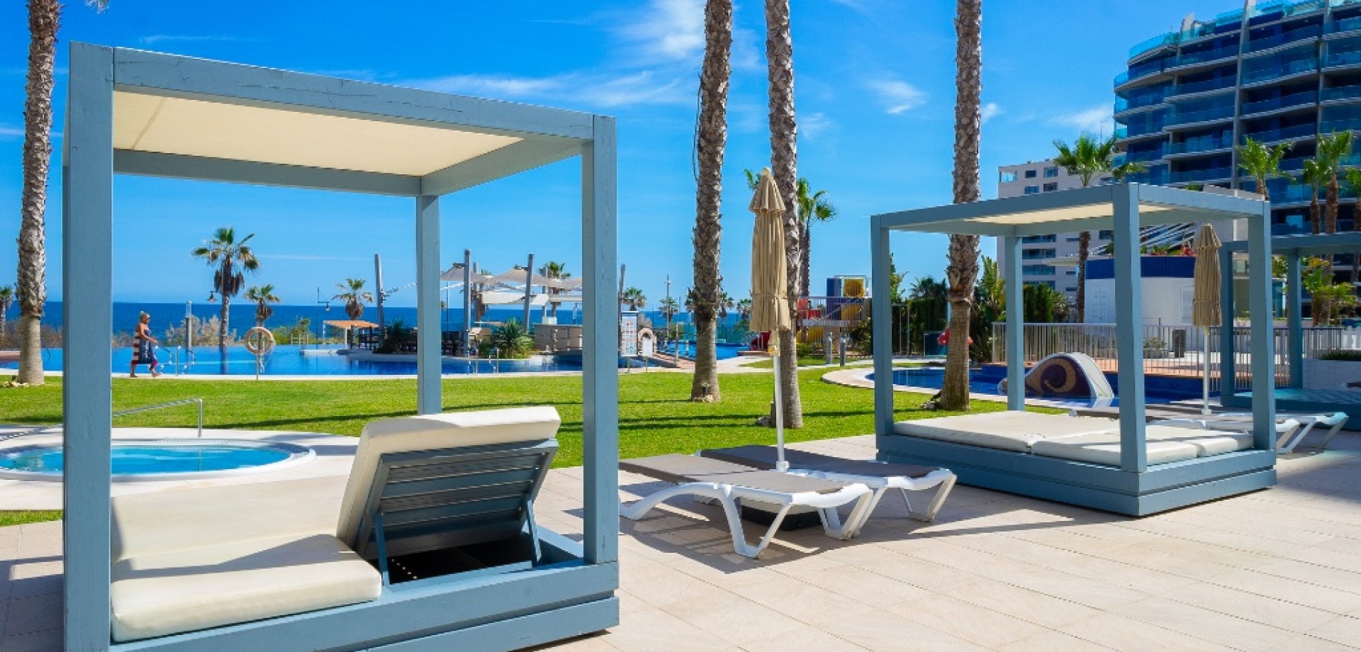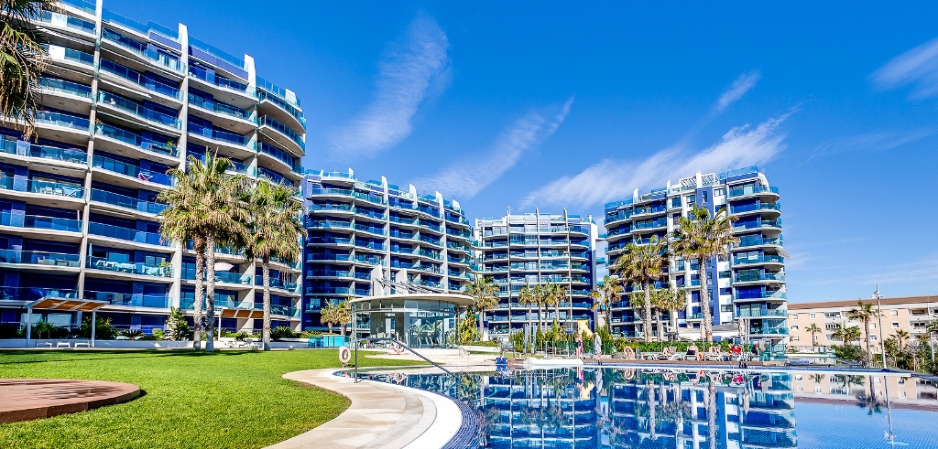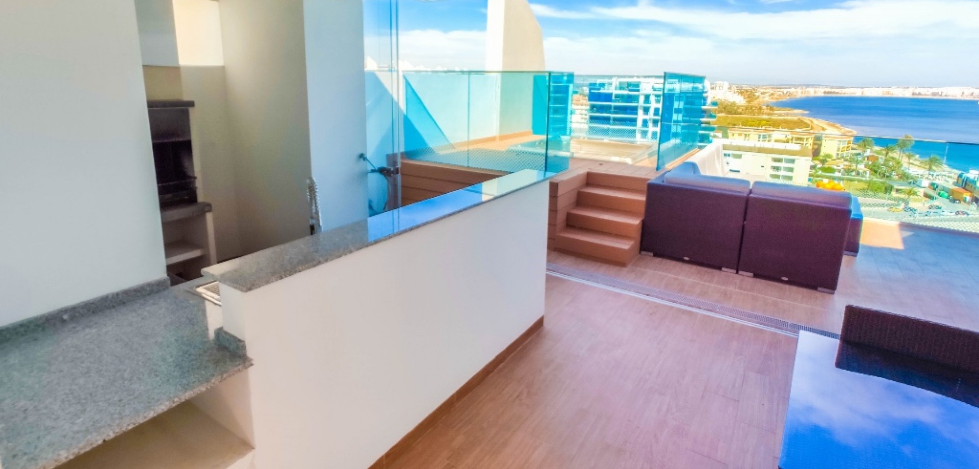 For sale an exceptional frontline apartment in first sea line in Punta Prima. Penthouse consists of 2 bedrooms, 2 bathroom, 9 floor apartment in the Sea Senses development in Punta Prima with spectacular all round panoramic sea views and only 50 meters from the Rocio del Mar beach. Hot and cold air conditioning. Lift access is available. The modern galley-style kitchen is fully equipped with dishwasher, oven, microwave, coffee machine and leads to a utility room equipped with washing machine and tumble drier.The spacious master bedroom benefits from wonderful sea views, large fitted wardrobes. The en-suite bathroom includes a large walk-in shower. Another bedroom benefits large fitted wardrobes.The family bathroom consists of a large walk in shower, lavatory and wash hand basin with separate storage unit.The ultra modern communal area includes three infinity pools - one heated for all year round use, four Jacuzzis, Finnish and Turkish saunas, gymnasium, Bali beds, pool bar and chill out area offering food and drinks, pool Jacuzzi's, children's play area with water fountains, children's paddling pool, play house, football and padel tennis courts.