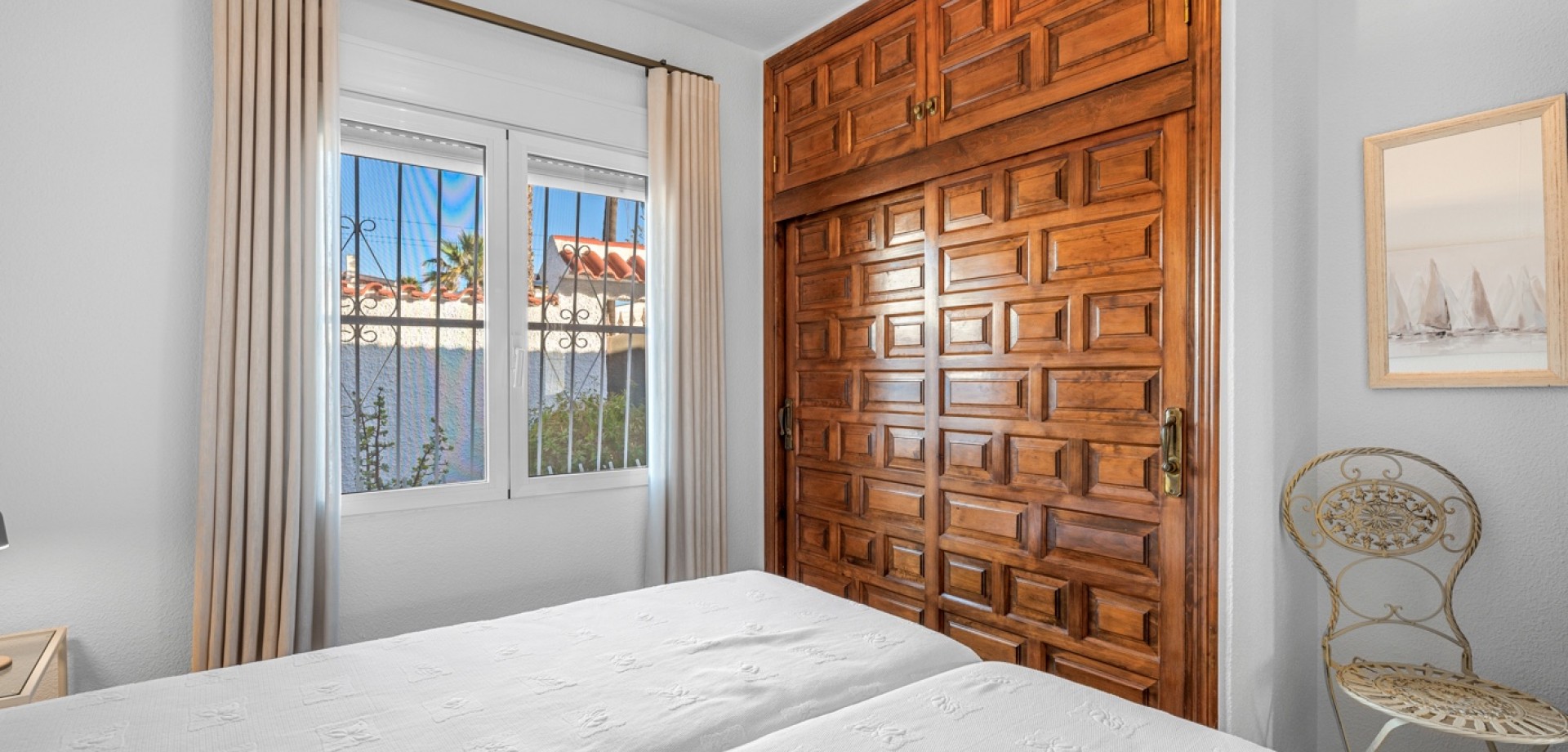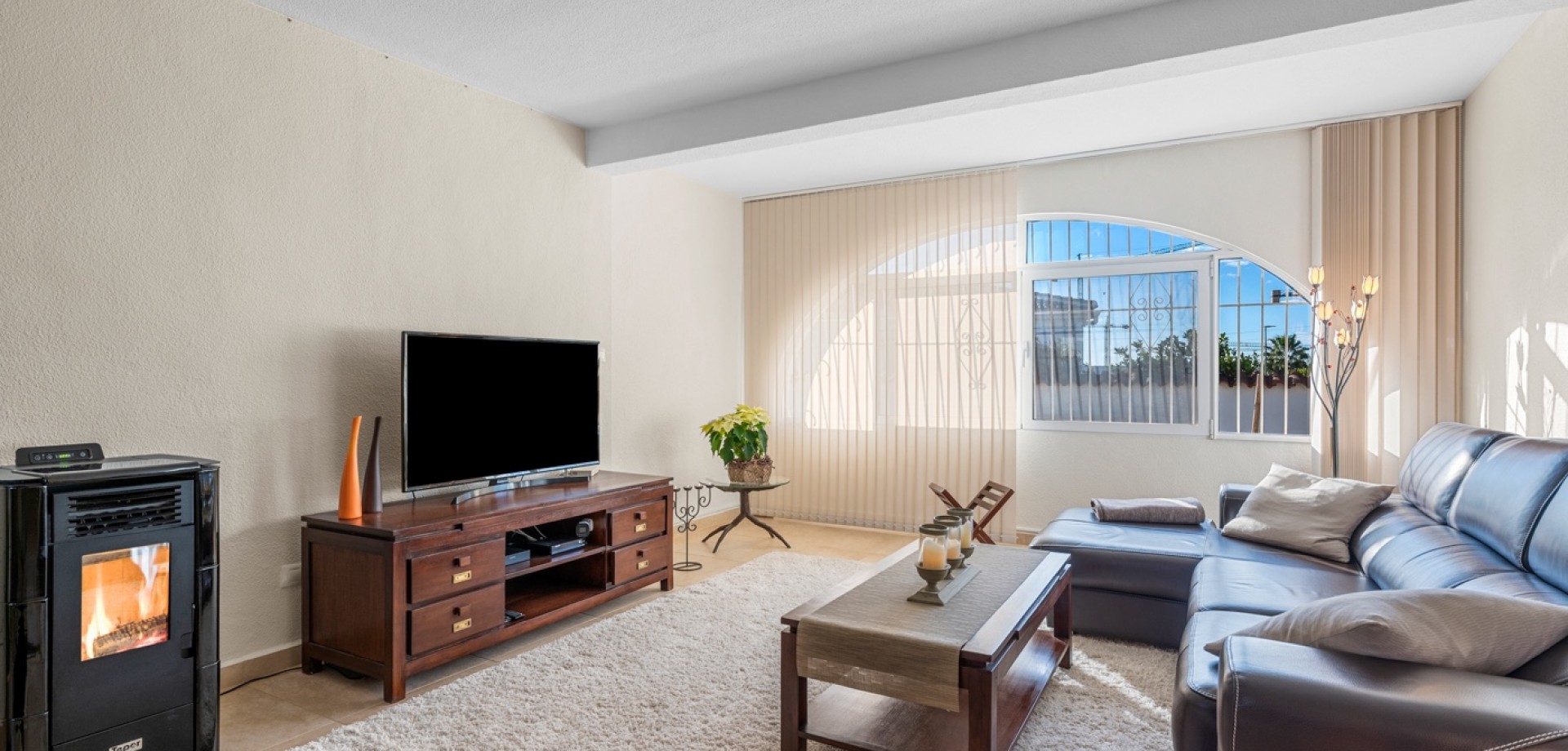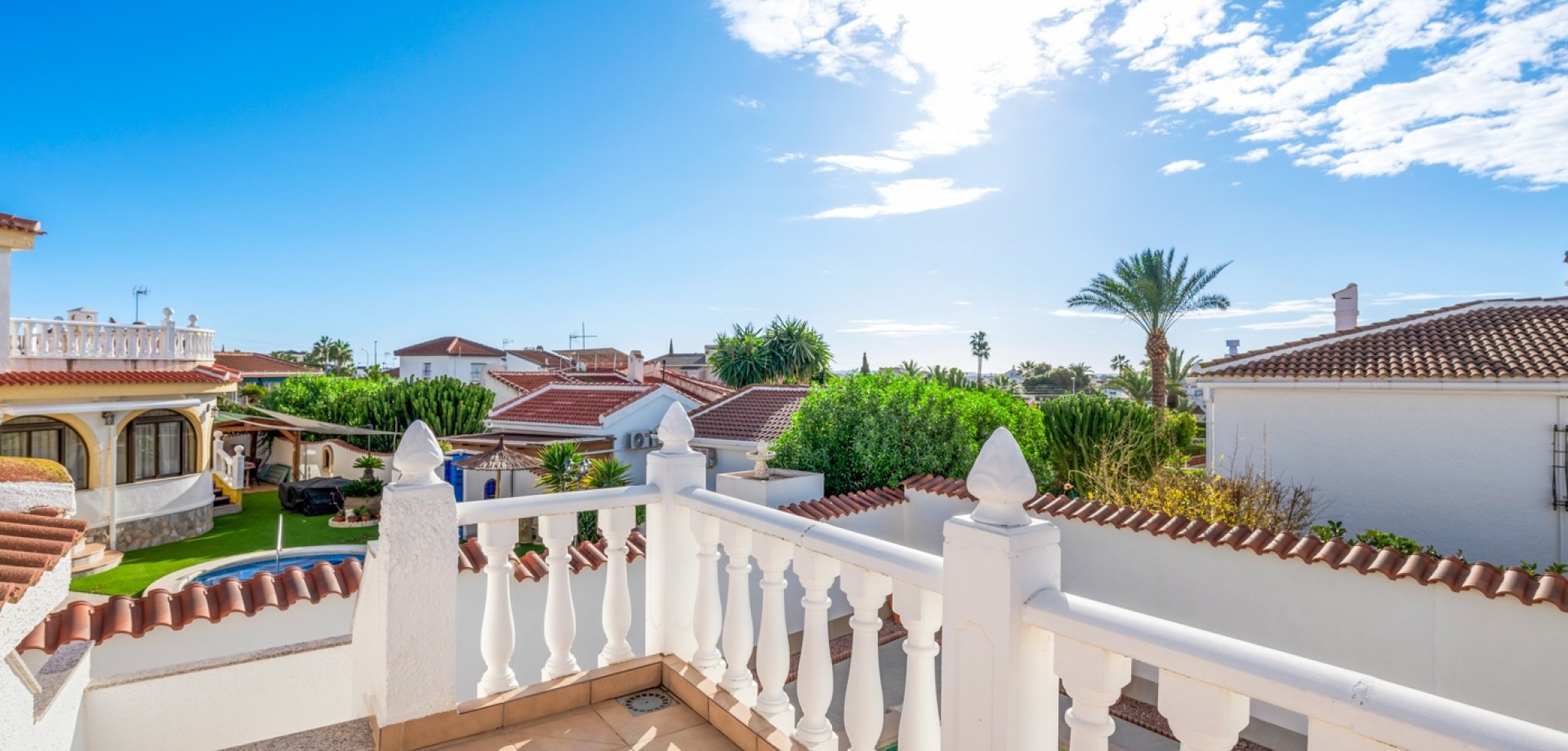 This beautiful detached villa is located in Ciudad Quesada, just a 5-minute walk from the town center, offering convenience while maintaining privacy and comfort. The property sits on a generous 500 m² plot and features 146 m² of built area. The house is distributed into three spacious bedrooms and two bathrooms, with the master bedroom benefiting from an en-suite bathroom. The villa boasts a bright and spacious living/dining area filled with natural light, creating a warm and welcoming atmosphere. The independent kitchen has direct access to the rear of the property, where you will find a private swimming pool, an outdoor kitchen, and access to the solarium—perfect for enjoying the Mediterranean lifestyle. From the side of the kitchen, there is also direct access to the interior garage and to a versatile space located beneath the garage. This area is ideal to be used as an additional bedroom, a social or entertainment area, or a cozy studio/home office. The exterior area surrounds the entire house and features fruit trees, providing a pleasant and private outdoor environment. The property has been recently renovated and is presented in perfect condition, ready to move into. This property is an excellent opportunity for both permanent living and investment in one of the most sought-after areas of Ciudad Quesada.
