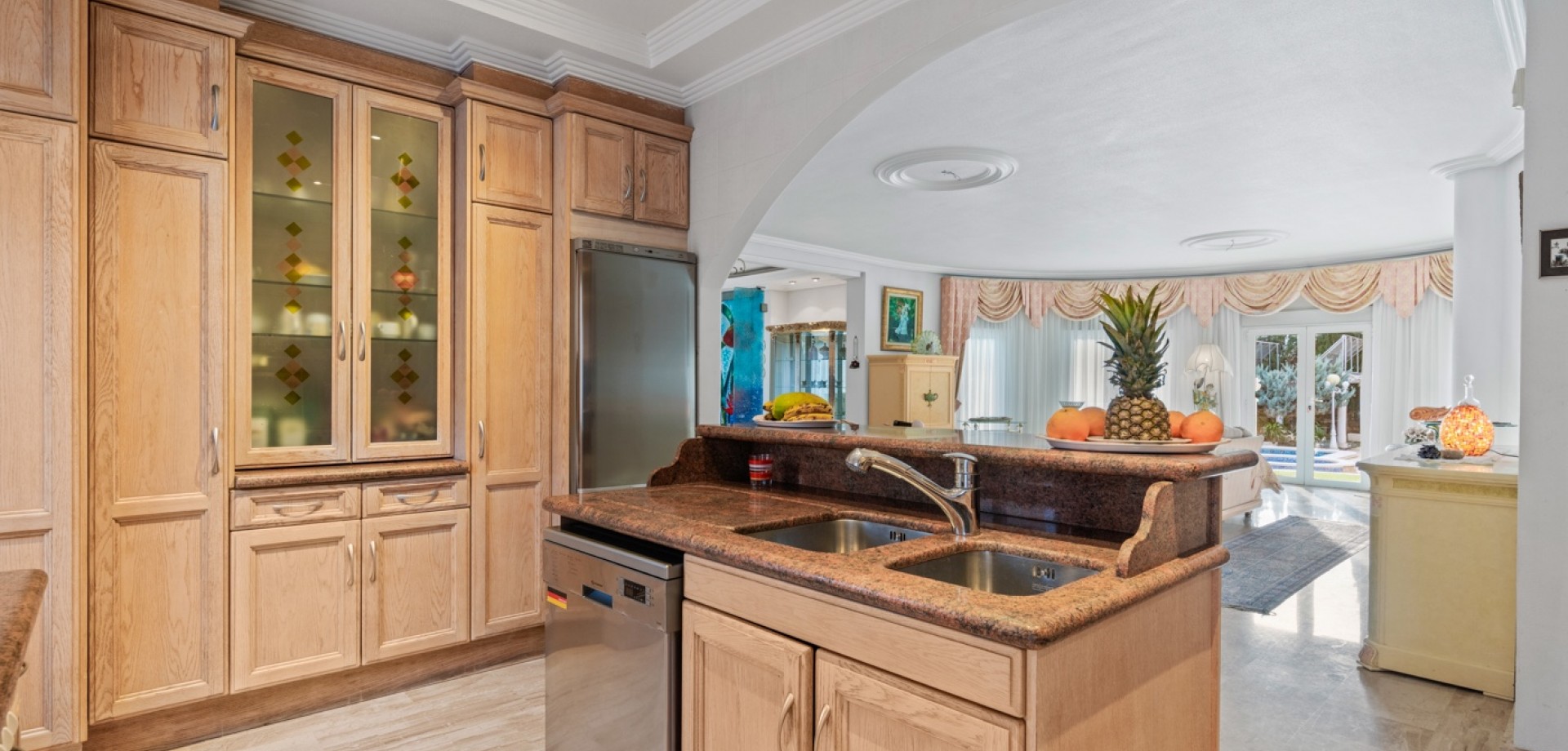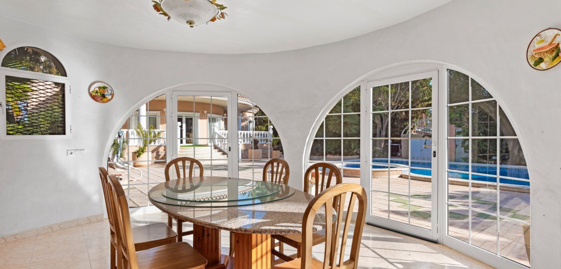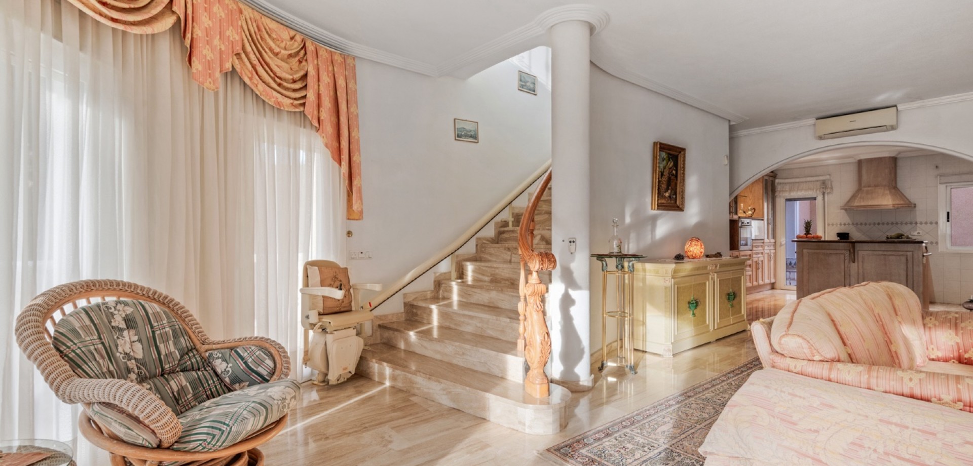 Incredible property located in one of the most exclusive areas of Ciudad Quesada, Doña Pepa, situated on a spacious 1,330 m² plot with 344 m² of living space. A uniquely designed and exclusive home, conceived for maximum comfort, privacy, and elegance. The house is distributed over three floors. On the lower floor, there is a temperature-controlled wine cellar, perfect for wine lovers, as well as the house's utility room. The main floor welcomes you with a guest toilet, followed by a spacious and bright living-dining room, specially designed and connected to an open-plan kitchen with direct access to the outside. The living room is surrounded by large windows that provide abundant natural light throughout the day. Also on this floor are two bedrooms and a full bathroom. From the living room, there is direct access to the outdoor area, where the swimming pool and outdoor kitchen are located. On the upper floor is a spectacular master suite, which features a bathtub and private shower, as well as access to two separate terraces. On this floor, we also find two additional bedrooms, a full bathroom, and a shared terrace. The exterior of the property is one of its greatest attractions: it features a fully equipped, enclosed outdoor kitchen, ready for year-round use, as well as a large swimming pool, ideal for family and social gatherings. The plot also includes a closed garage, additional parking space, and landscaped gardens that completely surround the house. The house has underfloor heating throughout, guaranteeing a high level of thermal comfort year-round. The property enjoys great privacy, thanks to its tall shrubbery, and is located in a quiet, well-connected area, very close to the prestigious Norwegian private school, making it an ideal option both as a permanent family residence and as a high-end investment. An exceptional home that combines design, spaciousness, and exclusivity in a privileged setting.