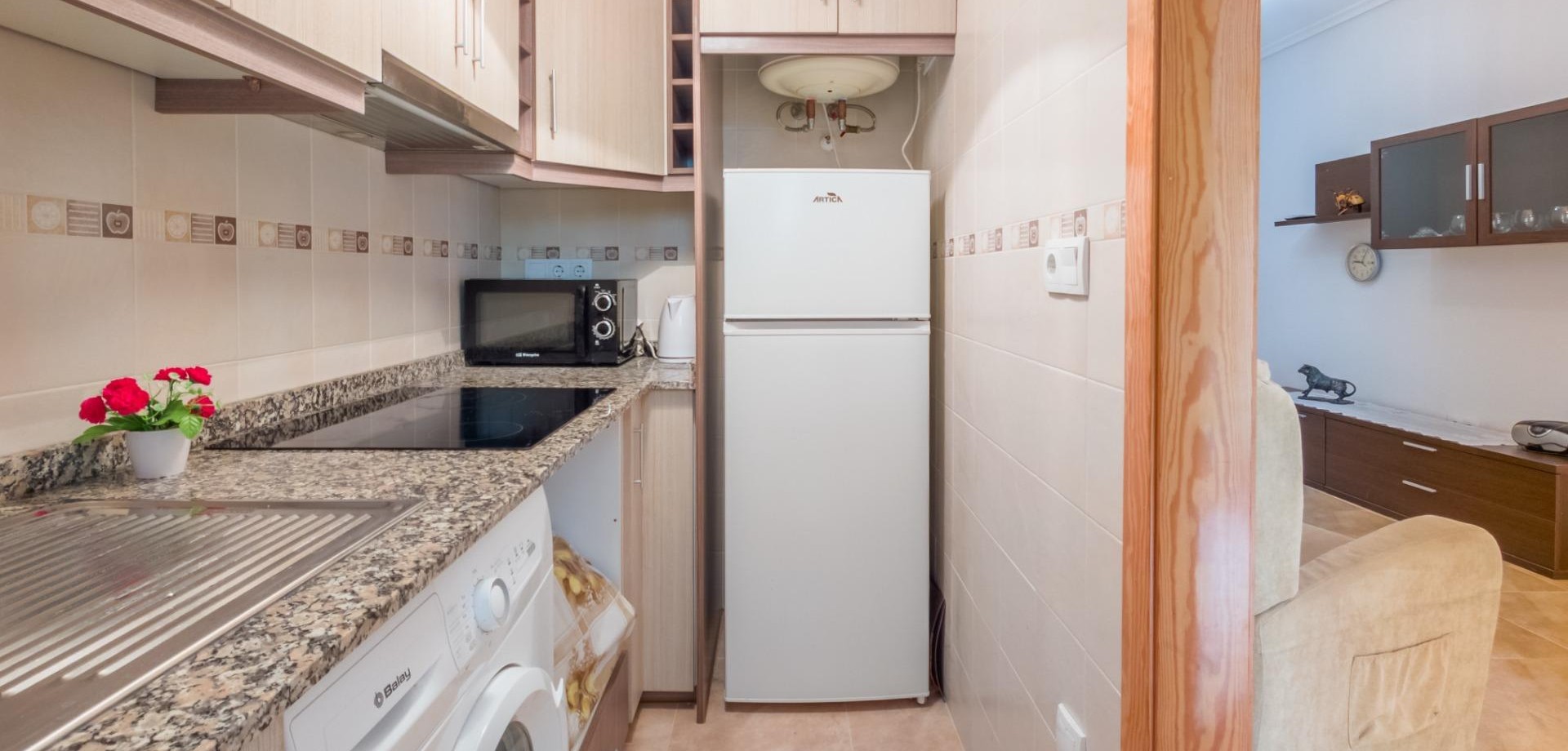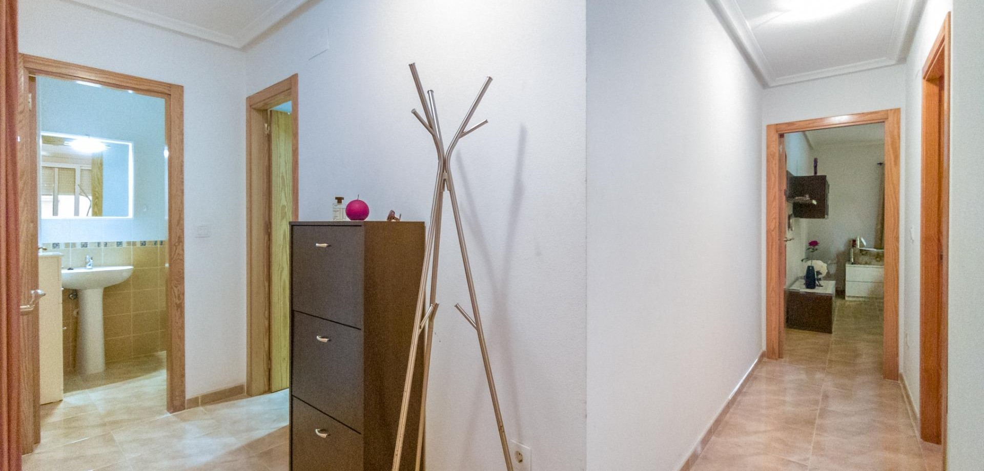 Introducing this cozy apartment in Torrevieja, located in the sought-after Acequión neighborhood—just 100 meters from Los Náufragos and Acequión beaches.~~Torrevieja is a vibrant coastal city on Spain’s Costa Blanca, renowned for its year-round sunshine, stunning beaches, and lively yet relaxed Mediterranean lifestyle.~~The apartment is situated on the first floor of a secure, gated residential complex and enjoys an excellent south-facing orientation, maximizing natural light throughout the day.~~Its layout is both practical and comfortable: a spacious, bright living room flows seamlessly into the dining area, with direct access to a sunny south-facing terrace. The terrace features a cozy outdoor seating area with table and chairs—perfect for enjoying warm mornings, afternoon sun, and pleasant views of the surroundings.~~It includes two move-in-ready bedrooms, each fitted with built-in wardrobes and fully furnished, along with two modern, fully equipped bathrooms designed for comfort and convenience.~~Located in a central and well-connected area of Torrevieja, everything you need is within walking distance:~~Supermarkets, pharmacies, and medical centers (including the modern Torrevieja University Hospital)~Schools and institutes for all age groups~The scenic Parque de las Naciones and the seaside promenade—ideal for family strolls or morning jogs~The Habaneras Shopping Centre, featuring shops, cinemas, restaurants, and entertainment—all just a few minutes’ walk away~Torrevieja is more than a holiday destination—it’s a thriving city for year-round living. With ongoing investments in infrastructure—including new schools, sports complexes, residential developments, and public services—it continues to grow while maintaining its charm.~~Thanks to its mild climate, beautiful coastline, and international community, Torrevieja offers an exceptional quality of life. This apartment is an ideal choice for permanent residence, retirement, or a smart investment in a high-demand rental market.