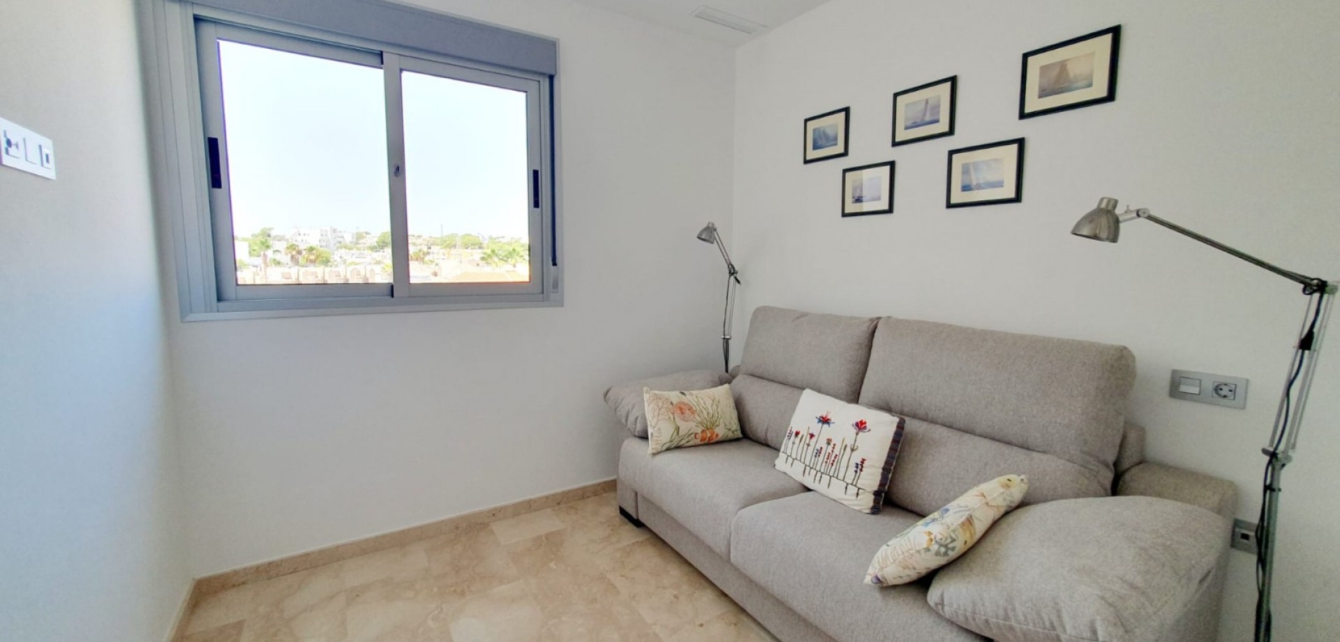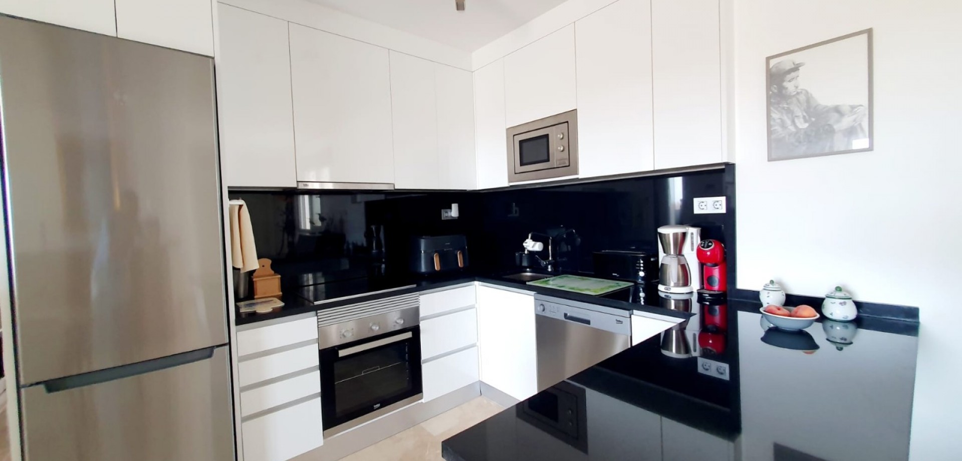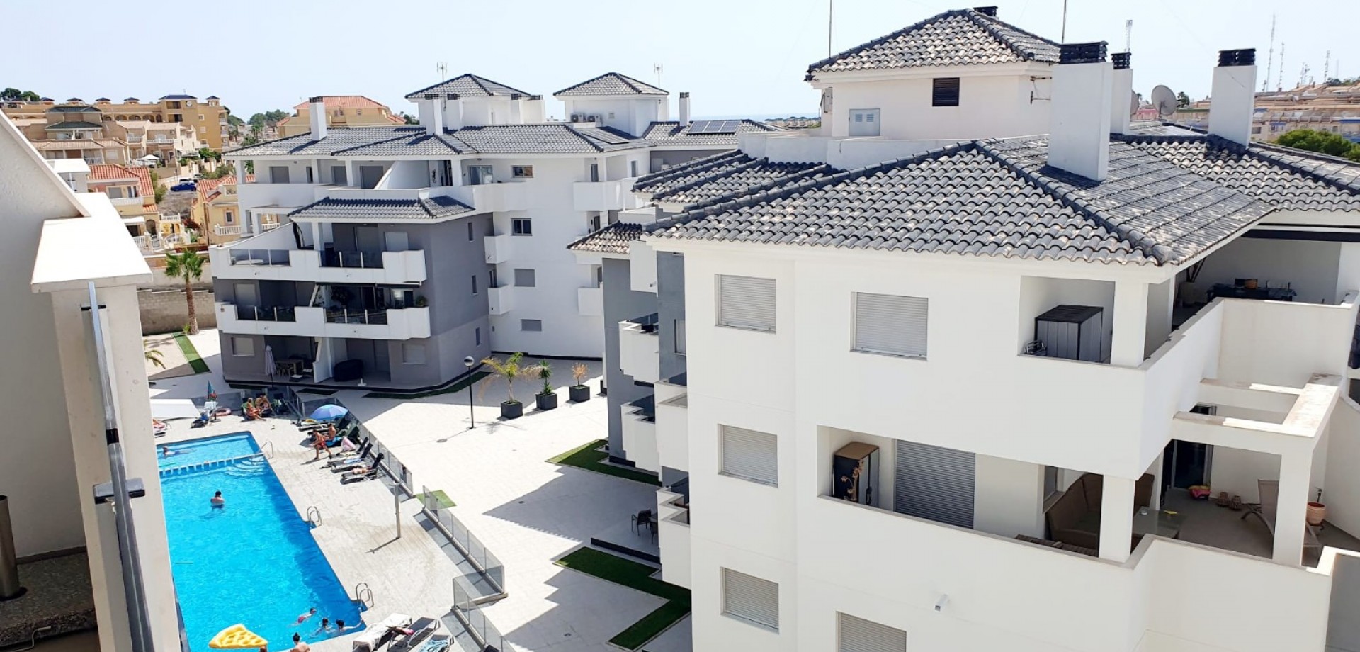 Are you looking for a 3-bedroom apartment in Orihuela Costa? We have just what you need! Located in Villamartín-Las Filipinas, we are pleased to present this second-floor apartment with lift access. The property comprises 3 bedrooms, 2 bathrooms and 2 terraces. One of them has a surface area of 14m2 and faces south, allowing you to enjoy the sun all day long, all year round. And if you look closely, you can even see the sea! This bright apartment with central air conditioning is sold unfurnished. However, the fitted kitchen and its appliances will remain in the apartment. The sale price includes an underground parking space with lift access. Located in a gated community with a swimming pool, jacuzzi, children's play area and pétanque court, the apartment is only 10 minutes from the beaches. Would you like to find out more? Please don't hesitate to contact us to arrange a viewing!