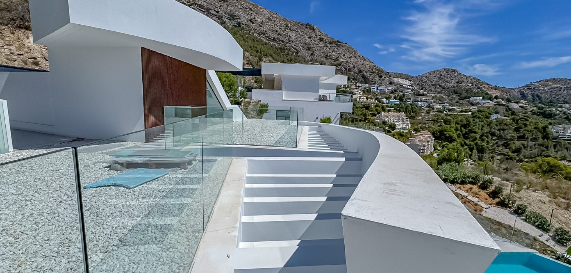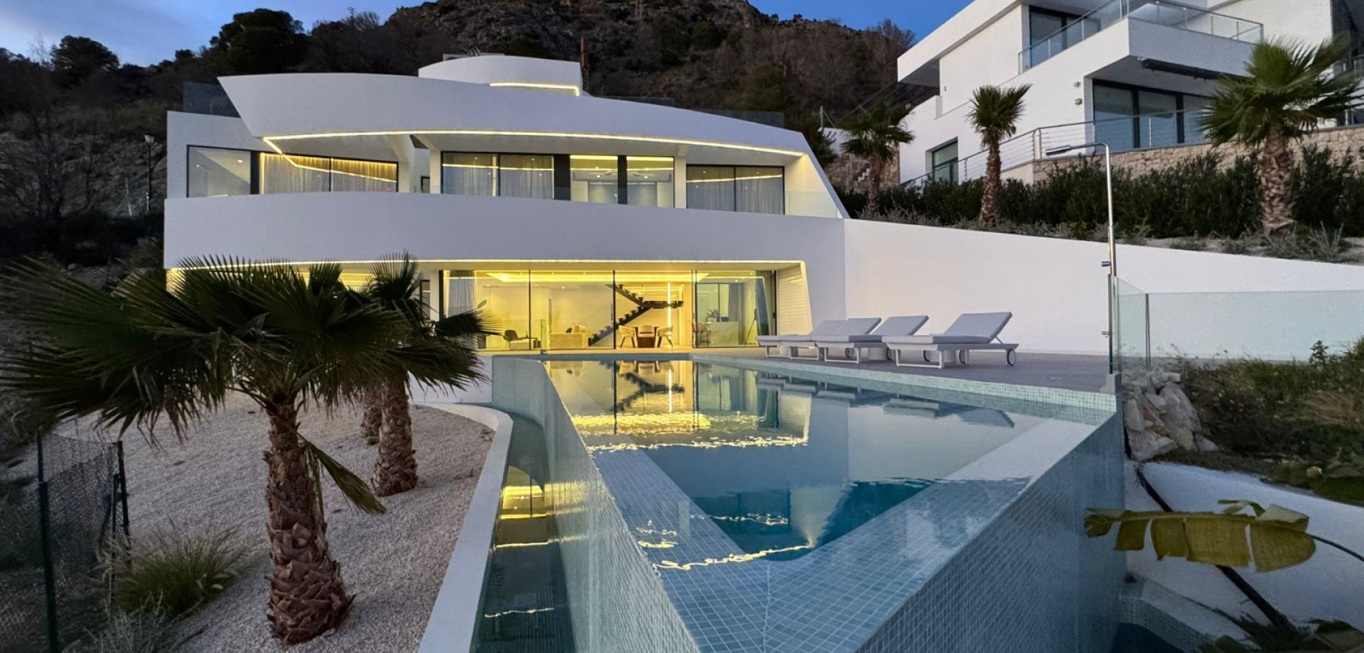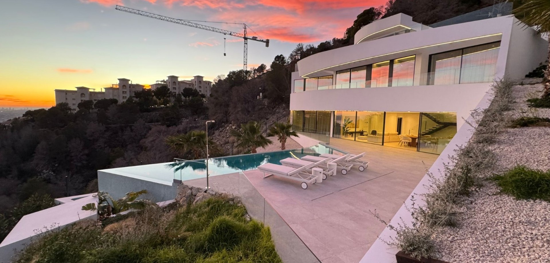 Discover this spectacular luxury villa located in the exclusive Altea Hills Resort, one of the most prestigious residential areas on the Costa Blanca. With 24/7 security, a 5-star hotel, spa, and tennis club, Altea Hills offers privacy, comfort, and an exceptional lifestyle. This key-ready villa is ready to move into and is fully furnished, including high-end furniture and all kitchen appliances. An Architectural Masterpiece with Panoramic Sea Views With 412 m² built, this elegant villa is distributed over three carefully designed levels, maximizing space, comfort, and functionality. Built with top-quality materials, the property offers absolute privacy and breathtaking panoramic views of the Mediterranean Sea. Main Features 4 spacious bedrooms with en-suite bathrooms 4 modern bathrooms with premium finishes Large built-in wardrobes in all bedrooms Unique architectural design that enhances natural light, sea views, and a sense of security Interior Highlights Double-height ceilings that create a bright, open, and luxurious living space Seamless connection between living, dining, and common areas, ideal for everyday living and entertaining Elegant and tranquil bedrooms, all offering privacy and stunning sea views Equipment & Comfort Underfloor heating in all rooms Air conditioning with Air-Zone system Fully equipped luxury kitchen with high-end appliances Private lift connecting all floors Laundry room Outdoor Living Private swimming pool 118 m² terrace area surrounding the pool, perfect for sunbathing and relaxation Private terraces for each bedroom Landscaped garden Private parking for 2 cars Exclusive Lifestyle in Altea Hills Residents of Altea Hills enjoy one of the most exclusive environments on the Costa Blanca, close to: The sea and beaches Altea town and marina High-quality services Private international schools This villa is the perfect choice for those seeking luxury, privacy, and comfort in an unbeatable Mediterranean setting. Are you ready to visit this extraordinary home? Contact our team today for more information or to arrange a private viewing.