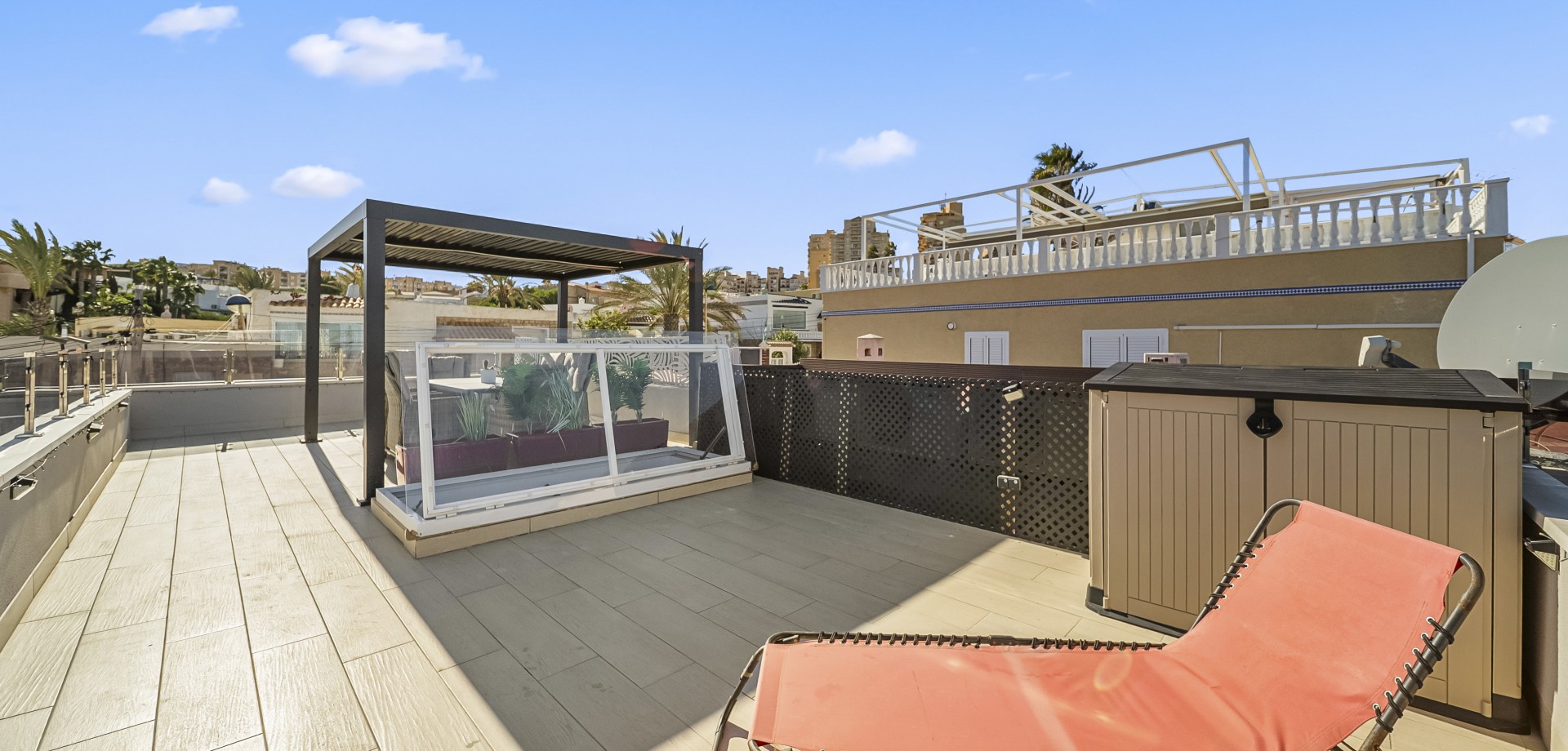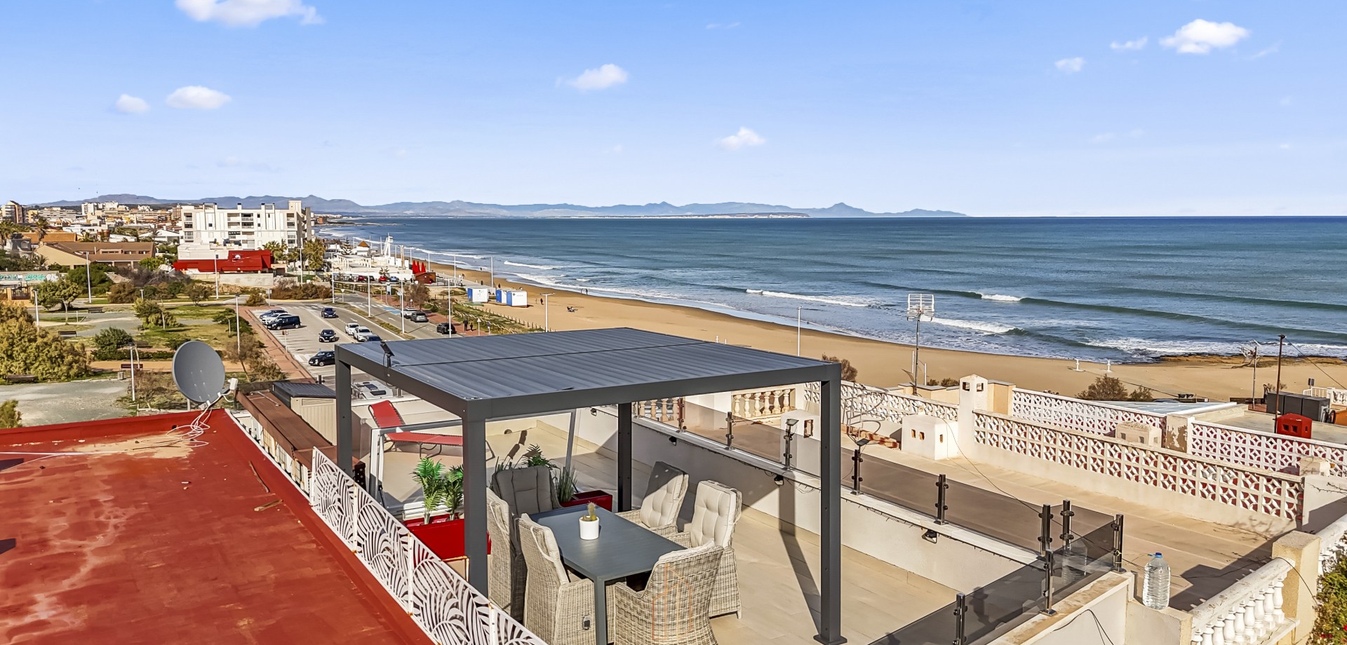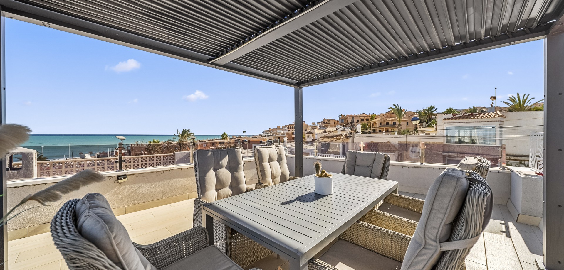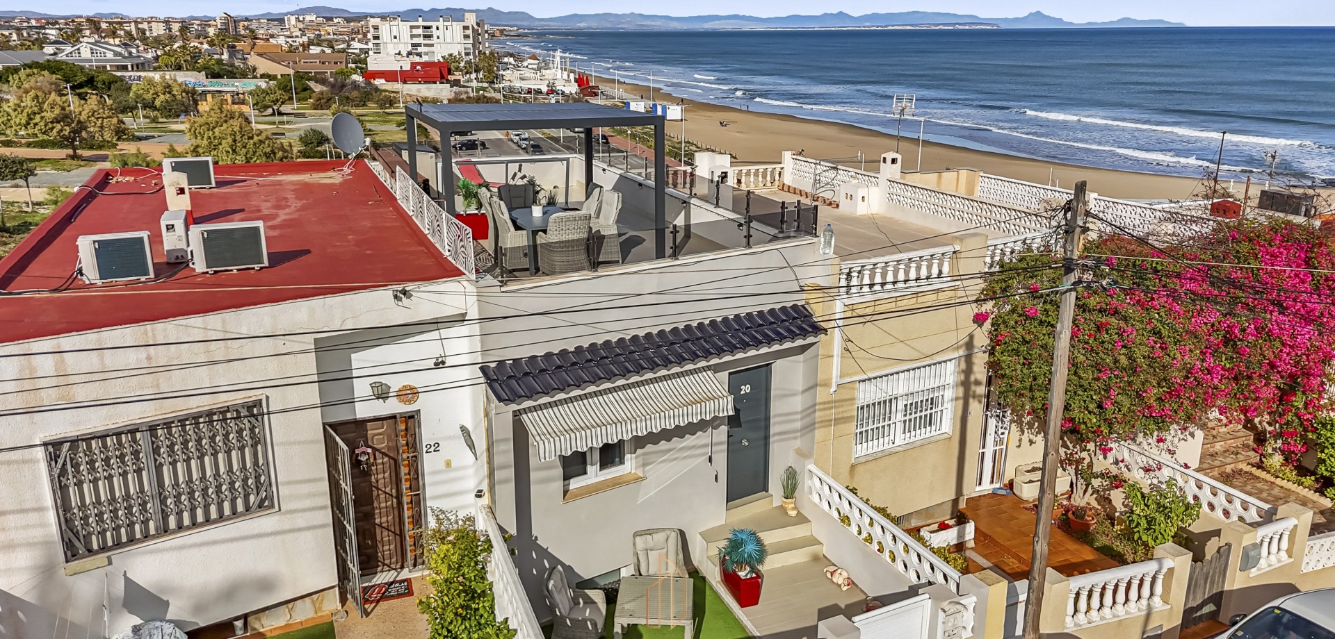 Townhouse for Sale – 4 Bedrooms, 2 Bathrooms, Glazed Living Room, Outdoor Areas, Roof Terrace – First Line to Playa La Mata Beach This beautifully renovated townhouse (2023–2024) is located just steps from Playa La Mata beach and offers 4 bedrooms, 2 bathrooms, outdoor areas on both sides, a glazed living room, and a fantastic roof terrace. Main Floor: 1 bedroom 1 full bathroom with double sink Open-plan kitchen with Cata induction cooktop with built-in extractor/ventilator and dining area Glazed living room with a bioclimatic pergola roof, partially openable, and glass walls that can fully open—perfect as an enclosed lounge or open-air balcony Additional balcony Lower Floor: 3 bedrooms 1 bathroom with shower Small cozy living room Both bedrooms have direct access to the north-facing backyard with artificial grass and direct access to the beach Window facing the street providing stunning views of the beach and sea just meters away Roof Terrace: Amazing views and sun all day Equipped with pergola and outdoor furniture Front/South Side: Outdoor space with room for tables and chairs to enjoy the sun Additional Features: Fully equipped with new appliances Three water purification systems installed for clean, treated water This townhouse offers modern comfort, versatile indoor and outdoor living, direct beach access, and stunning Mediterranean views, a wide choice of restrants and bars, making it a perfect holiday home or year-round residence. IBI /SUMA/ 254,02 euros Basura/ Garbage 50 euros Built year: 1980