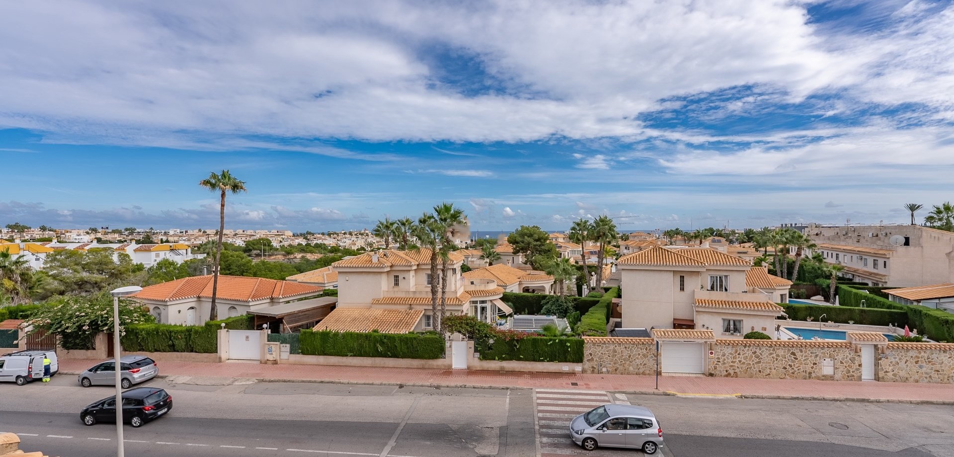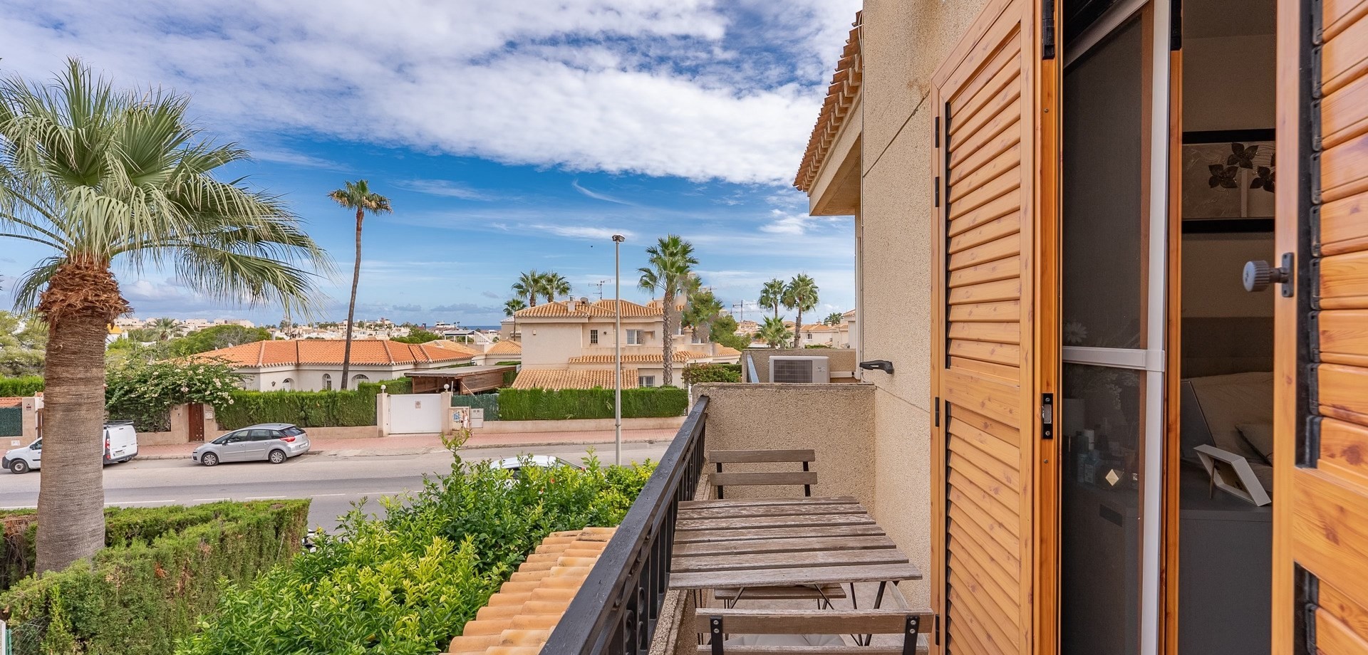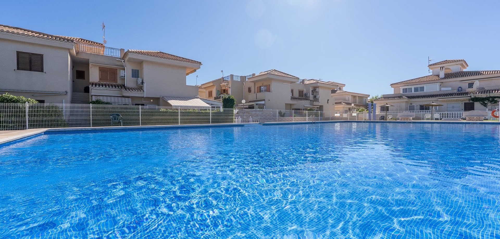 Modern 2-bedroom townhouse for sale in Playa Flamenca, Costa Blanca This modern 2-bedroom, 2-bathroom townhouse is located in the prestigious area of Playa Flamenca, Costa Blanca, one of the most sought-after locations for living, holiday homes and property investment on the Spanish coast. Thanks to its excellent location, all essential amenities are within walking distance, including restaurants, cafés, supermarkets, the popular La Zenia Boulevard shopping centre, and the renowned beaches of Orihuela Costa. The property is situated in a well-maintained, secure residential complex with a communal swimming pool, offering privacy, comfort and a peaceful environment. Despite its quiet setting, the townhouse enjoys a central location, making it an ideal choice for permanent living, holiday use or rental investment on the Costa Blanca. At the front of the property, there is an elegant terrace — perfect for enjoying morning coffee or outdoor dining under the Mediterranean sun. The ground floor features a spacious and bright living area with a dining space and an open-plan kitchen. The kitchen has been fully renovated, boasts a modern design and is equipped with high-quality appliances. A stylish bathroom with a walk-in shower is also located on this level. The upper floor offers two spacious double bedrooms, both with built-in wardrobes and individual air conditioning units. The master bedroom has access to a private balcony, while the second bedroom opens directly onto a large rooftop solarium terrace. This sun-drenched outdoor space is ideal for relaxing, entertaining guests and enjoying panoramic sea views and views of the surrounding area. This townhouse is an excellent opportunity for those looking to buy property near the sea in Spain, who value quality, comfort and a prime location. The excellent condition of the home, close proximity to the beaches and the well-developed local infrastructure make it one of the best real estate opportunities in Playa Flamenca.