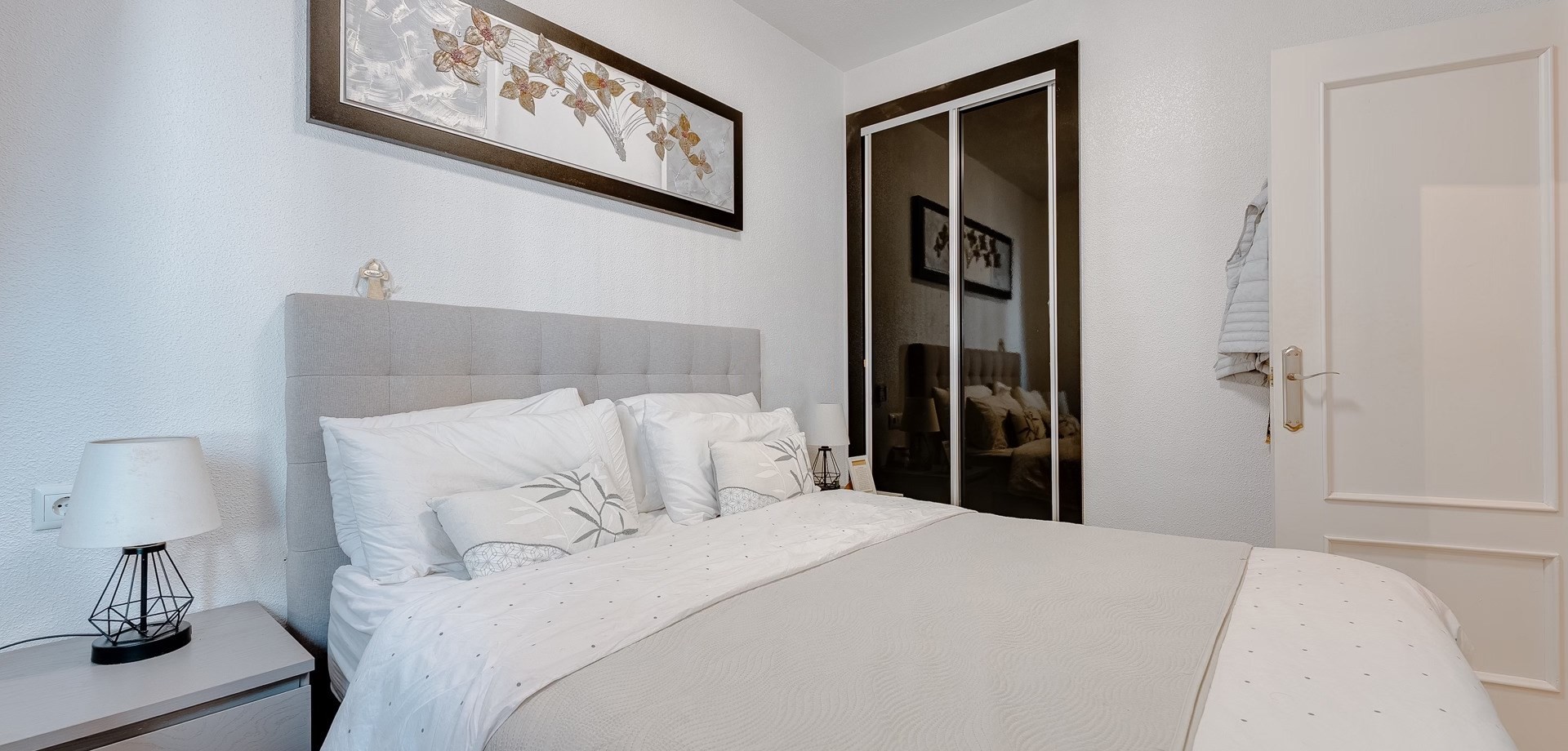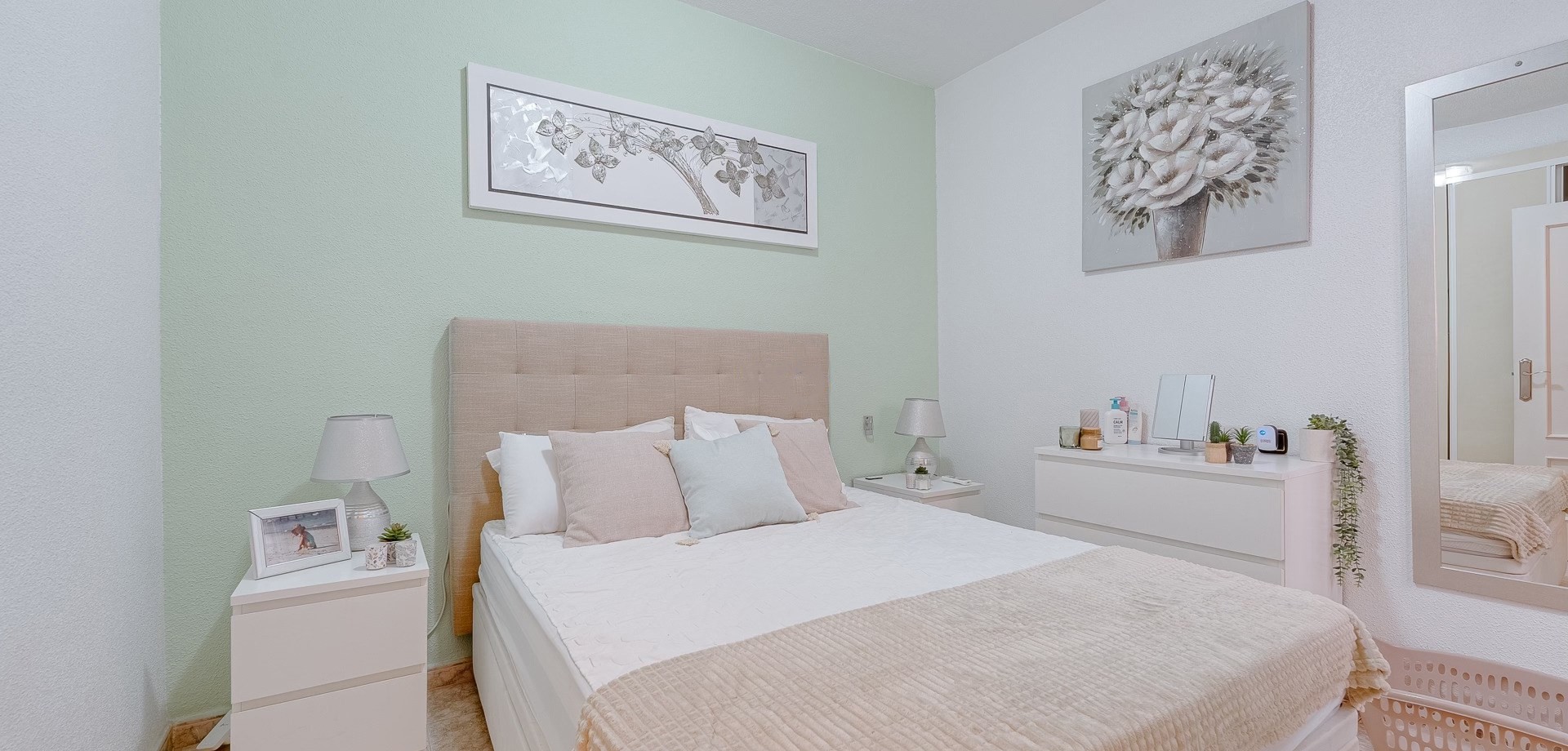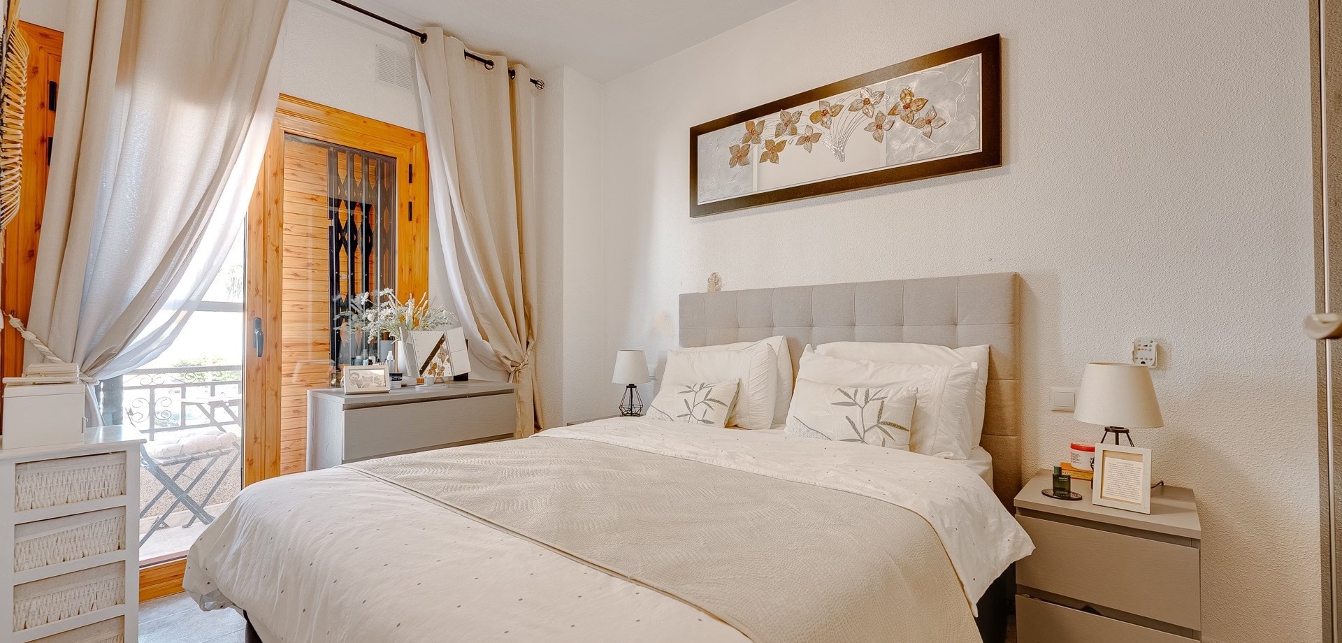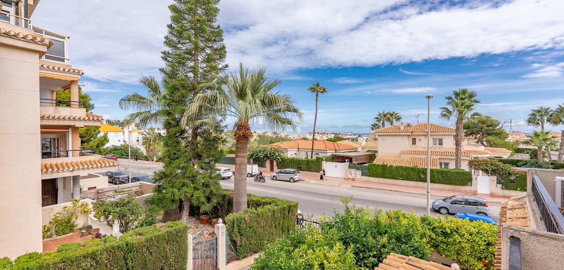 Modern 2-bedroom townhouse for sale in Playa Flamenca, Costa Blanca This modern 2-bedroom, 2-bathroom townhouse is located in the prestigious area of Playa Flamenca, Costa Blanca, one of the most sought-after locations for living, holiday homes and property investment on the Spanish coast. Thanks to its excellent location, all essential amenities are within walking distance, including restaurants, cafés, supermarkets, the popular La Zenia Boulevard shopping centre, and the renowned beaches of Orihuela Costa. The property is situated in a well-maintained, secure residential complex with a communal swimming pool, offering privacy, comfort and a peaceful environment. Despite its quiet setting, the townhouse enjoys a central location, making it an ideal choice for permanent living, holiday use or rental investment on the Costa Blanca. At the front of the property, there is an elegant terrace — perfect for enjoying morning coffee or outdoor dining under the Mediterranean sun. The ground floor features a spacious and bright living area with a dining space and an open-plan kitchen. The kitchen has been fully renovated, boasts a modern design and is equipped with high-quality appliances. A stylish bathroom with a walk-in shower is also located on this level. The upper floor offers two spacious double bedrooms, both with built-in wardrobes and individual air conditioning units. The master bedroom has access to a private balcony, while the second bedroom opens directly onto a large rooftop solarium terrace. This sun-drenched outdoor space is ideal for relaxing, entertaining guests and enjoying panoramic sea views and views of the surrounding area. This townhouse is an excellent opportunity for those looking to buy property near the sea in Spain, who value quality, comfort and a prime location. The excellent condition of the home, close proximity to the beaches and the well-developed local infrastructure make it one of the best real estate opportunities in Playa Flamenca.