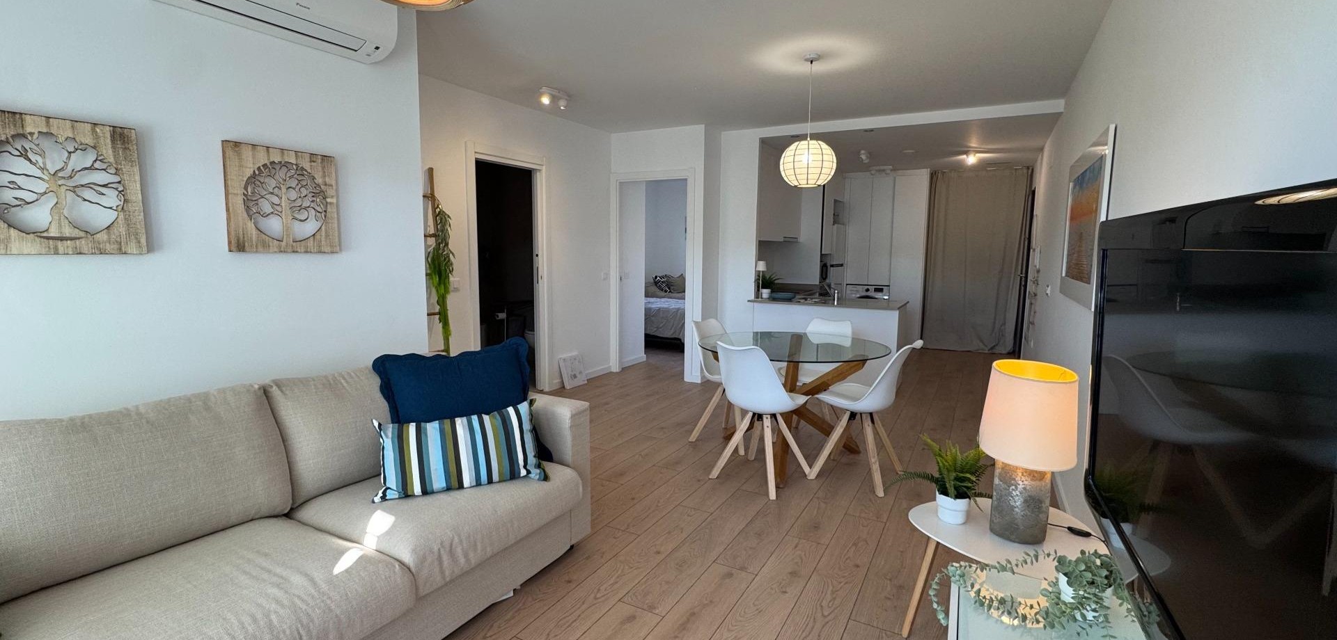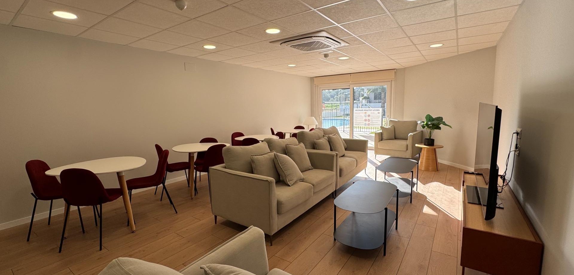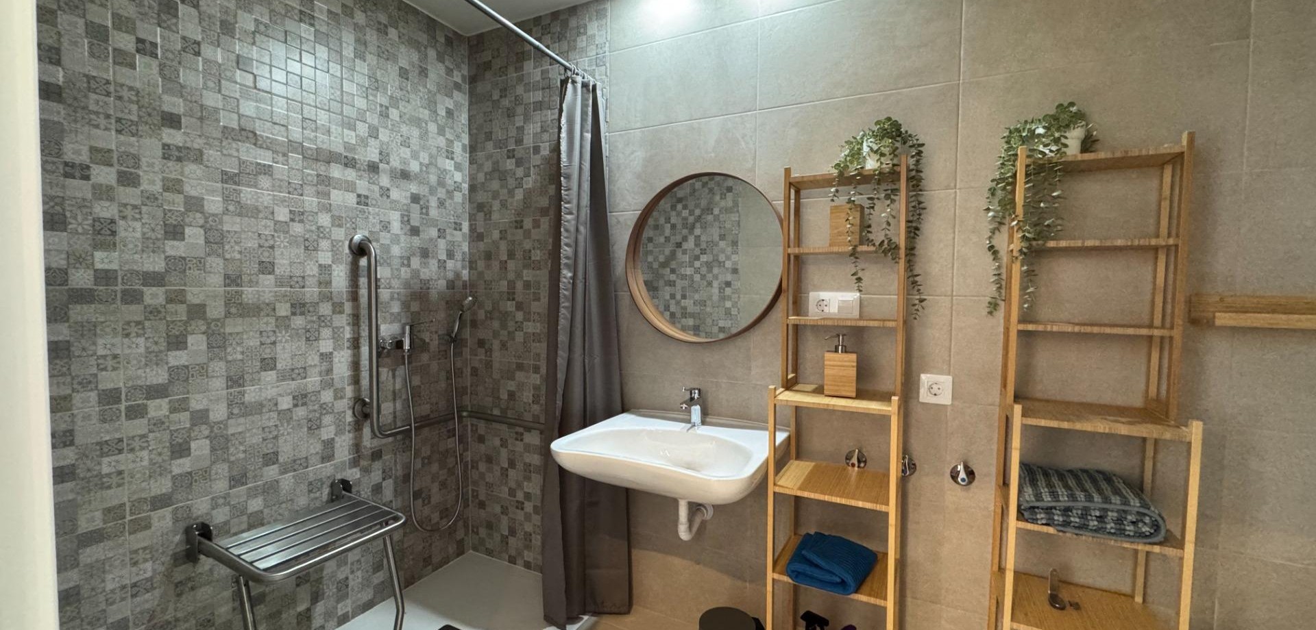 Elegant Ground-Floor Living in Mil Palmeras~~Discover refined coastal living in this beautiful 65 m2 ground-floor corner apartment, where comfort, accessibility, and style come together effortlessly. Designed to be fully accessible for people with reduced mobility, this home offers ease and elegance for every stage of life.~~The apartment features two stylish and comfortable bedrooms and a modern, fully equipped bathroom, creating a welcoming and harmonious living space. Thanks to its corner position and dual east–south orientation, the property is bathed in natural light throughout the day, allowing you to enjoy both the gentle morning sun and warm southern exposure.~~Step outside into your private garden, a charming outdoor oasis ideal for morning coffee, relaxed lunches, or quiet evenings surrounded by greenery.~~Set within a prestigious and well-maintained residential complex, residents enjoy access to a communal swimming pool, sun terrace, and a fully equipped gym. The golden beaches of Mil Palmeras are just five minutes away by car, offering the perfect balance between tranquility and the Mediterranean lifestyle.~~The apartment is presented in excellent condition and ready to move into, featuring air conditioning and built-in wardrobes for maximum comfort and functionality. A private parking space and storage room are included, ensuring convenience and peace of mind.~~A rare opportunity to own a bright, accessible, and elegantly designed home close to the sea.