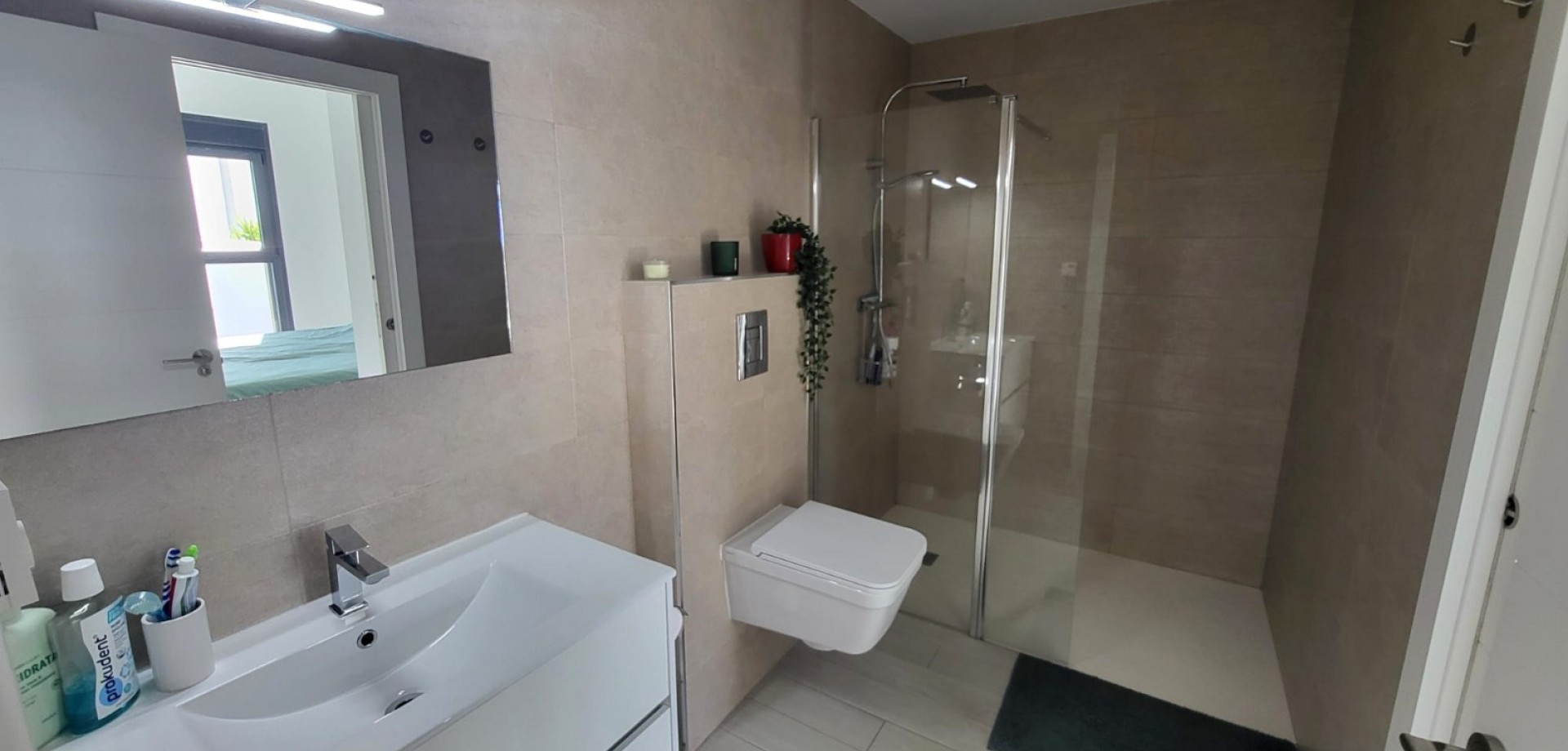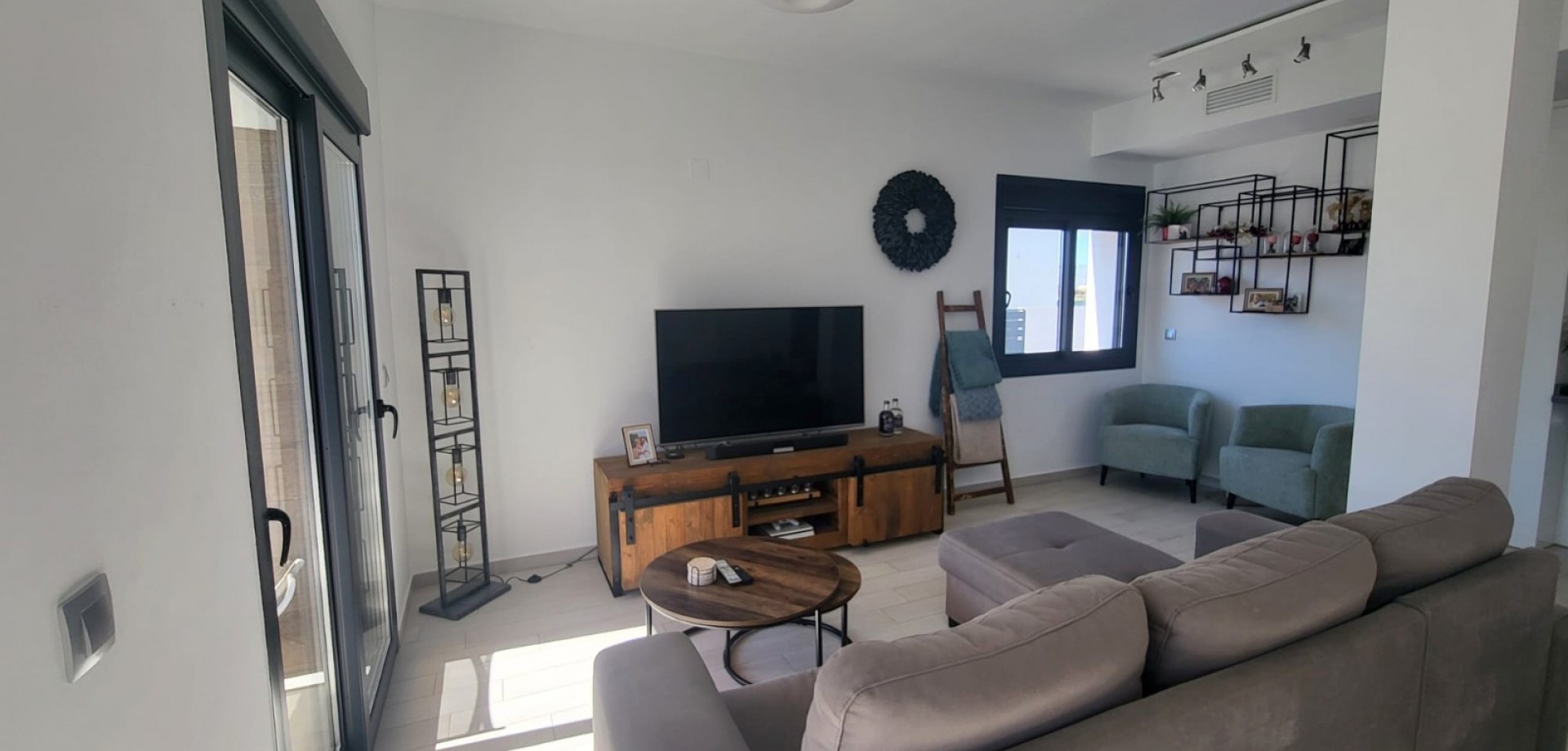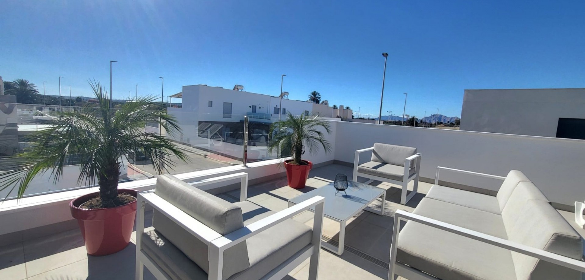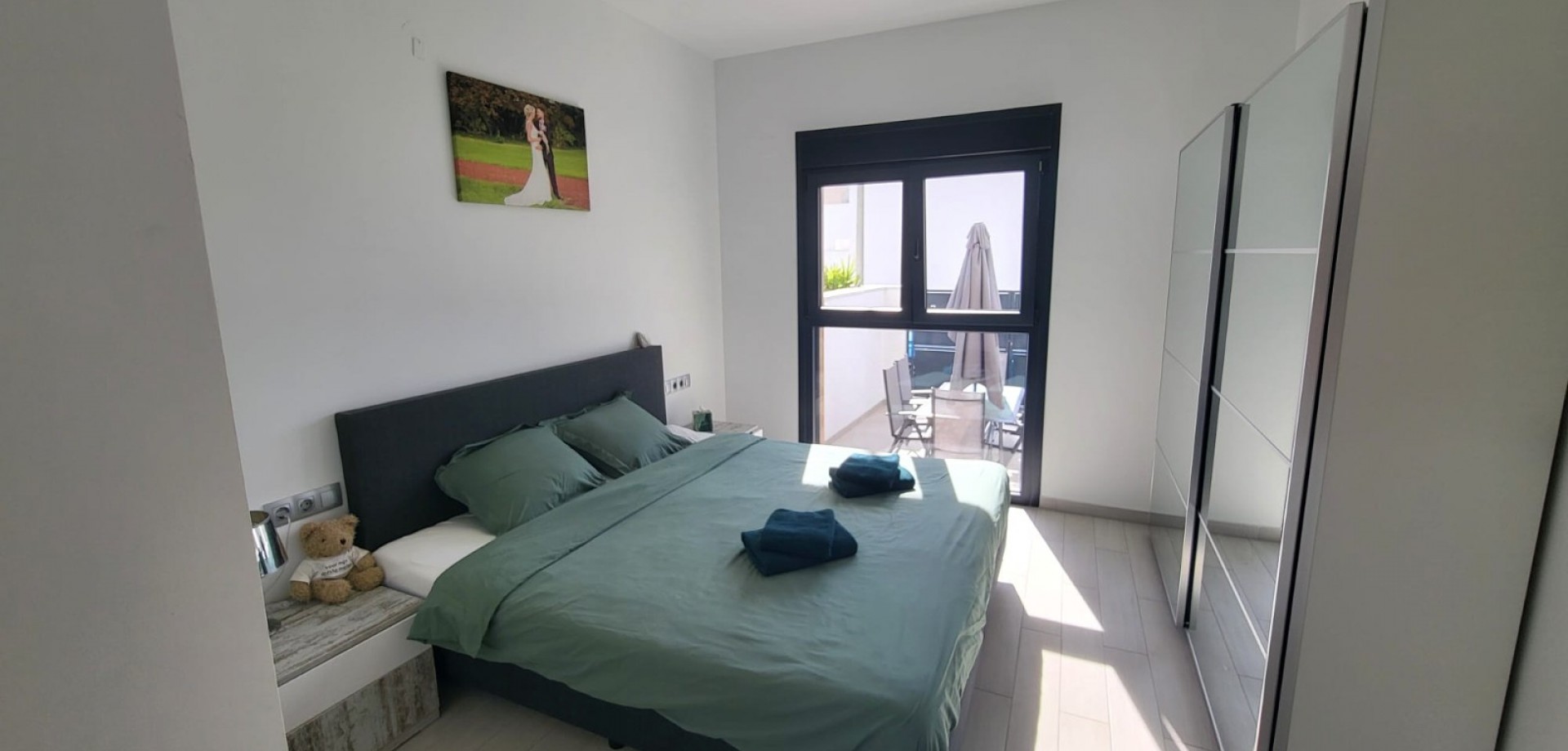 This modern corner townhouse in Daya Vieja, Alicante offers stylish Mediterranean living in a peaceful village setting. Only 5 years old and south facing, the property is filled with natural light and benefits from no community fees. The home features 2 bedrooms and 2 bathrooms, thoughtfully laid out over two floors plus a private solarium. On the ground floor, you’ll find a bright living area, a double bedroom, and a full bathroom, ideal for guests or single-level living. The first floor hosts the second bedroom with its own bathroom, along with access to the stunning private solarium, where you can enjoy open mountain views and sunshine all day long. Outside, the property really shines with a private swimming pool, front terrace, and ample outdoor space for relaxing or entertaining. Additional practical features include a laundry room, storage room, and hot and cold air conditioning throughout for year-round comfort. Perfectly located, the townhouse is within walking distance to village amenities, just 25 minutes from Alicante Airport, and only a short drive to the popular towns of Benijófar and Rojales, offering a wider range of shops, restaurants, and services. A fantastic opportunity for a permanent home, holiday retreat, or low-maintenance investment on the Costa Blanca.