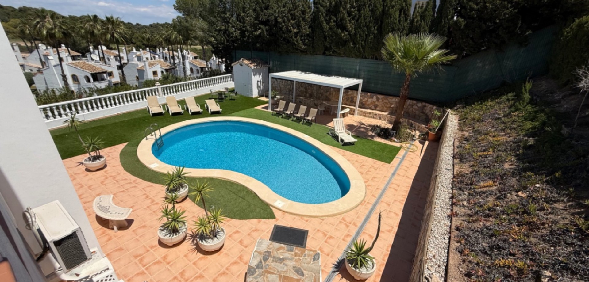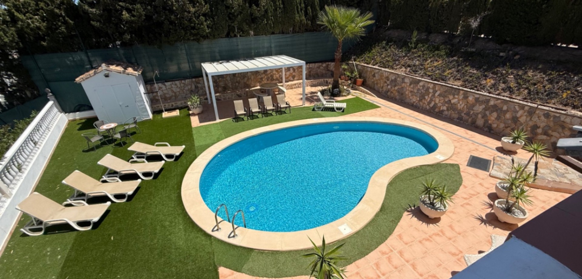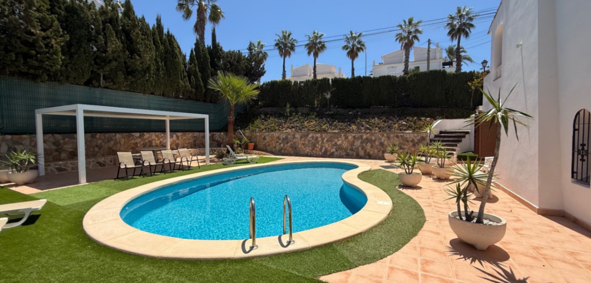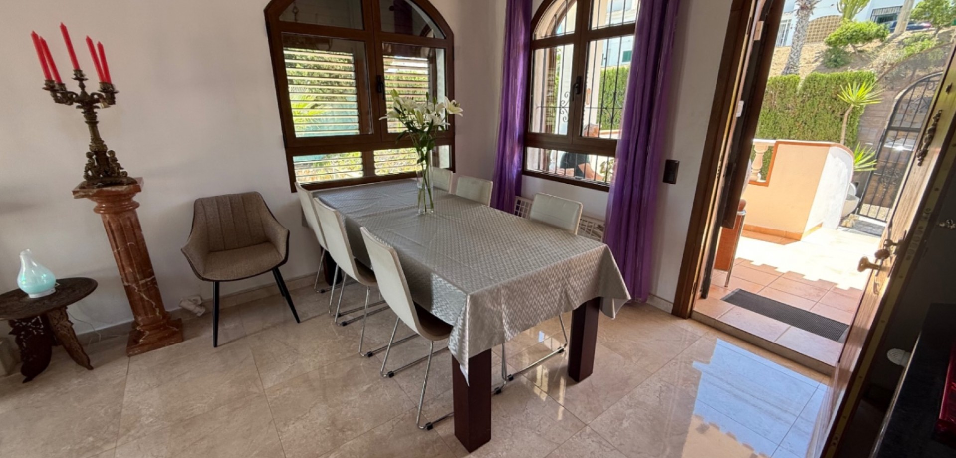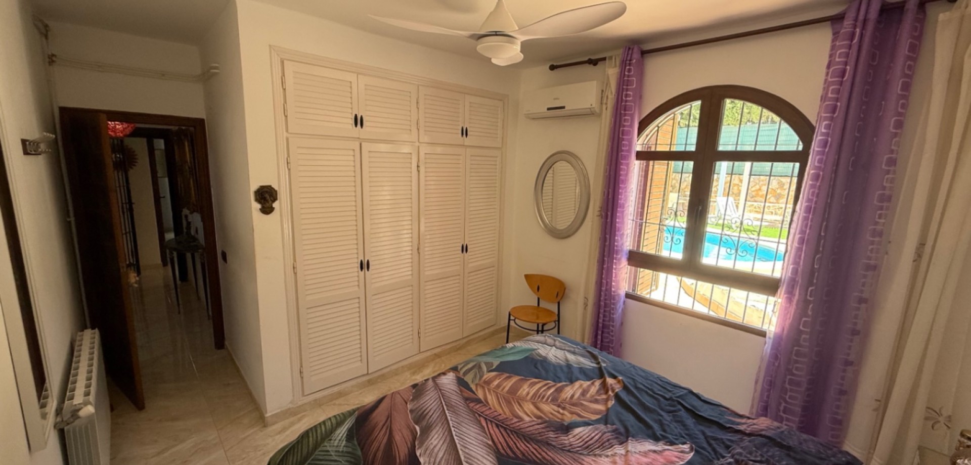 Charming Detached House in Orihuela CostaThis stunning detached house located in the picturesque city of Orihuela, Alicante, offers an exceptional living experience. With spacious interiors and exquisite features, this home is a perfect sanctuary for families seeking comfort and style. Spacious Living AreasThe property boasts a generous built size of 156 m², thoughtfully designed to accommodate modern living. The layout includes four inviting bedrooms that provide ample space for rest and relaxation. Coupled with two well-appointed bathrooms, this home perfectly balances functionality with elegance, ensuring convenience for the entire family. Outdoor OasisSitting on an expansive plot of 900 m², the outdoor area presents a stunning private pool, ideal for enjoying sunny days and hosting gatherings with friends and family. This ample space allows for endless possibilities, from creating a flourishing garden to establishing tranquil areas for outdoor entertainment. Whether you’re basking in the sun or enjoying an evening under the stars, this outdoor retreat offers a slice of paradise. Comfort Year-RoundExperience year-round comfort with the home's air conditioning and heating systems, ensuring every corner of your residence is inviting, no matter the season. These features enhance the living experience, making this house not just a home, but a cozy haven. Additional FeaturesThis residence also includes a covered terrace and an open terrace, offering versatile spaces that can be personalized to suit your lifestyle. Imagine enjoying morning coffee or evening sunsets in these serene outdoor settings. Furthermore, the property comes with convenient parking options, providing ease and accessibility for residents and guests alike. Location and CommunityOrihuela is not just a place to live; it’s a community rich in culture and history. The city's vibrant atmosphere is complemented by its beautiful streets, local amenities, and proximity to stunning natural landscapes. Residents can indulge in a variety of recreational activities, making it an ideal location for families seeking an enriching environment.