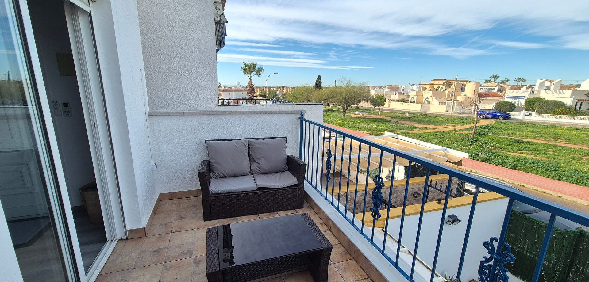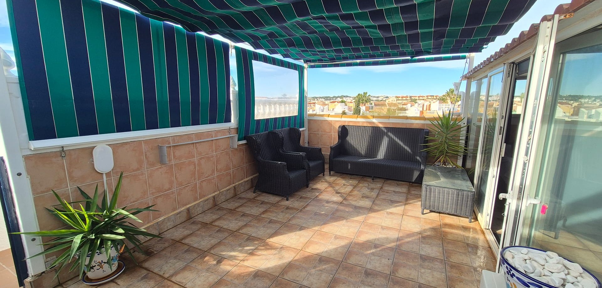 This attractive 3-bedroom, 2-bathroom top-floor penthouse apartment is ideally located in the highly sought-after area of La Florida, within easy reach of a wide selection of local amenities and just a short drive from the beach. The main living level offers a bright living–dining room, a separate fully equipped kitchen, two well-proportioned bedrooms, and a family bathroom. From the living area, doors lead out to a pleasant balcony overlooking a park area, providing a peaceful green outlook. Upstairs, the property truly comes into its own with a spacious private solarium, perfect for sunbathing, entertaining, or relaxing outdoors. This level also features a large additional room, currently used as the third bedroom and sitting area, there is also a shower room on this level- offering flexible accommodation ideal for guests or extended family. Set within a well-maintained urbanisation, residents enjoy access to a beautiful communal swimming pool and tennis courts, enhancing the lifestyle appeal of this fantastic home. The property also benefits from air-conditioning and is sold partly furnished (subject to offer). Whether you’re looking for a permanent residence, holiday home, or investment opportunity, this penthouse offers space, location, and excellent communal facilities in one of the area’s most popular locations. If you would like to view this 3 bedroom penthouse apartment in La Florida, get in touch!