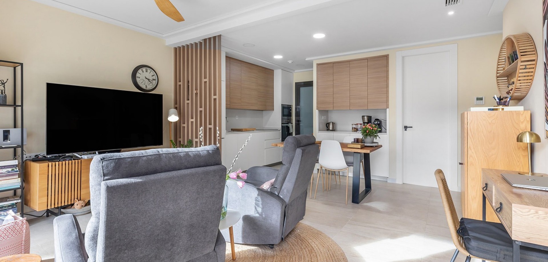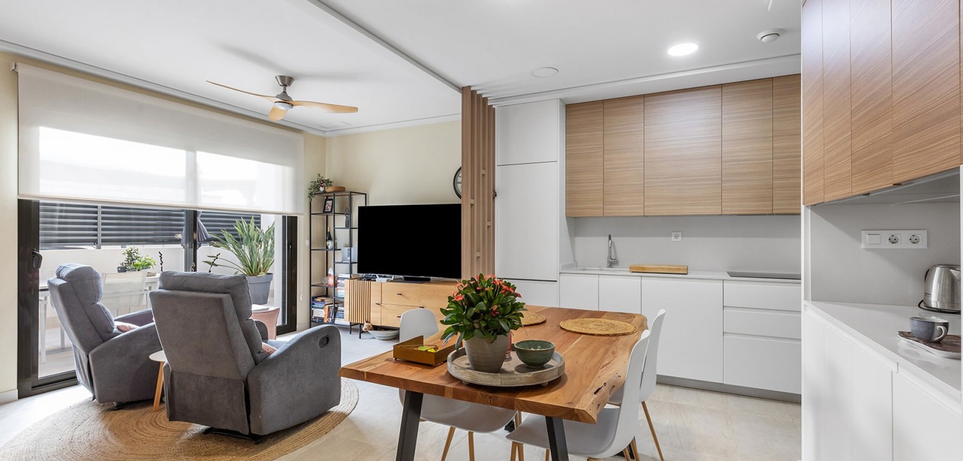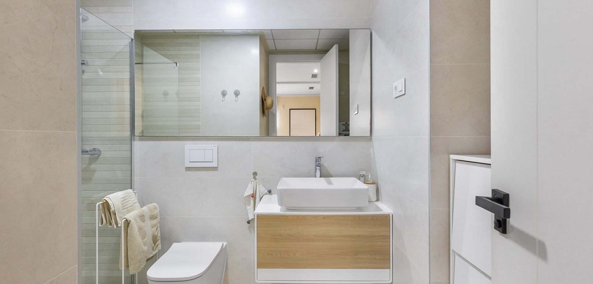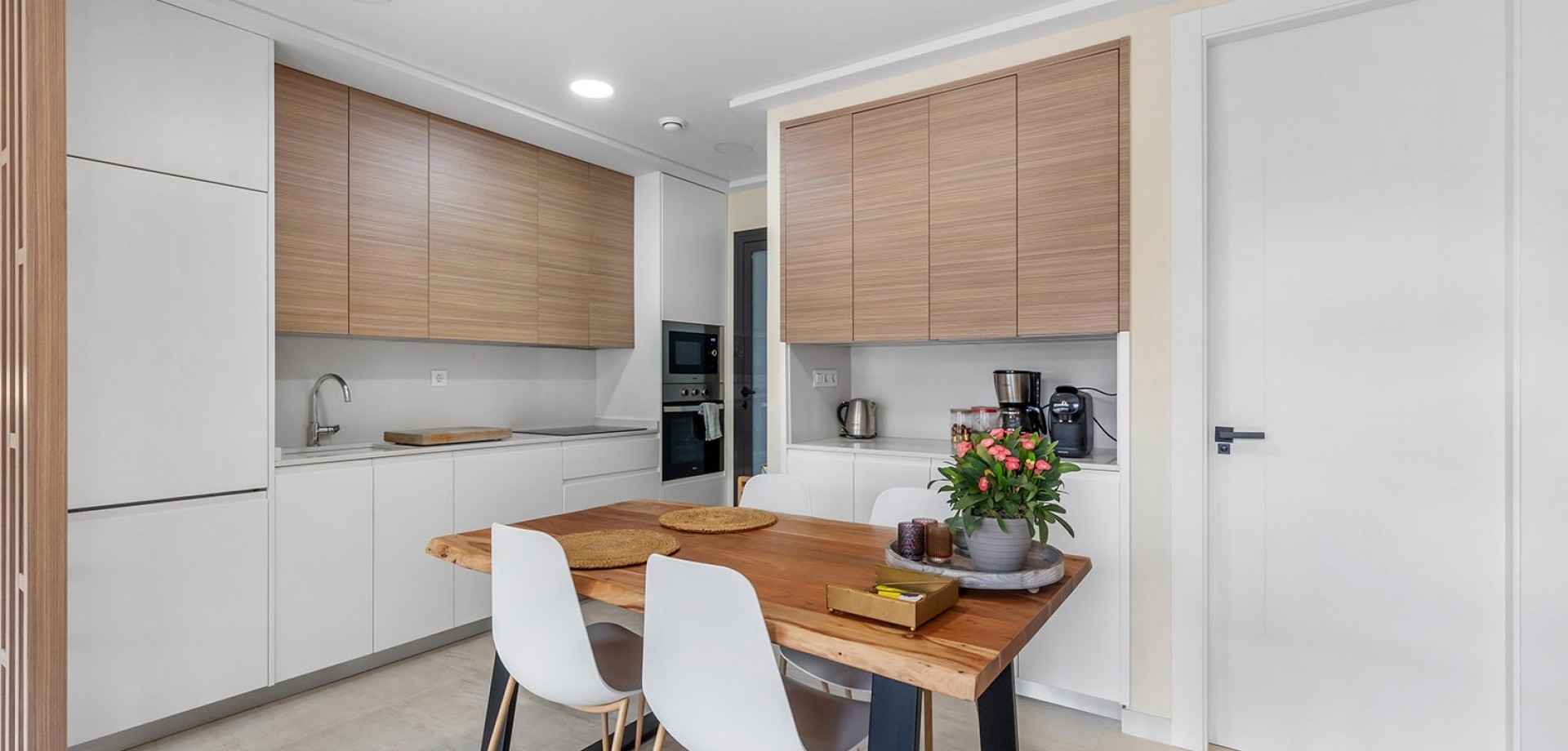 This new build ground floor apartment in La Mata is sold completely ready to move in (key ready) and is located in a small-scale and well-maintained residence within walking distance of the beach. The property combines modern comfort, high-quality finishes and a pleasant Mediterranean lifestyle. The flat has two spacious and bright bedrooms and two modern bathrooms with walk-in showers, ensuring optimal comfort and privacy. The stylish living space with open, fully equipped kitchen connects seamlessly to the outdoor area and creates a spacious and light living experience. The spacious private garden is a natural extension of the living space and offers enough room for a lounge and dining area, ideal for enjoying the outdoor life on the Costa Blanca all year round. The property is sold fully ready to move into, including furniture and fittings. In addition, the flat has a private parking space in front of the building and a private storage room in the basement, both included in the price. Residents can also use the communal swimming pool within the residence. Thanks to its excellent location in La Mata, close to the beach and all amenities, this flat is ideal as a second home, investment or permanent residence on the Costa Blanca.