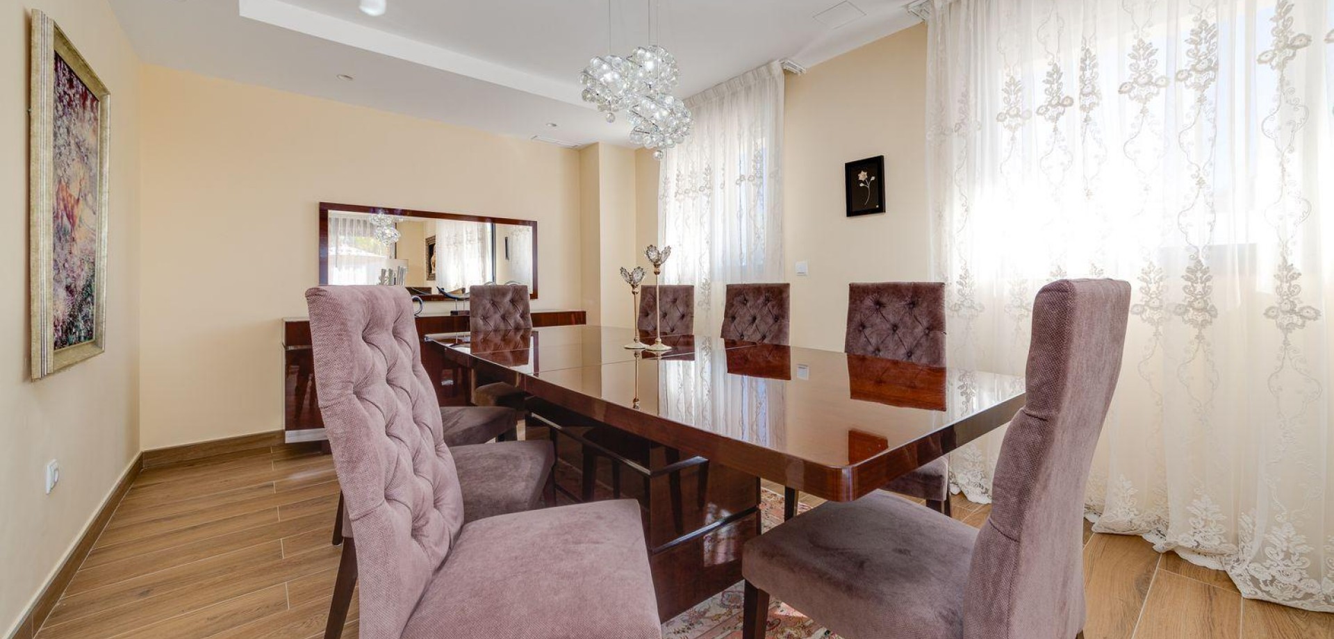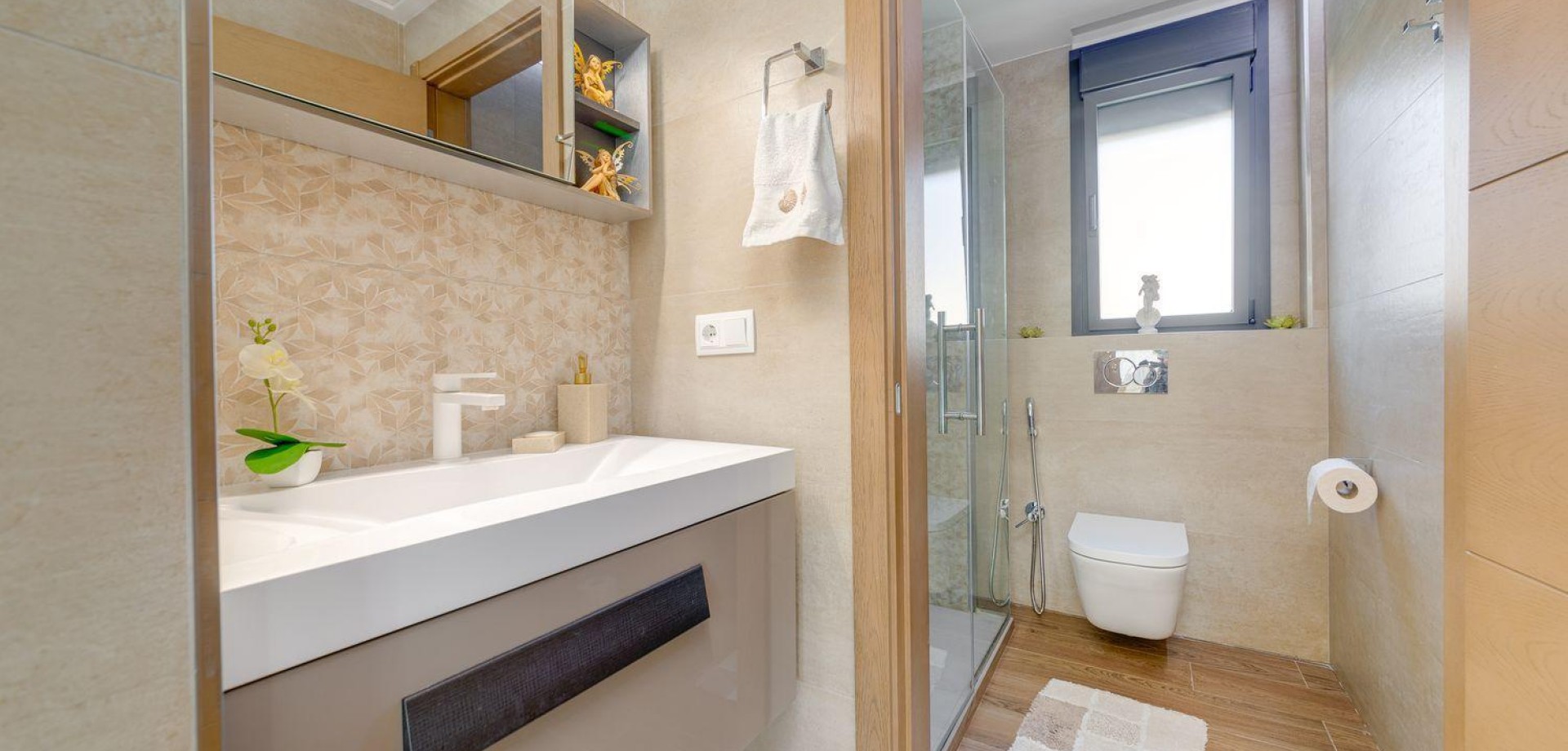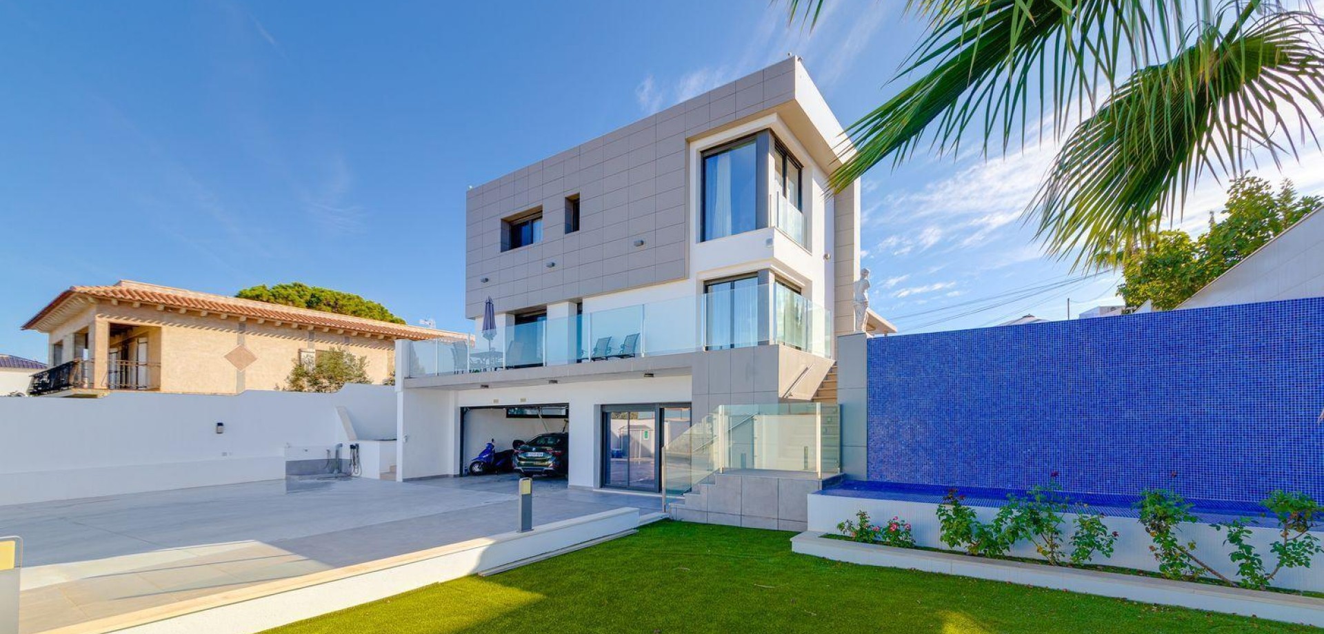 A contemporary gem designed for those who seek excellence, absolute comfort, and impeccable aesthetics. This unique villa combines cutting-edge technology, spaciousness, and top-tier finishes in one of the most prestigious areas of Torrevieja.Key features 3 bedrooms 4 bathrooms 461 m² built area 790 m² plot Private pool with waterfall Hammam in the master bathroom Private gym Parking space for two vehicles Smart home system Eighteen solar panels Underfloor heating throughout the property Fully equipped kitchen with premium appliances Monthly SUMA tax €90On the ground floor, there is a spacious social area with a fireplace, a separate living room, and a surround sound system. Underfloor heating ensures comfort all year round. The fully equipped kitchen includes high-end appliances. All spaces are integrated into the homes smart system, and the bathrooms feature built-in radios and NOKEN finishes.The upper floor offers four exceptional bedrooms. The master suite includes an en-suite bathroom with a private hammam, while the additional bedrooms each have their own bathroom and built-in wardrobes. A large elevated terrace with a shower provides the perfect spot to relax in the sun.The basement houses a gym, a multi-purpose room ideal for a home cinema, storage rooms, and technical areas.Outside, the pool with waterfall and its terrace area invite you to enjoy the Mediterranean lifestyle.5 minutes from La Zenia Boulevard and 7 minutes from the beach. Alicante and Murcia airports are just 45 minutes away.