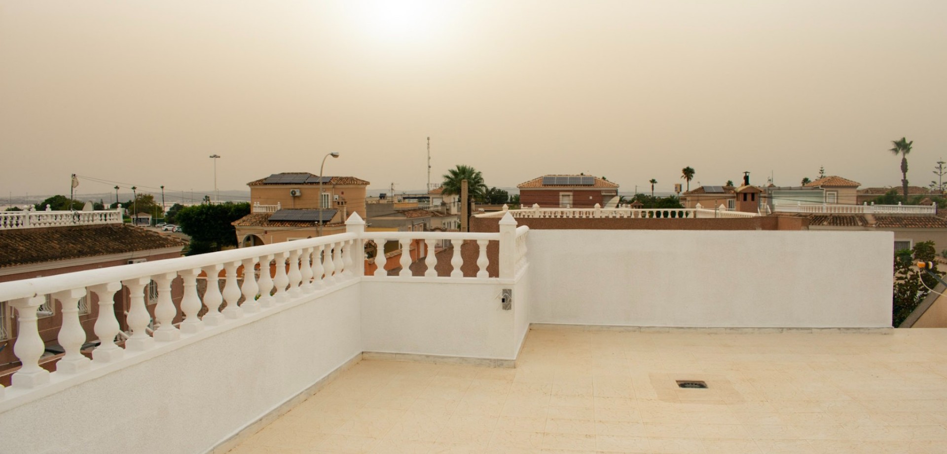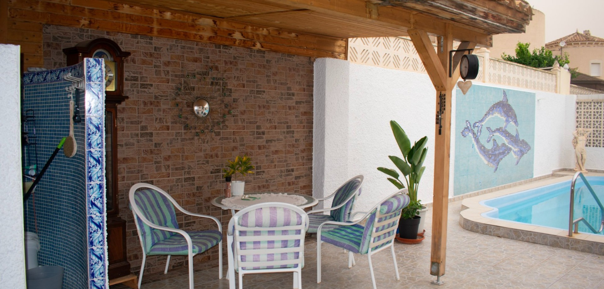 Discover this detached house situated on a spacious 387.5 m² plot , a versatile space that allows you to enjoy the outdoors and adapt the home to different needs. The house currently has 1 bedroom and 1 bathroom , although its layout makes it easy to create a second bedroom by converting one of the living rooms, leaving a large central space with access to the veranda, ideal for becoming the main living room . Upon entering, there is an access area leading to the entrance hall , equipped with a built-in wardrobe . This hall can be expanded and used as an office or multipurpose space , thanks to the fact that the property has a second, independent entrance that provides greater flexibility in the layout. The exterior is one of the property's greatest attractions: a large private swimming pool , an outdoor shower , spacious garden and terrace areas, a detached shed , and an additional separate storage room , perfect for storage, extra space, or a tool area. The private garage offers space for one car, and the plot allows for convenient parking of a second vehicle outside. On the upper floor, the property features a spacious solarium accessible by external stairs, offering views of the Torrevieja Salt Flats . This space also provides the possibility of adding height and constructing an additional level , which adds significant potential for value and customization. With 135 m² built and 76 m² of living space , the house is presented in excellent condition , with good natural light and a versatility that is unusual in the area. Located on a quiet private street within a gated residential complex with an additional access gate , it offers added security and privacy in the prestigious San Luis Urbanization of Torrevieja . Climate: The climate on the Costa Blanca , often considered the best in Europe , fosters a very sociable and healthy lifestyle, characterized by outdoor activities, sports and leisure facilities , and exciting, cosmopolitan tourist cities that stand out for their top-tier services , some of them exclusive and considered truly luxurious. All of these cater to a discerning clientele seeking quality and personalized service. The Costa Blanca boasts over 300 days of sunshine a year . A paradise with excellent connections to all of Europe. Alicante-Elche Airport offers modern facilities and easy, convenient access from anywhere in the province. Around: The Costa Blanca continues to attract people from all over Europe, and other parts of the world, because it offers a unique quality of life in a beautiful setting on the shores of the Mediterranean Sea, surrounded by mountains and lush vegetation. In addition to the golf courses and marinas that you can enjoy all along the coast, the area also offers the opportunity to ski in the nearby Sierra Nevada, Javalambre, or Valdelinares , paradises for winter sports enthusiasts with stunning natural landscapes. The Costa Blanca offers a uniquely rich lifestyle , where the best beaches and coves in the Mediterranean combine with an interior full of mountains and villages that hold culture and historical monuments unlike any other in the world. We believe your trust deserves exceptional treatment. We'll be there for you whenever you need us. We have a gift for you: Our real estate agency helps you transform your new property into your dream home. We'll accompany you on a free technical visit to your property, where our design team will advise you on potential improvements and decorating options. IMPORTANT!! Remember that our services NEVER increase the final price of the property for our clients. Our experience in the sector will make us your ally, a trusted advisor who will help you choose your dream home in the best area, inform you about the market price of the properties you are interested in, the quality of materials used... all the essential and objective information to ensure your experience is completely satisfactory. Our agency belongs to a group of established and specialized companies, all focused on the home sector: architecture, interior design, furniture, real estate buying and selling advice, etc. These resources allow us to offer unique and exclusive services to our clients.