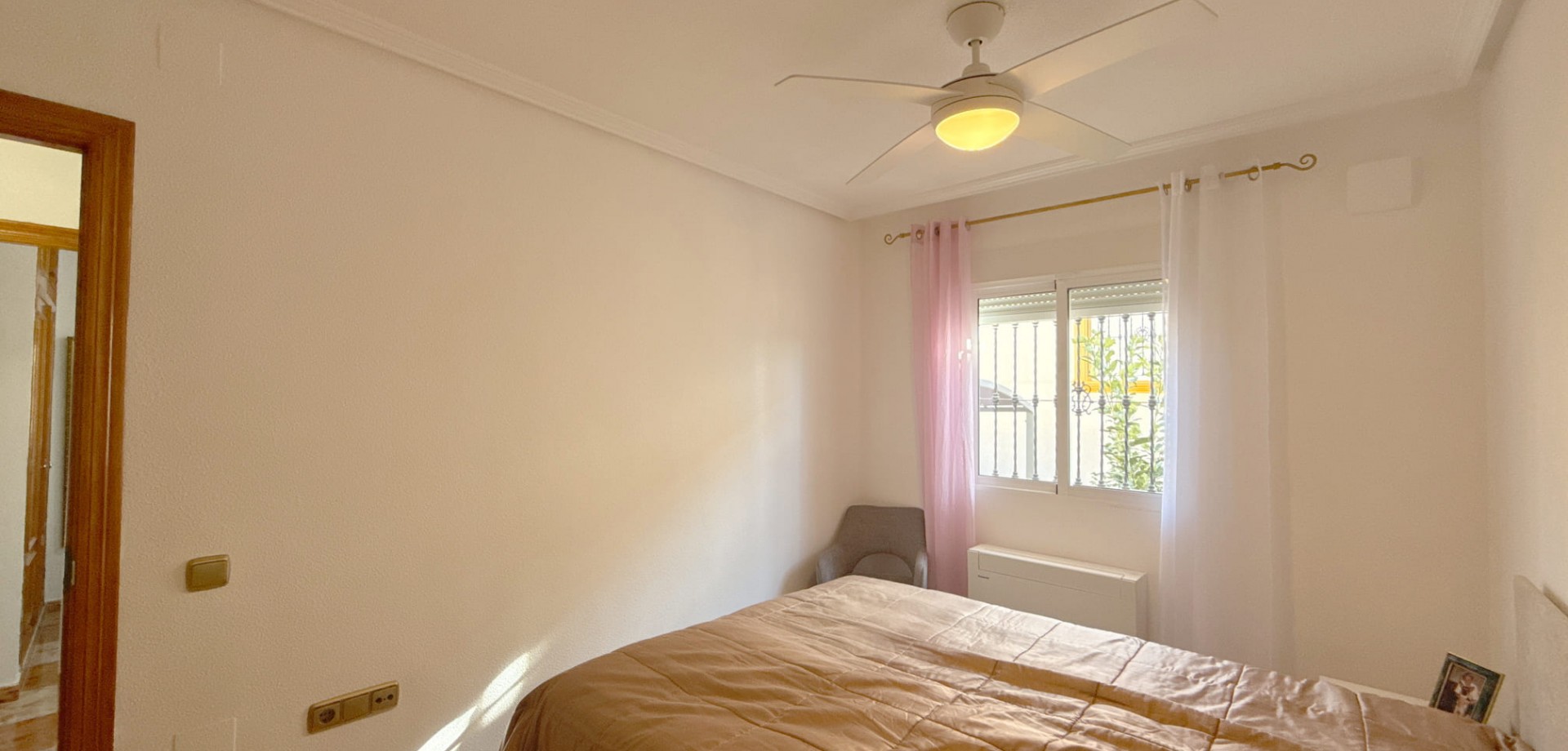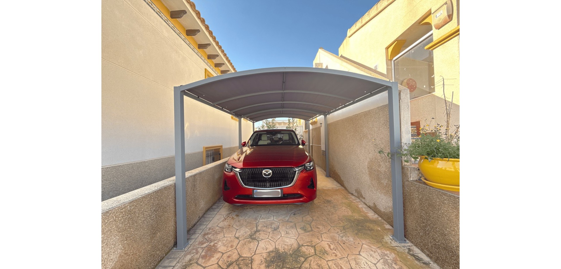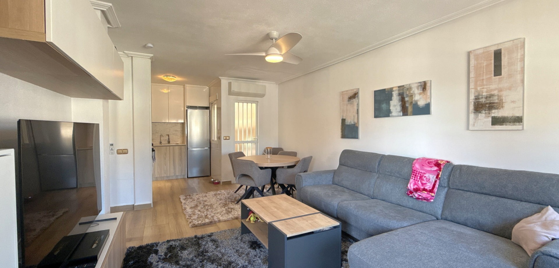 This charming 2-bedroom bungalow offers a fantastic blend of traditional Mediterranean architecture and modern interior updates. Located in a prime spot in Cabo Roig, it’s a "move-in ready" home that feels fresh and bright. Key Updates The "heavy lifting" has already been done where it counts most. The living room and kitchen have been fully renovated, featuring a contemporary open-plan layout, sleek cabinetry, and updated finishes that give the heart of the home a modern, stylish edge. Private Roof Solarium: A massive space for sunbathing or evening drinks. Convenience: Includes a private carport, a rare find for bungalows in this area. Community: Access to a well-maintained communal pool and garden areas.