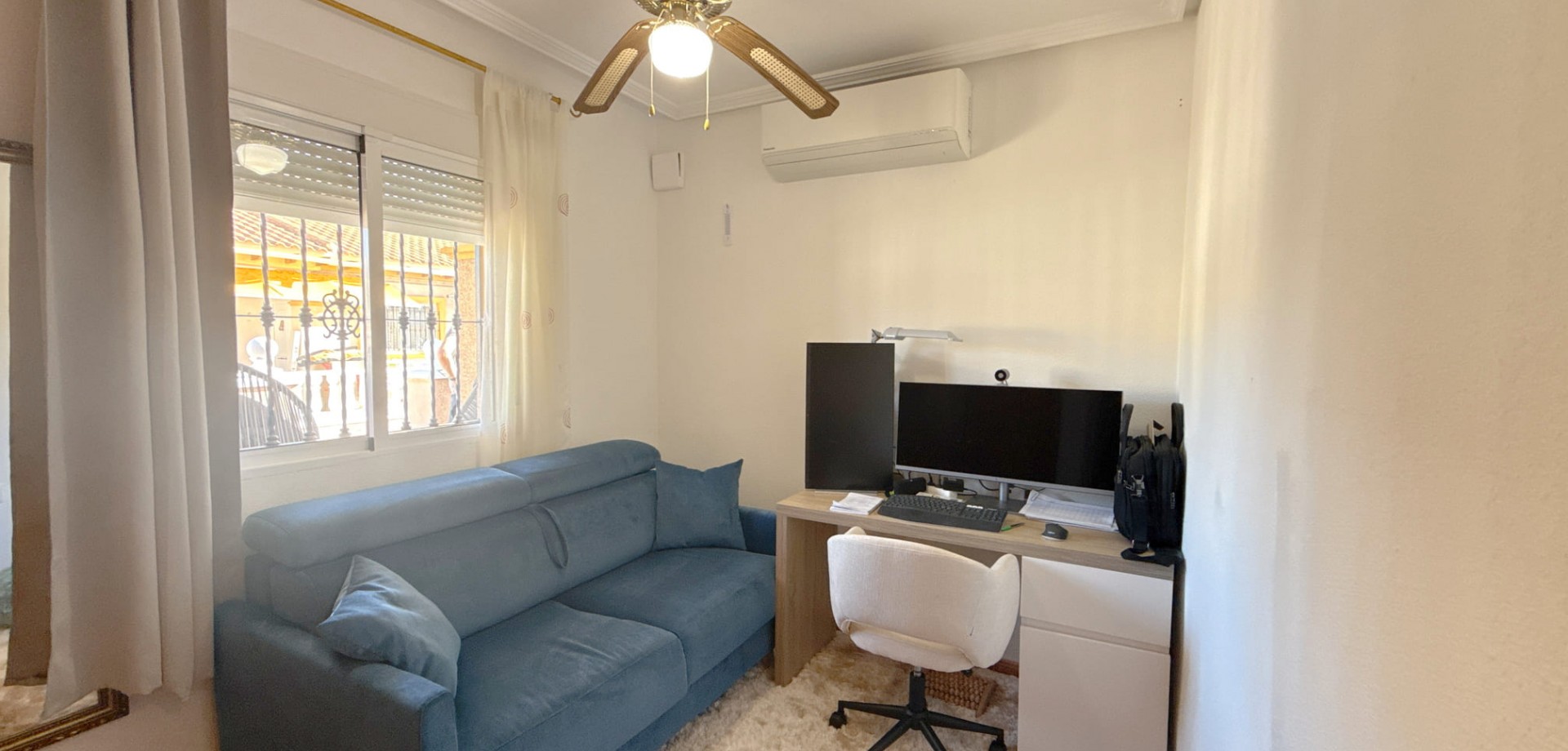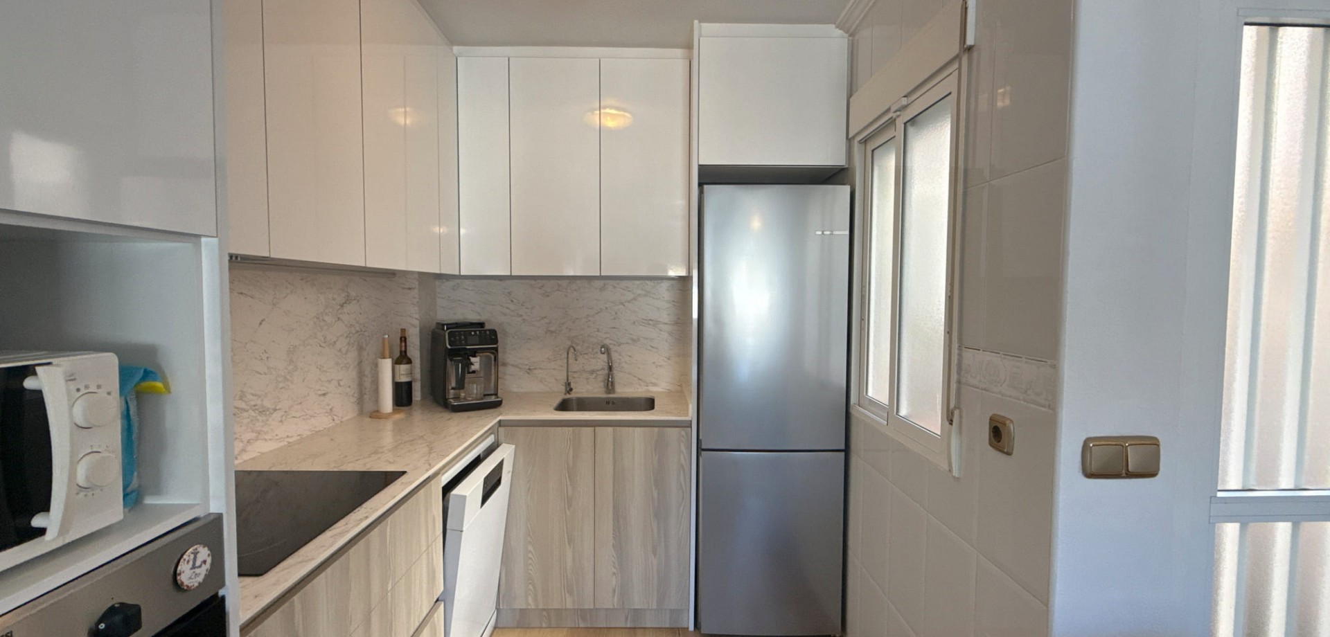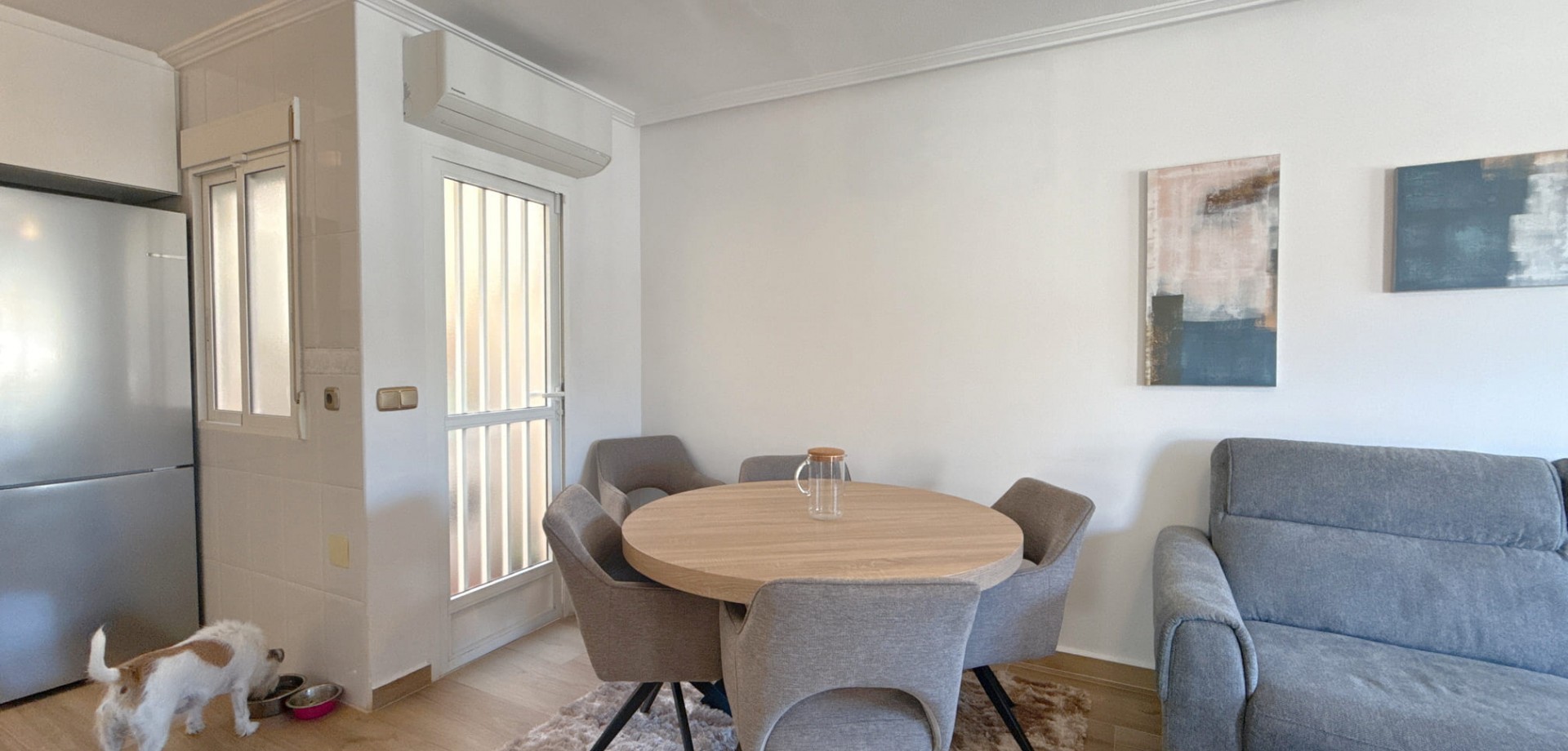 This charming 2-bedroom bungalow offers a fantastic blend of traditional Mediterranean architecture and modern interior updates. Located in a prime spot in Cabo Roig, it’s a "move-in ready" home that feels fresh and bright. Key Updates The "heavy lifting" has already been done where it counts most. The living room and kitchen have been fully renovated, featuring a contemporary open-plan layout, sleek cabinetry, and updated finishes that give the heart of the home a modern, stylish edge. Private Roof Solarium: A massive space for sunbathing or evening drinks. Convenience: Includes a private carport, a rare find for bungalows in this area. Community: Access to a well-maintained communal pool and garden areas.