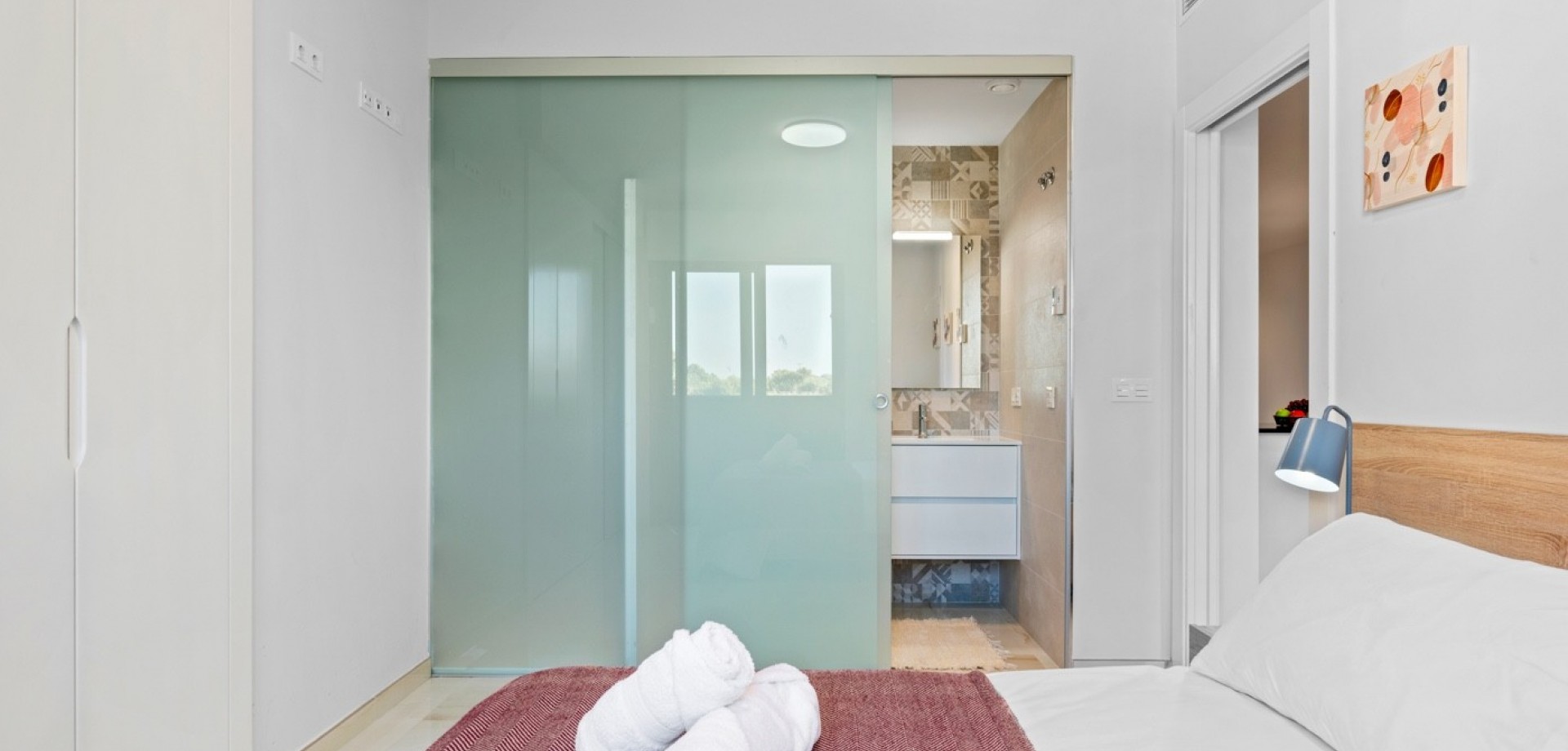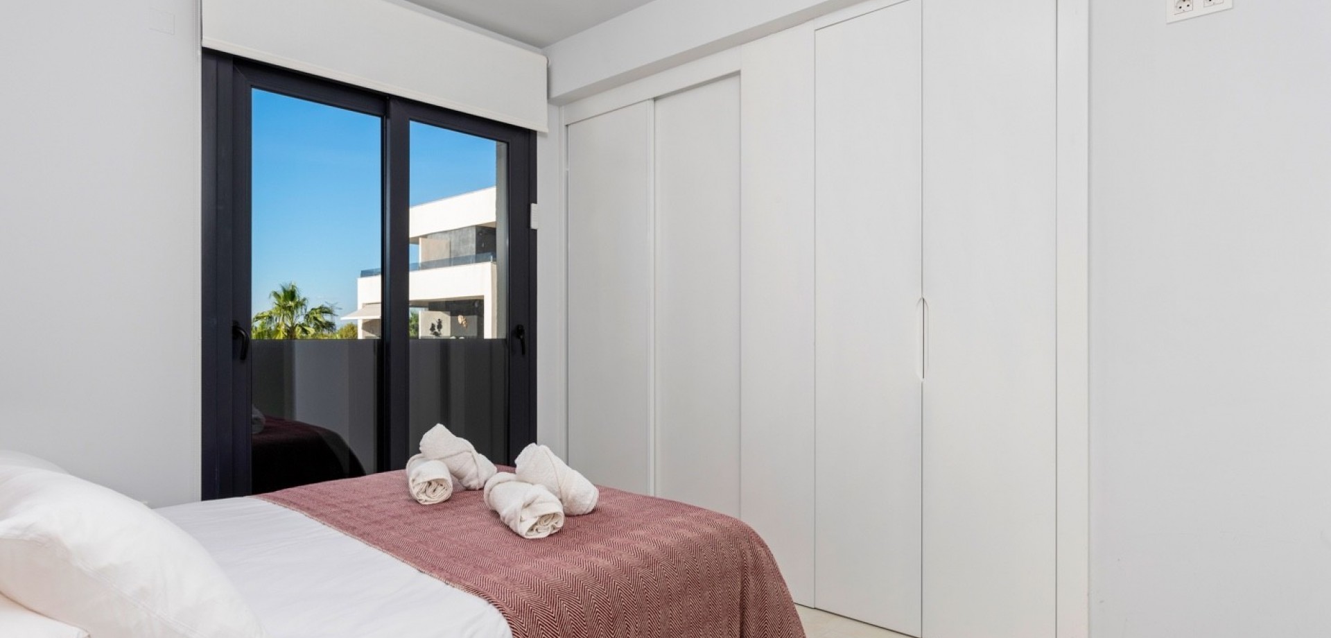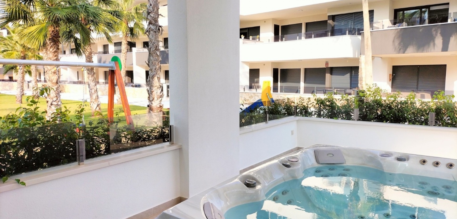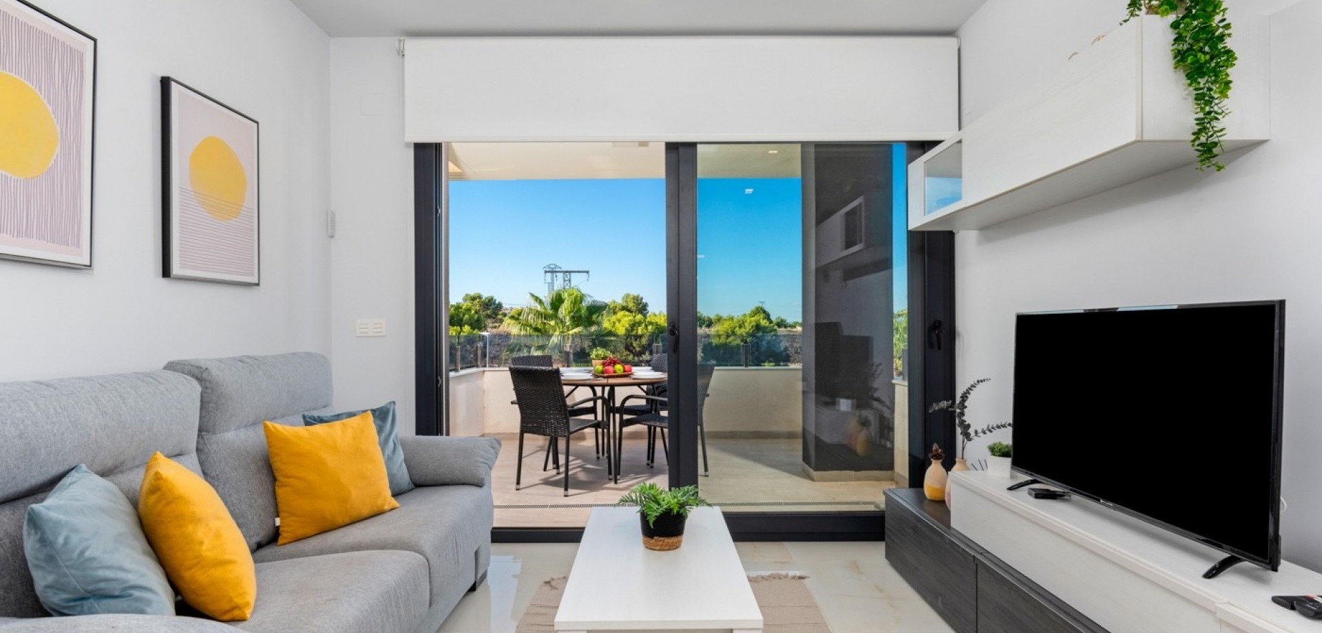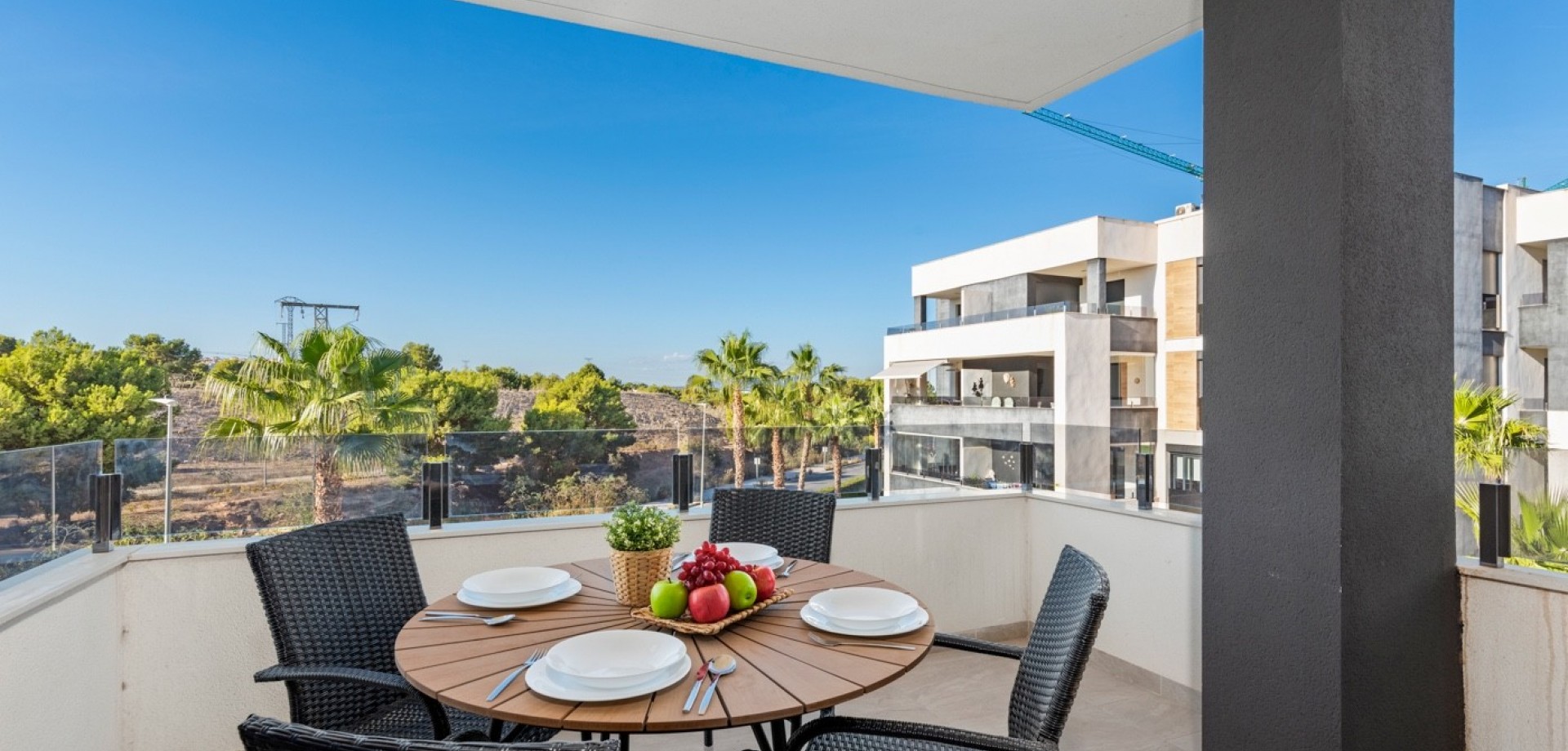 We present to you a beautiful and new 2 bedroom apartment in the popular Amanecer VI gated complex in Los Altos. The property with southwest exposure, located on the second floor with elevator, equipped with high quality furniture, modern household appliances, air conditioning and underground parking with storage room.The apartment consists of a bright living room with dining area, open kitchen and two double bedrooms with built-in wardrobes. The master bedroom has an en suite bathroom and both bathrooms have underfloor heating. The balcony overlooking the communal pool and garden invites you to relax outdoors.Residencial Amanecer VI offers a safe and quiet environment with large green areas, boules courts and water attractions. Ideally located 750 m from a supermarket and a few minutes walk from the restaurants and bars of Via Park III, just a 10 minute drive from the beaches, Zenia Boulevard and world class golf courses such as Villamartin and Las Ramblas.Ready to move in!