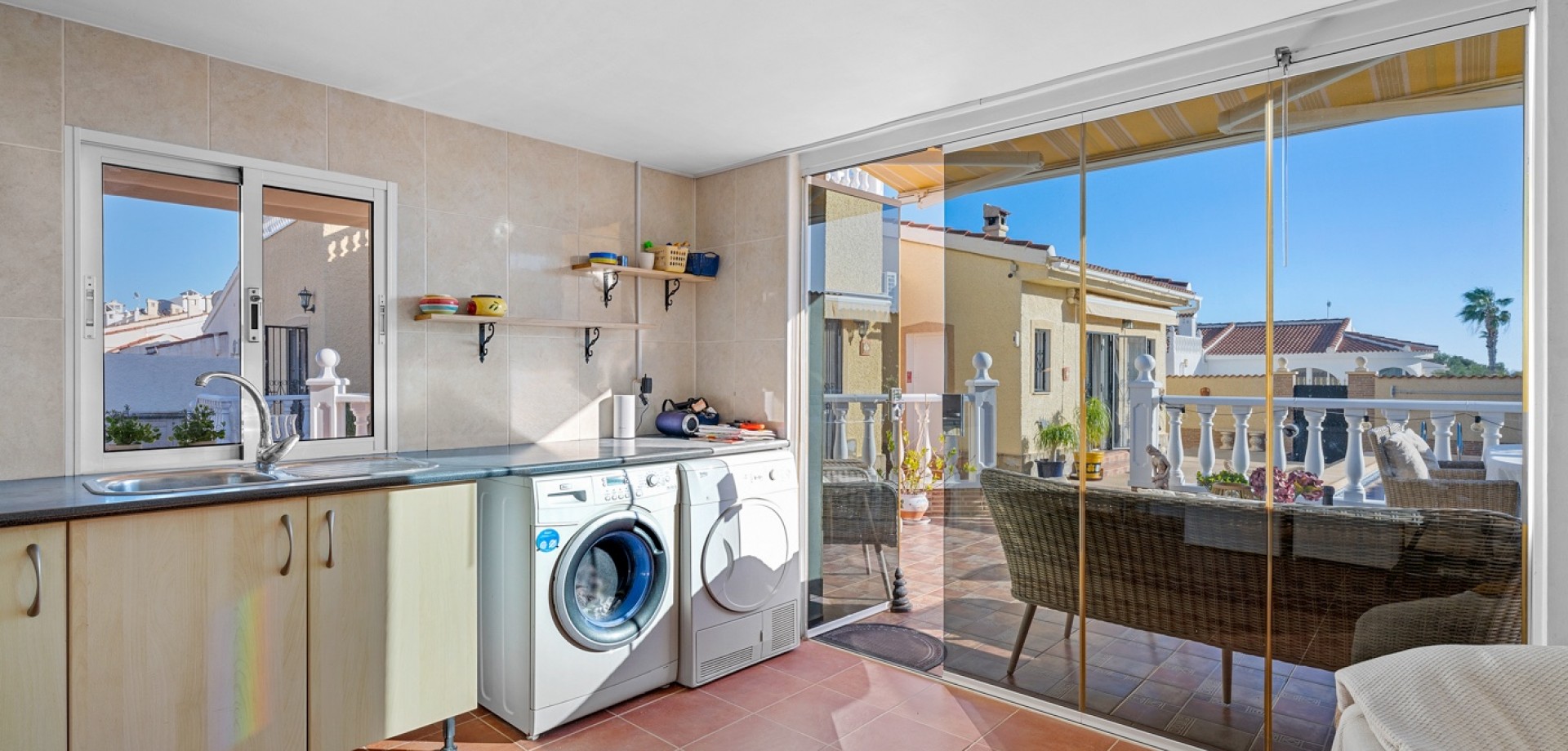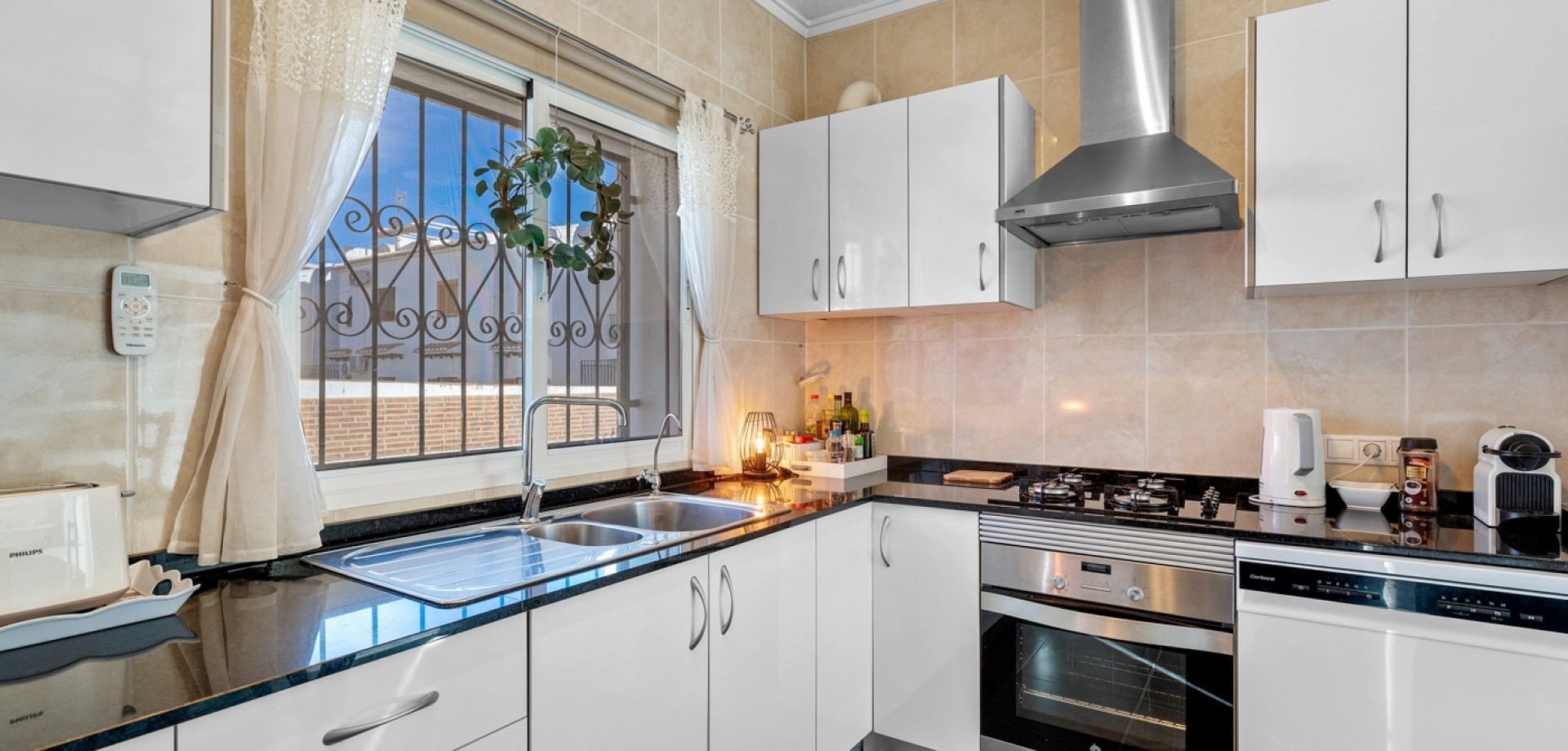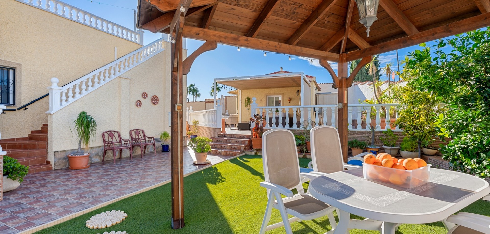 Set in one of the most prestigious areas of Ciudad Quesada, this beautifully reformed villa offers the perfect blend of modern comfort, privacy and Mediterranean outdoor living. Standing on a generous 587 m² fully tiled plot with fantastic views, the property is presented in excellent condition and ready to move into. The villa provides approx. 150 m² of bright living space distributed over two levels. Inside you will find four spacious bedrooms with built-in wardrobes and three stylish bathrooms, ideal for family living or hosting guests. The property features a luxury fully fitted kitchen as well as a second summer kitchen — perfect for entertaining — and a comfortable living area with fireplace and air conditioning throughout. Outside, the home truly shines. Enjoy the private swimming pool, outdoor shower, barbecue area and multiple terraces designed for year-round enjoyment. A large solarium offers sun all day, while awnings provide welcome shade during warmer months. The landscaped private garden and off-street parking area add both convenience and privacy. Located within walking distance to amenities, restaurants and services, this villa combines tranquility with accessibility — ideal as a permanent residence, holiday home or investment property. * 4 bedrooms | 3 bathrooms * Plot 587 m² | Built 150 m² * Private pool & outdoor shower * Solarium & fantastic views * Barbecue & summer kitchen * Fireplace & air conditioning * Fully furnished & luxury kitchen * Private parking & storage room * Prestigious location close to amenities * Move-in ready * Underfloor heating in the living room A stylish Mediterranean home where comfort meets lifestyle — viewing highly recommended.
