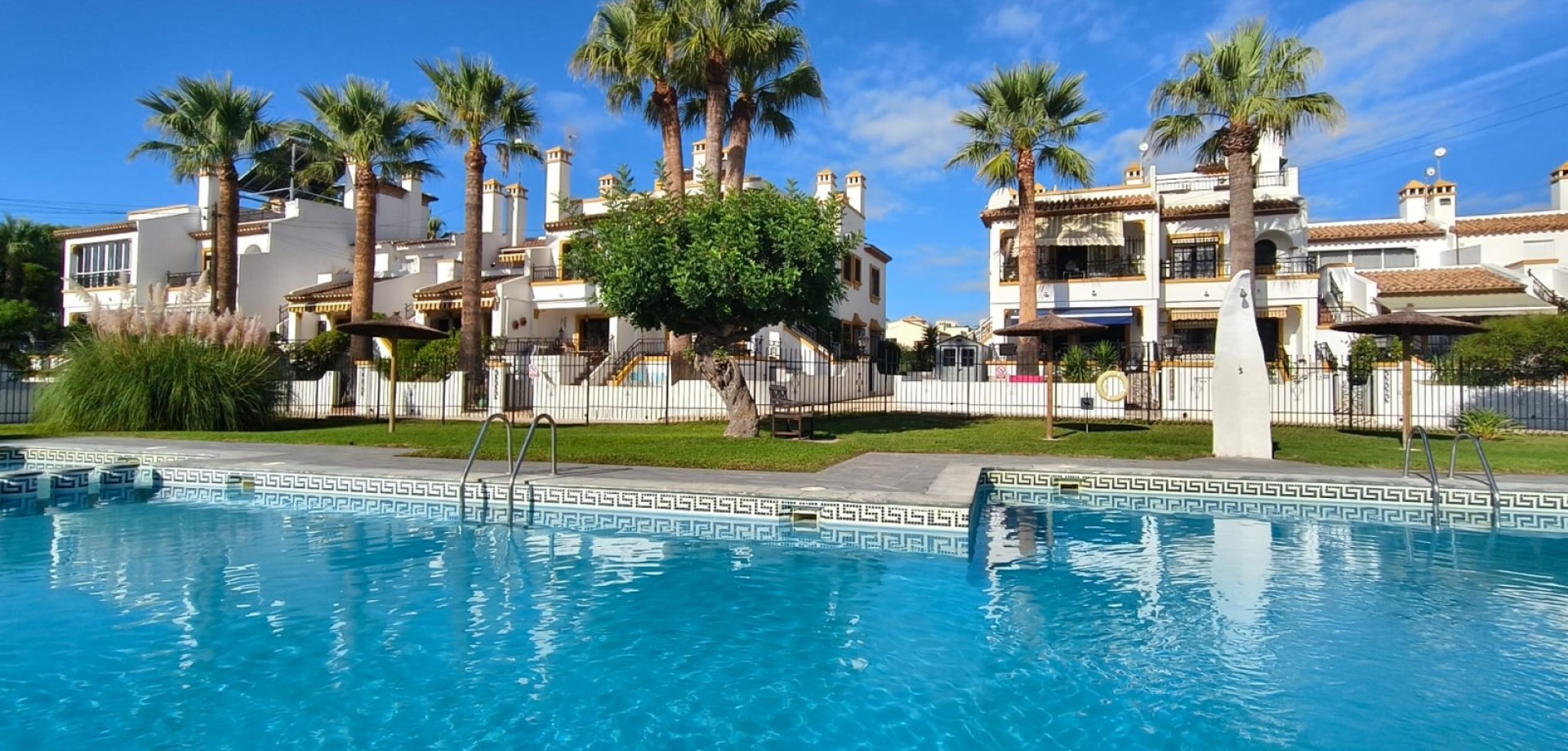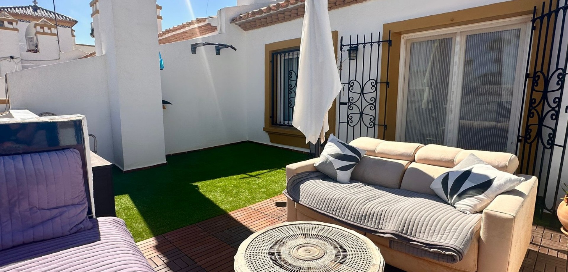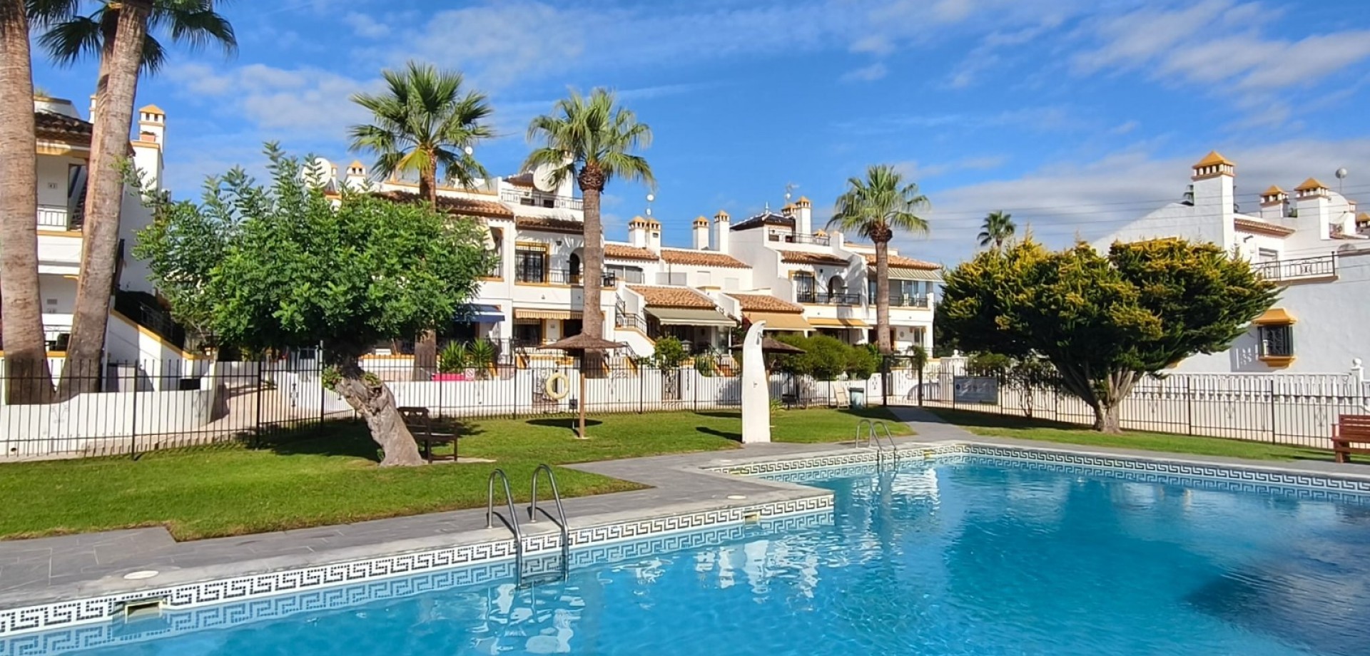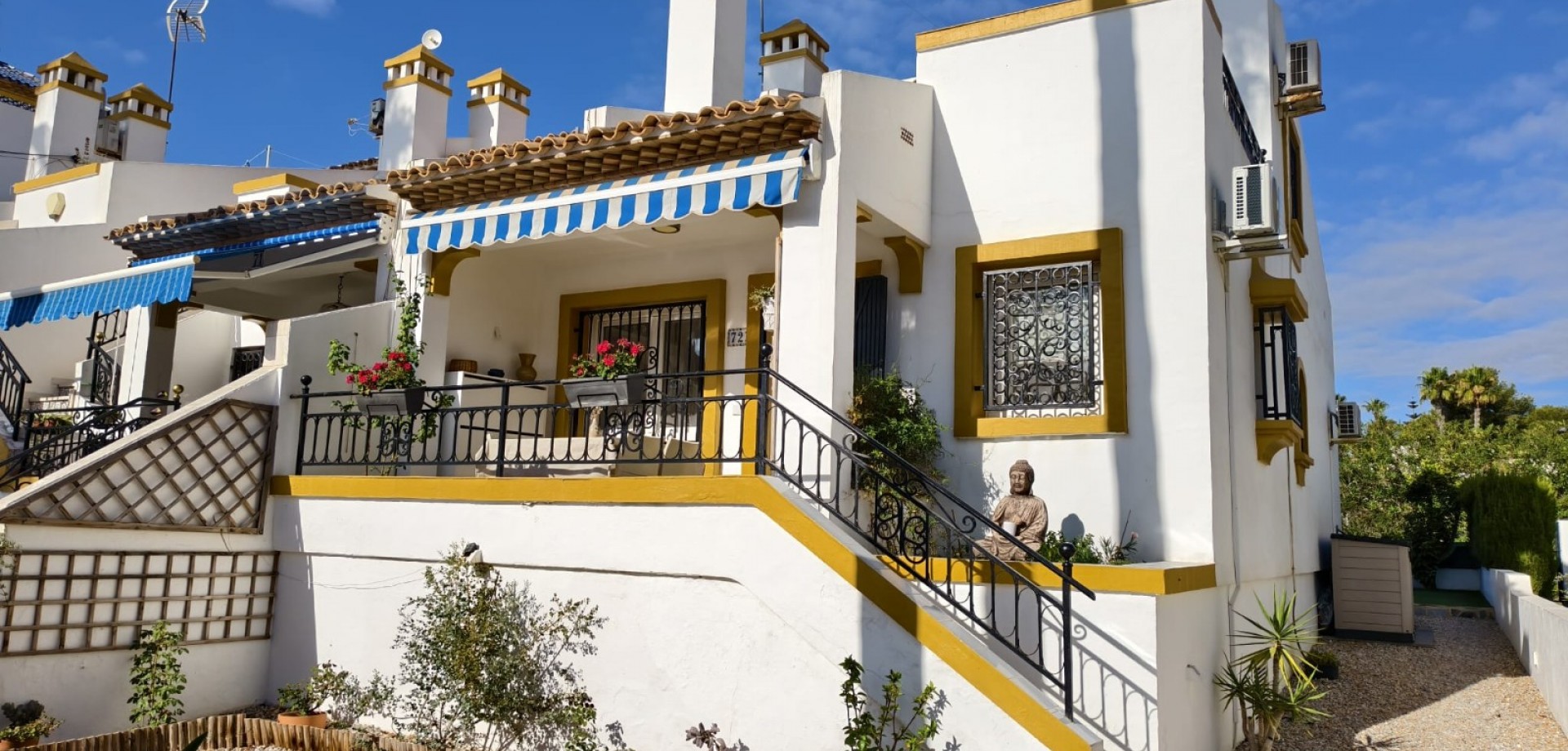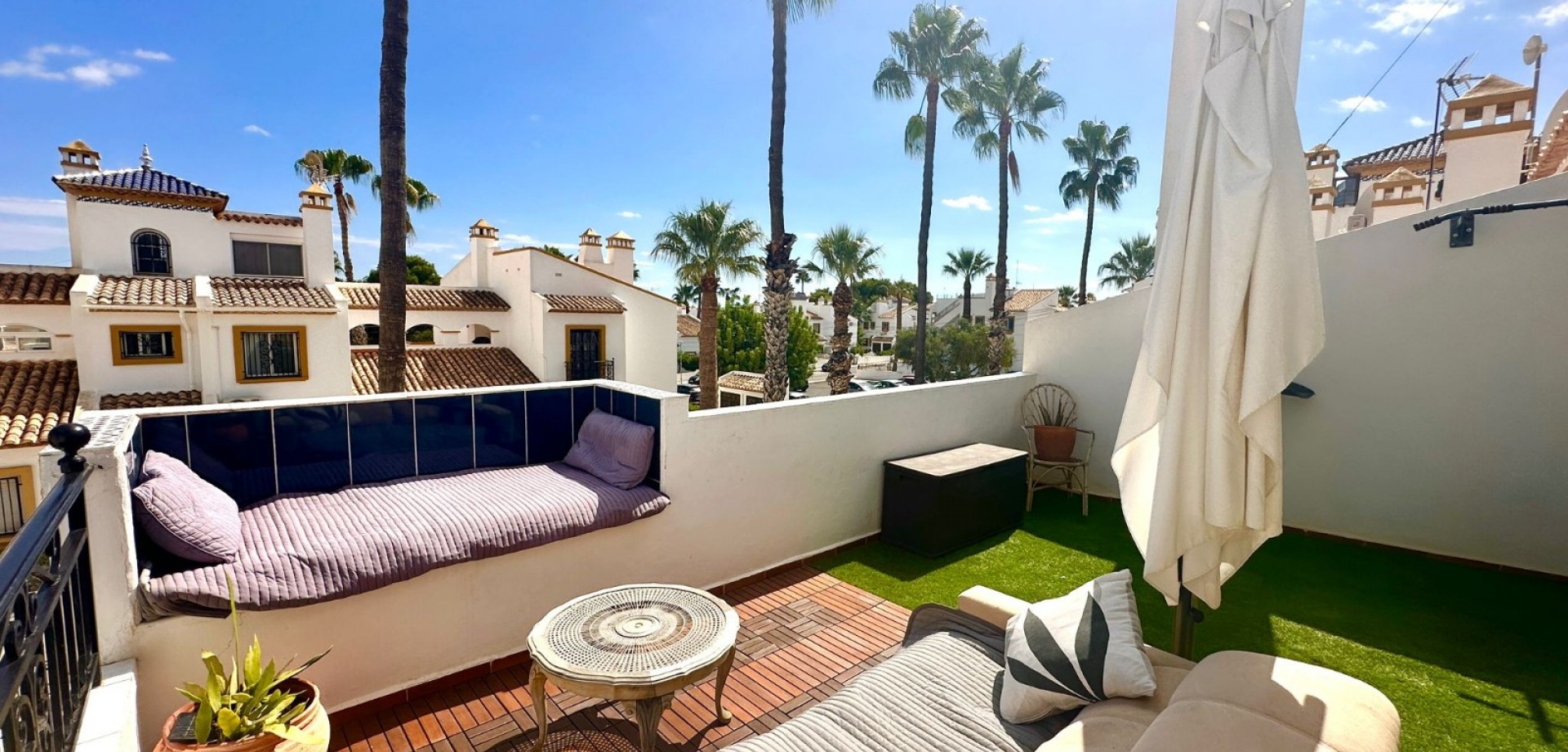 Dream home ready to move into in Villamartín, Orihuela Costa! Imagine enjoying the sun all day long on a large plot with double exposure to the east and west, in a secure condominium with a communal swimming pool and parking. This Spanish terraced house, which is sold furnished with appliances, offers 3 bedrooms, 2 bathrooms, air conditioning and tasteful décor... All you have to do is move in! Just 2 minutes from shops, 2 minutes from Villamartín golf course and less than 10 minutes from La Zenia beach, it offers the perfect balance between tranquillity and convenience. Comfort, charm and an idyllic setting: your new life starts here! For more information or to arrange a viewing, please do not hesitate to contact us.