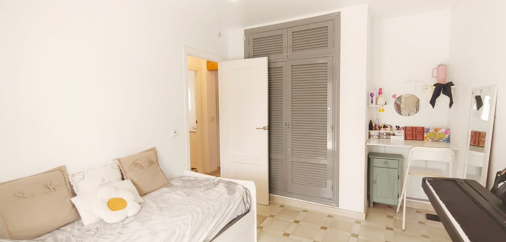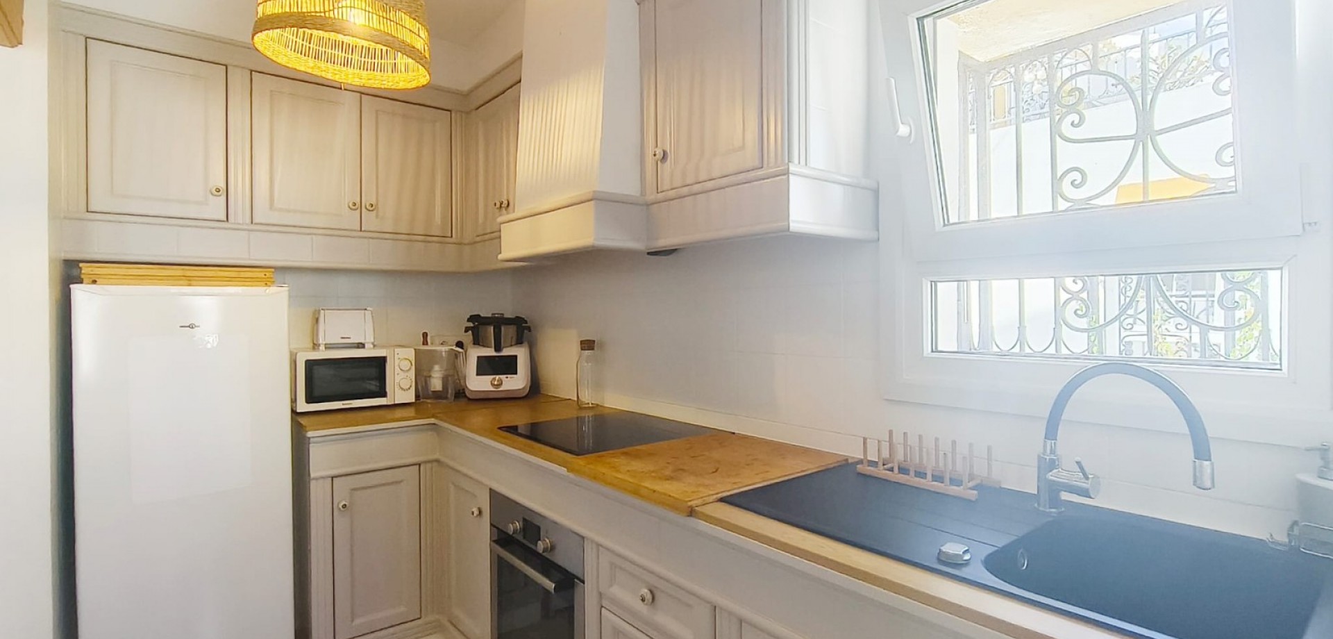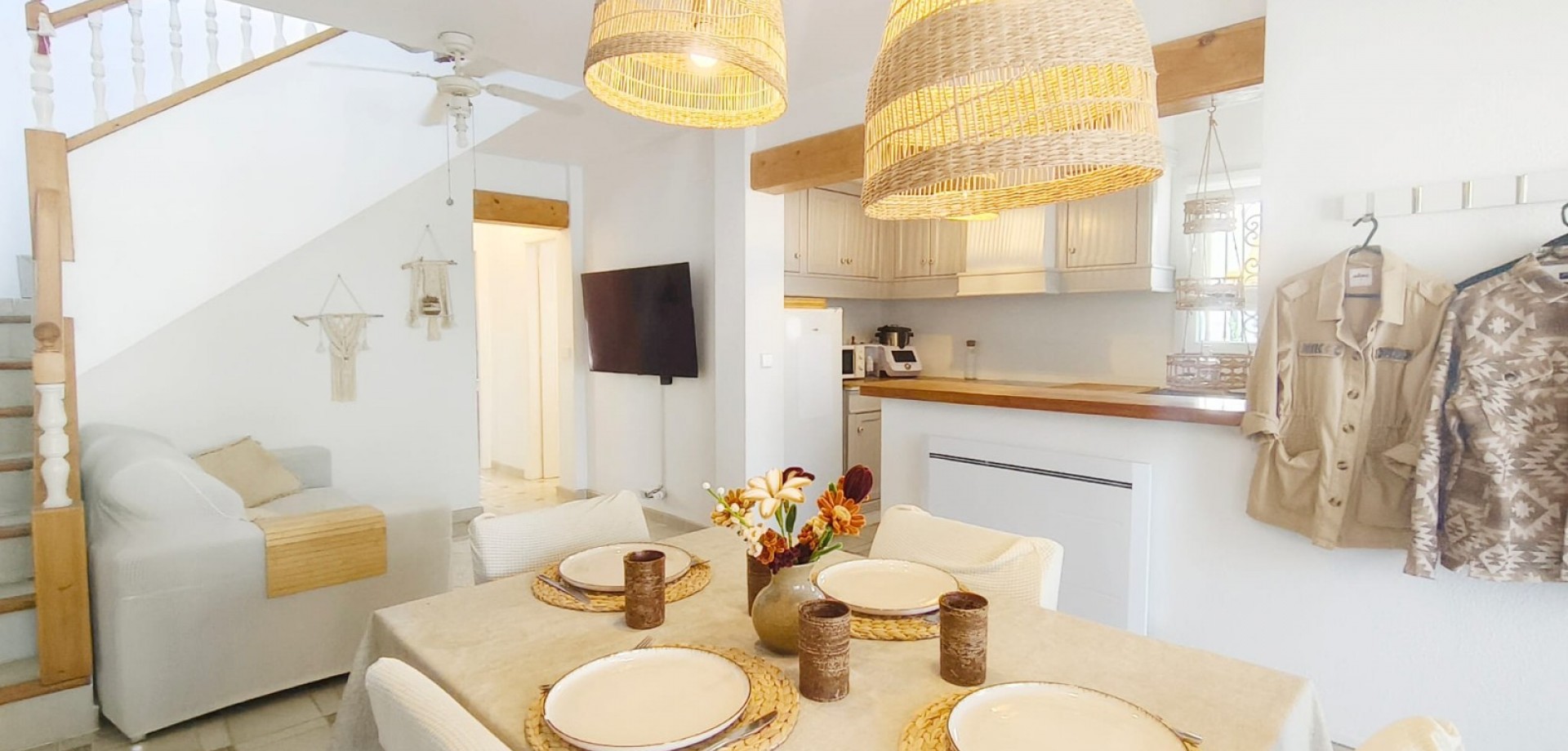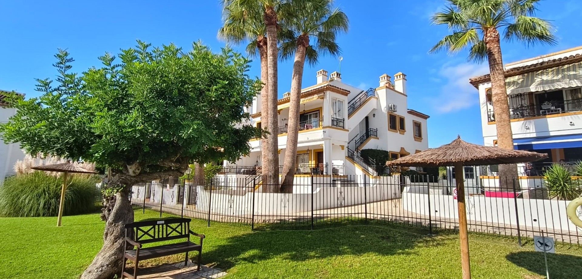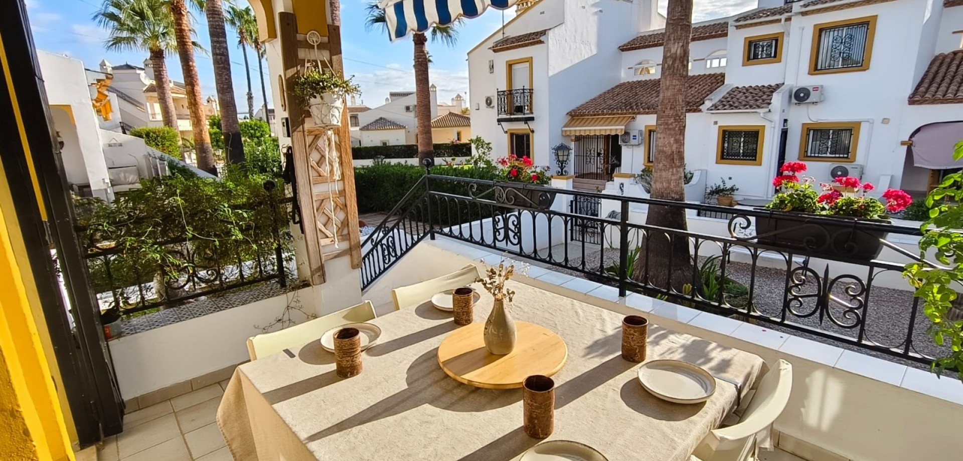 Dream home ready to move into in Villamartín, Orihuela Costa! Imagine enjoying the sun all day long on a large plot with double exposure to the east and west, in a secure condominium with a communal swimming pool and parking. This Spanish terraced house, which is sold furnished with appliances, offers 3 bedrooms, 2 bathrooms, air conditioning and tasteful décor... All you have to do is move in! Just 2 minutes from shops, 2 minutes from Villamartín golf course and less than 10 minutes from La Zenia beach, it offers the perfect balance between tranquillity and convenience. Comfort, charm and an idyllic setting: your new life starts here! For more information or to arrange a viewing, please do not hesitate to contact us.