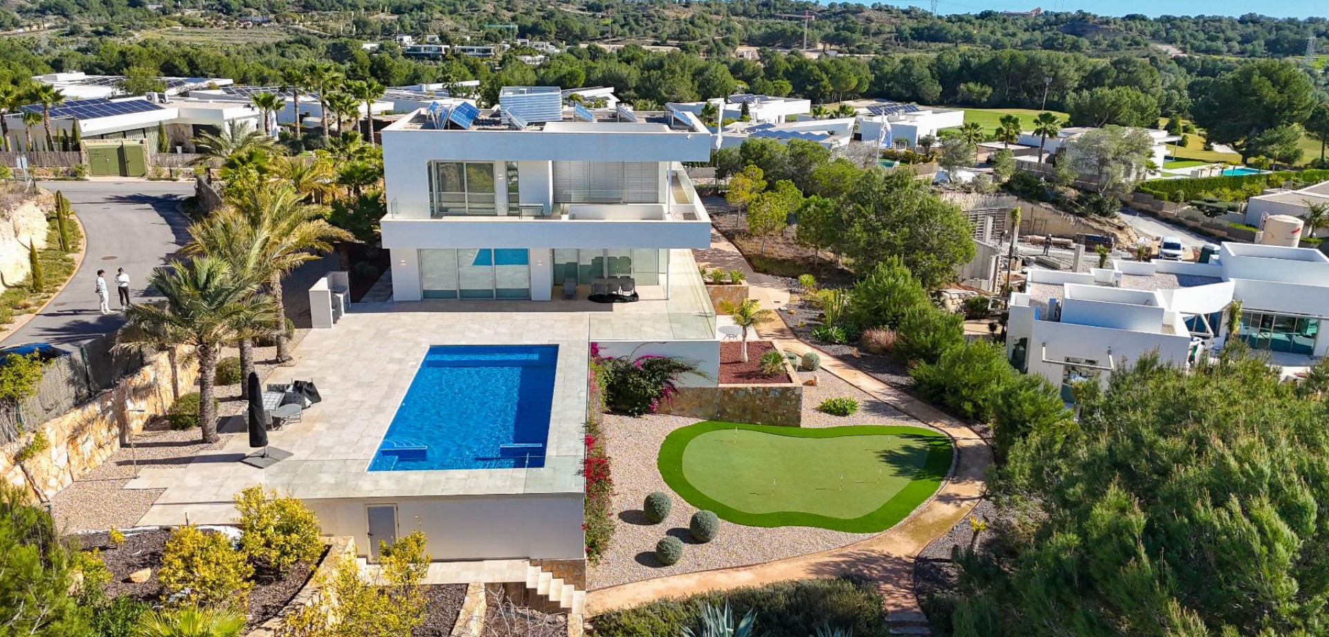 Located in the exclusive setting of Las Colinas Golf Country Club, in Orihuela Costa, this impressive detached villa of 546 m² built on a 2,188 m² plot offers absolute privacy, generous space and a sophisticated lifestyle alongside the golf course. Built in 2022 and southeast-facing, the property enjoys exceptional natural light throughout the day and open views over the resorts green landscape, considered one of the most prestigious residential and golf complexes in Europe.Built over 3 levels with multiple terraces and open viewsKey Features 546 m² built 2,188 m² plot 5 bedrooms and 6 bathrooms Southeast orientation Fully equipped kitchen Private swimming pool Private garage Basement for cinema room, office and other uses New build (2022) Location Las Colinas Golf, Orihuela Costa Price €2,700,000Contact us today and discover a unique detached villa in Las Colinas.